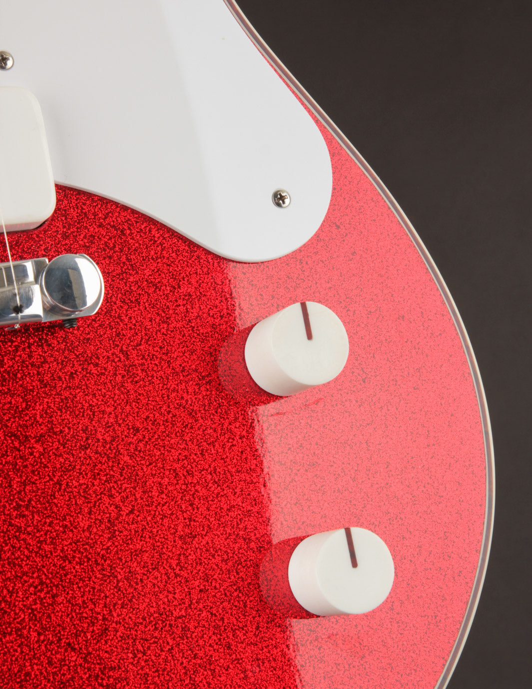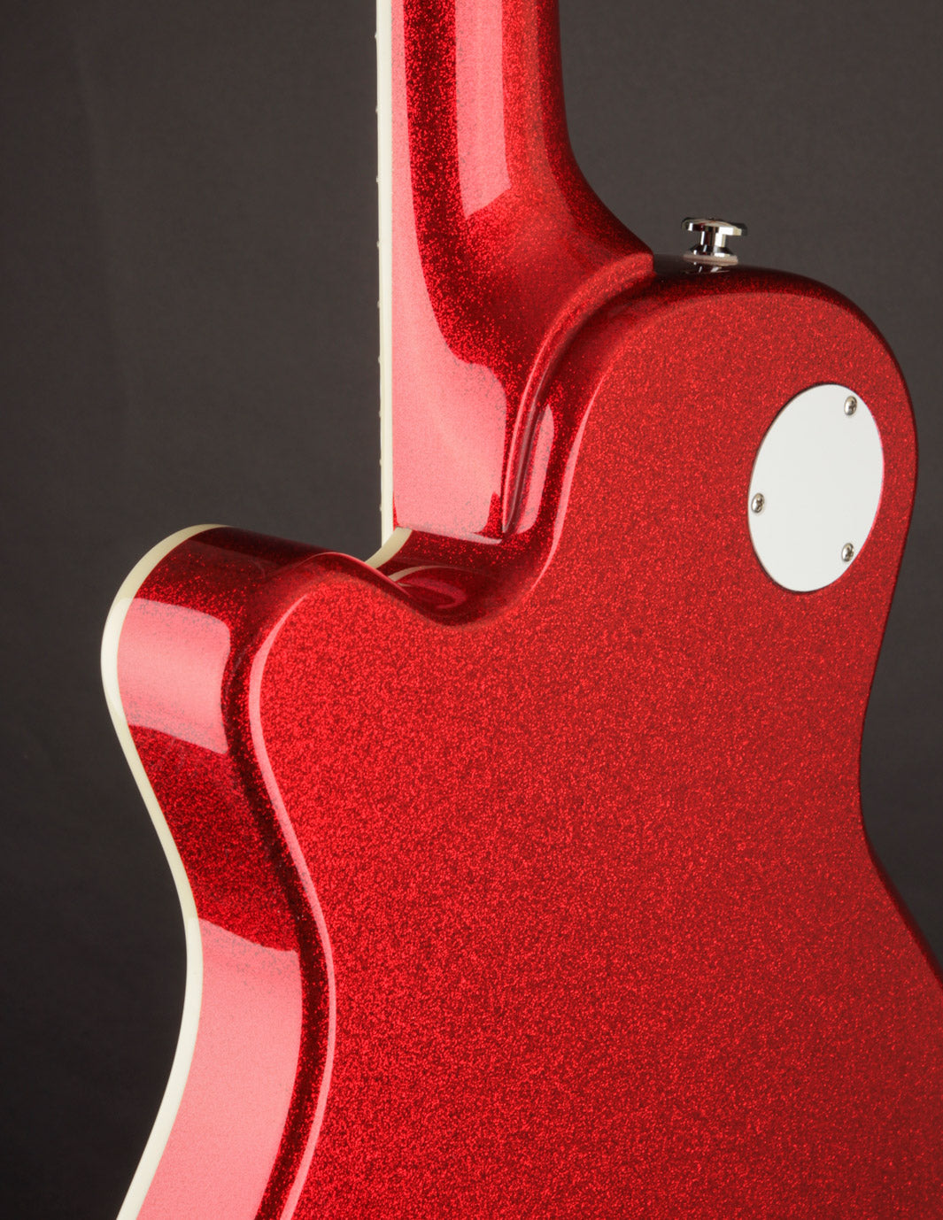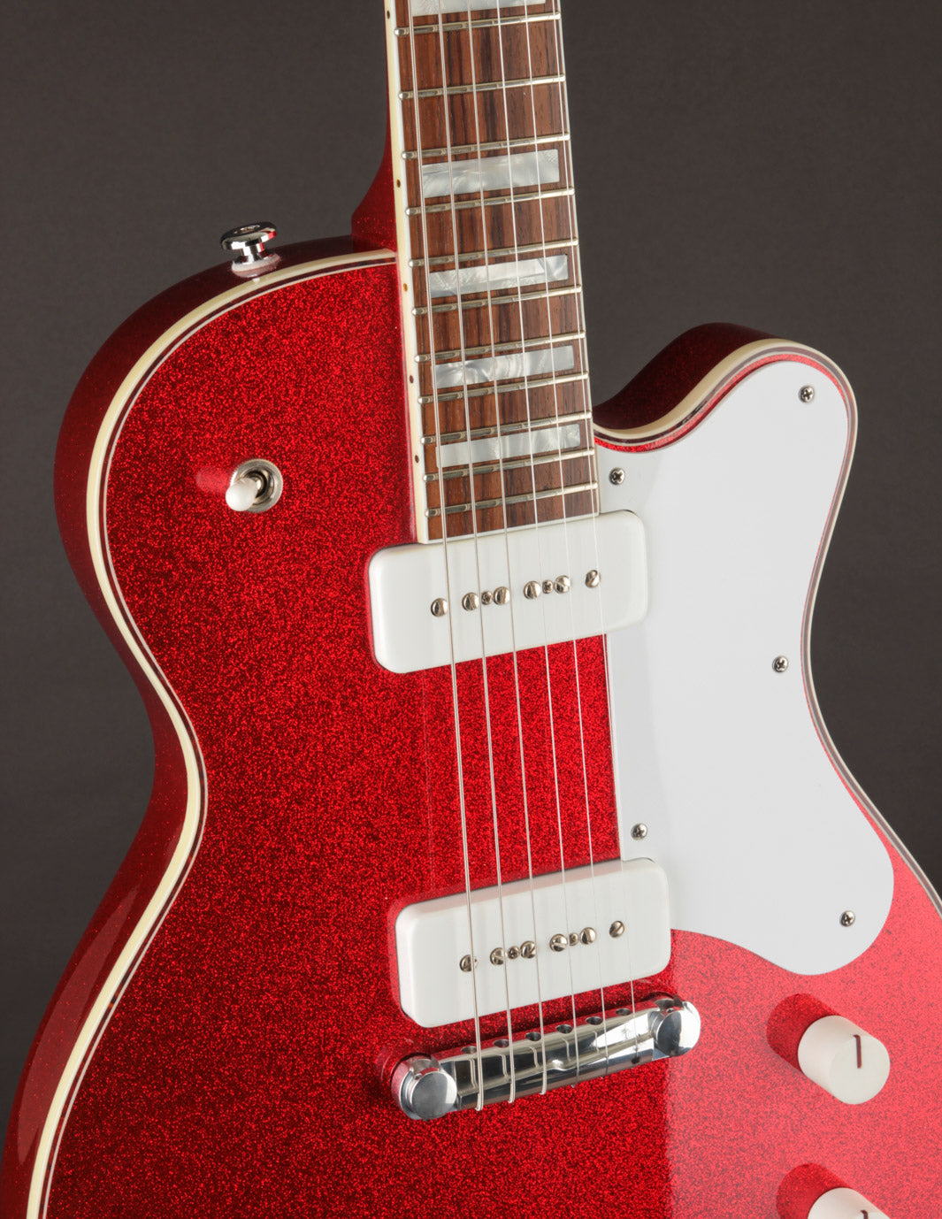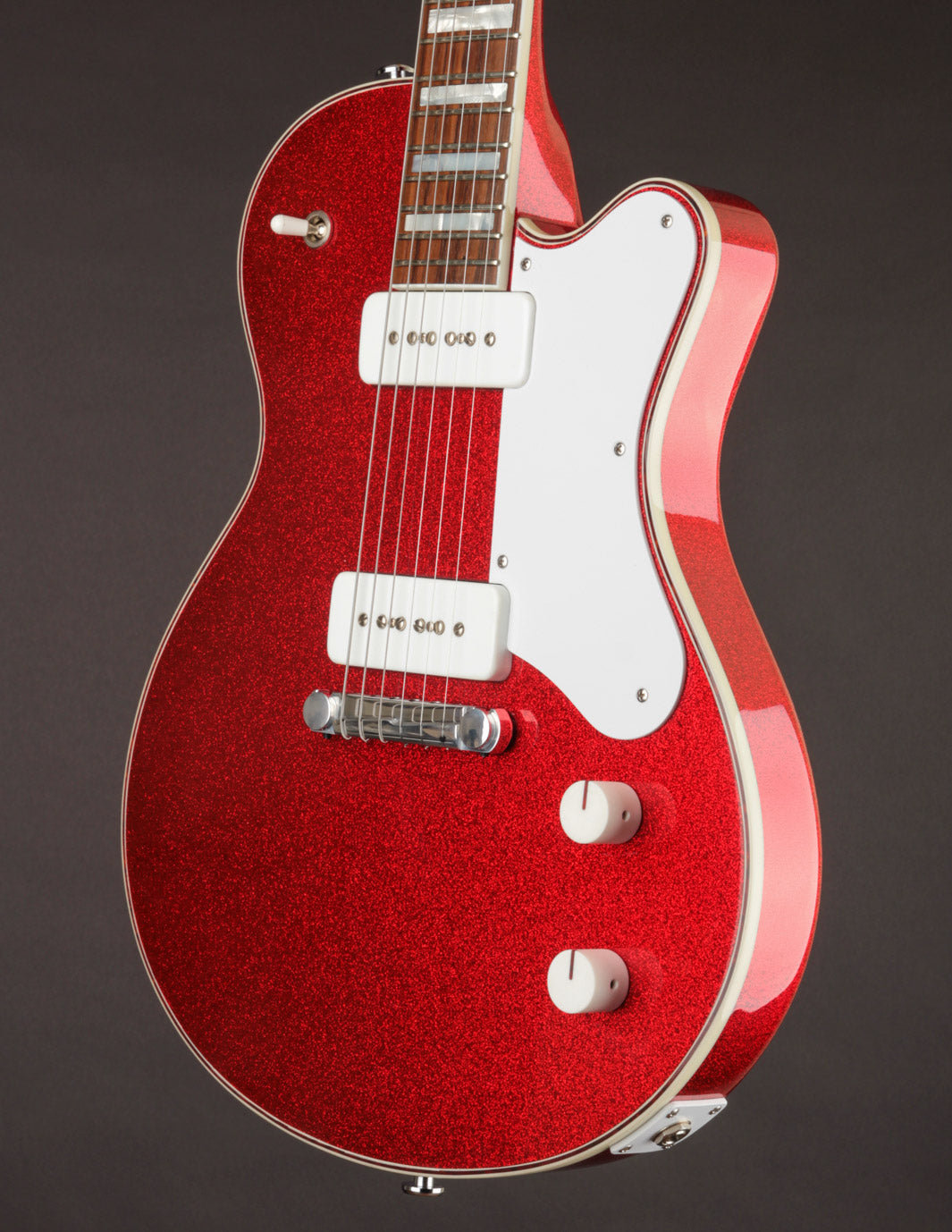 Coming in at 7lbs 6oz, this guitar is exceptionally resonant and alive. The lightweight mahogany body (w/maple cap) and mahogany neck set the foundation for a pair of killer Wolfetone P90s that provide all of the great clarity, snap, and growl one would expect from this style of pickup. A single volume and tone circuit with a 3-way switch keeps things simple and familiar, and the lightweight Heatley aluminum wraparound bridge is incredibly well engineered.