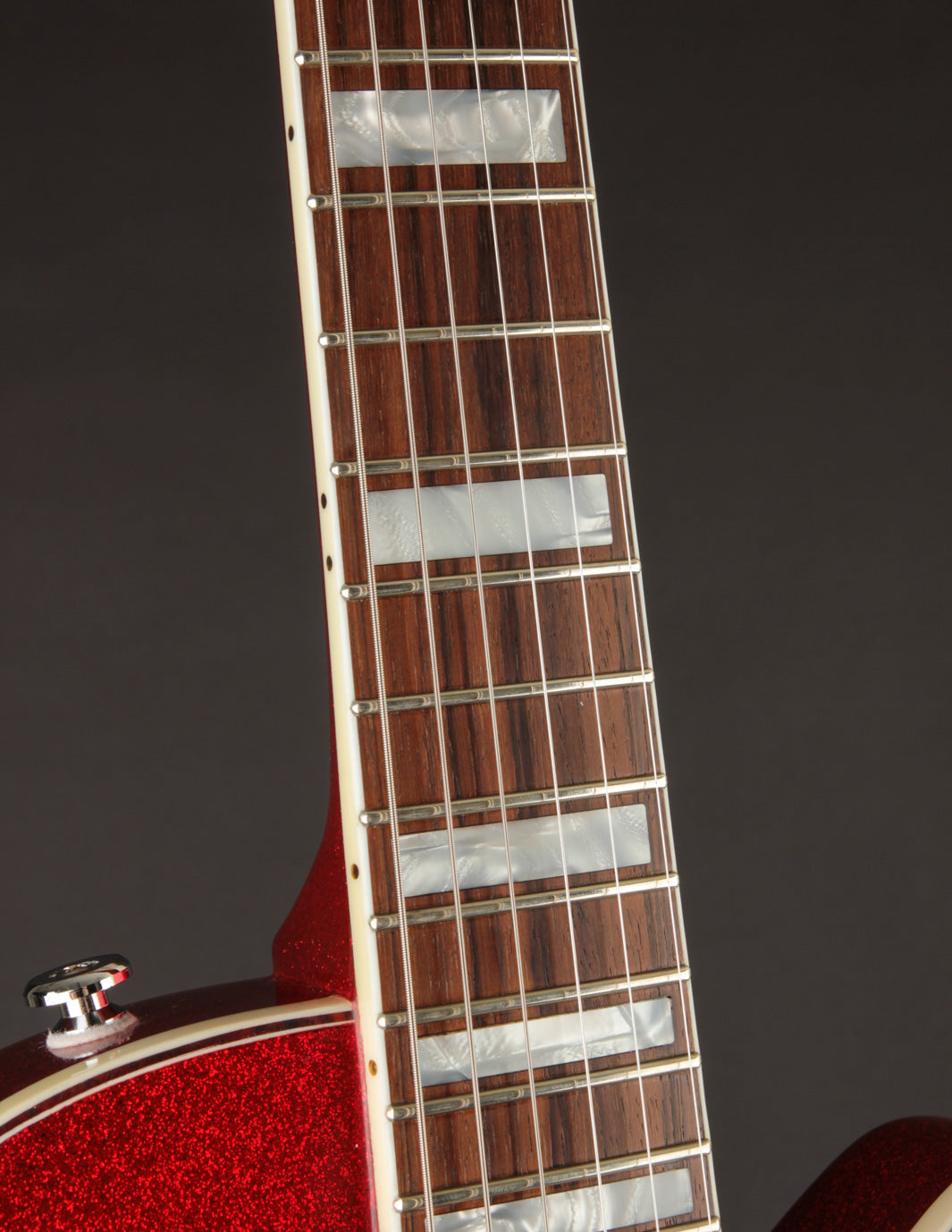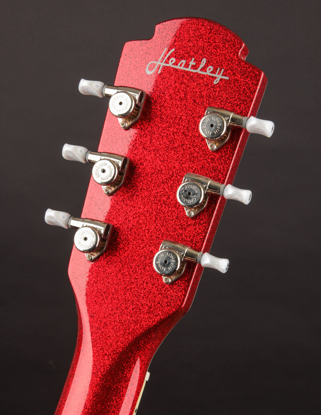 Playability is absolutely top notch, with an exceptionally carved full C neck (think '59 LP-ish), 1 11/16” nut width, medium jumbo frets, and a beautiful rosewood fingerboard with celluloid block inlays. And the headstock overlay - we dare you to find a cooler one! A tortoise H logo with a tortoise chevron is set against an ivoroid headstock veneer, giving the perfect nod to those classic catalogue guitars of the 50s and 60s we know and love. Amazing stuff, folks!