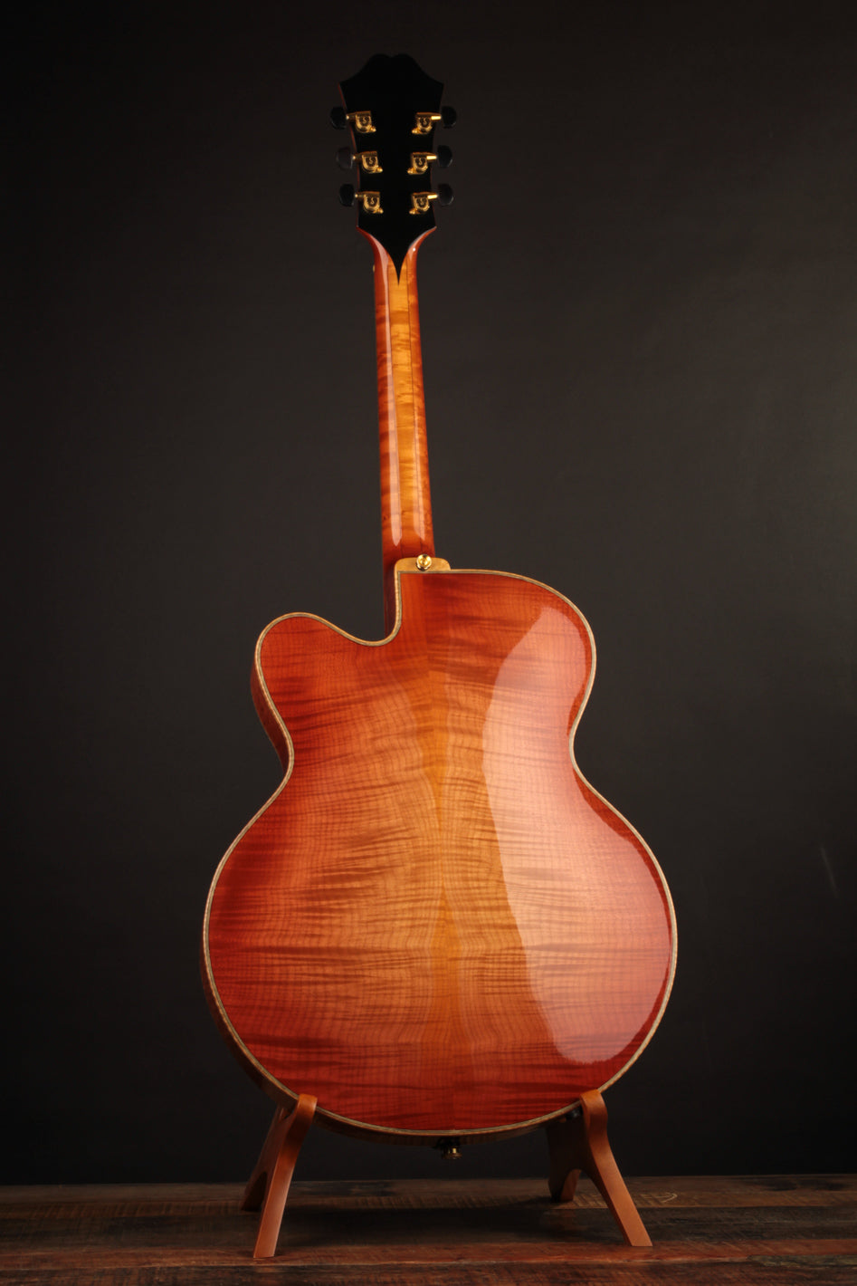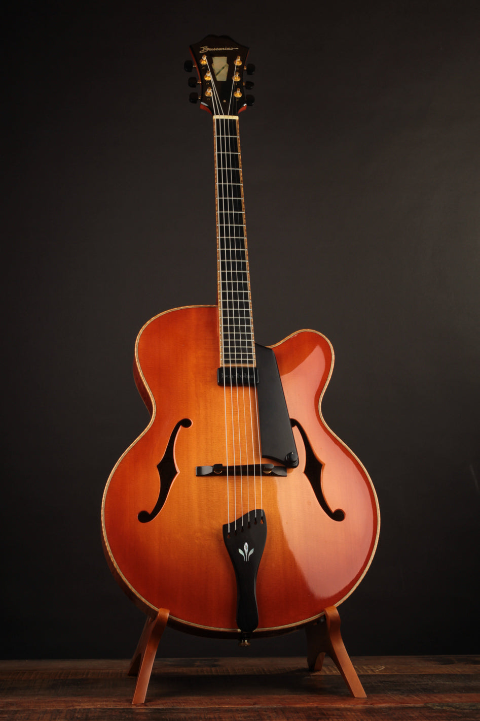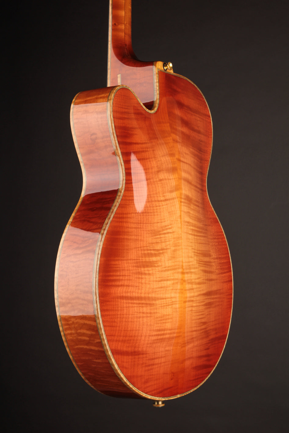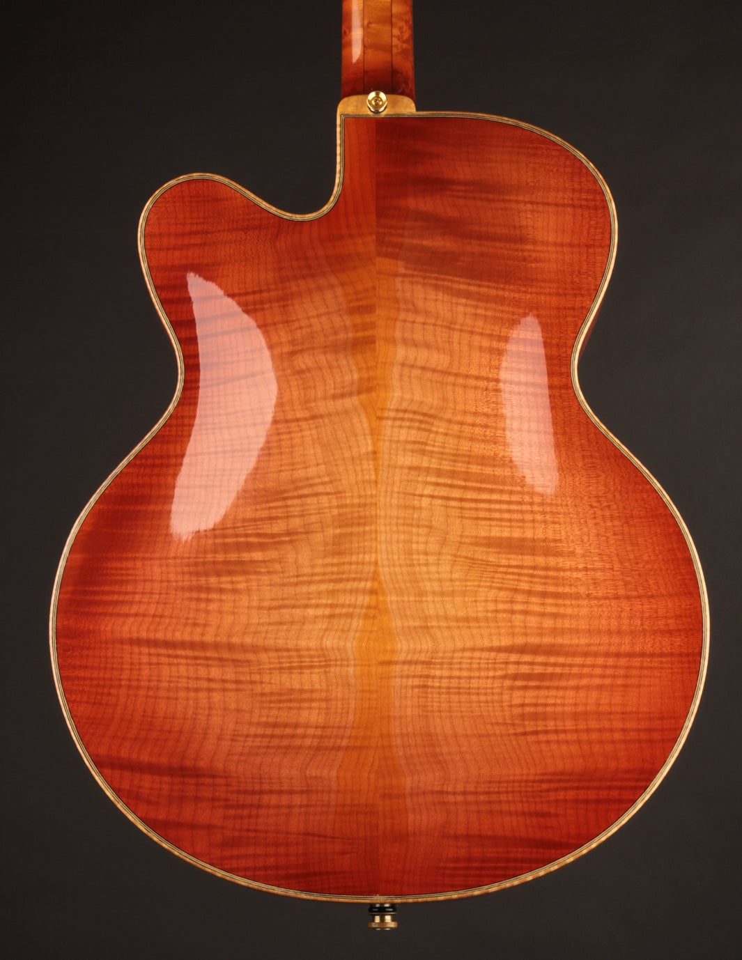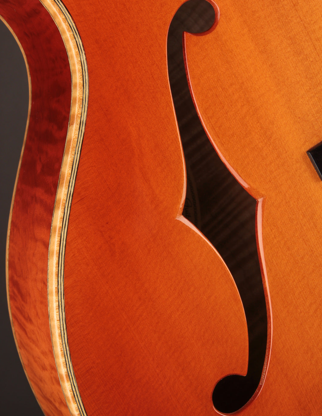 Plugged in, it offers a warm, articulate voice with plenty of headroom thanks to the 17" body and floating Bartolini pickup. There's richness in the lows, a dry and focused midrange, and a top-end that sounds sweet without ever getting brittle. Whether you're comping chords or playing lyrical single-note lines, this Monarch responds with clarity and nuance.