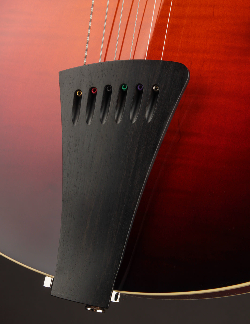 This Eastside Jazz LC variant looks the part of a performer ~ decked out in "Deluxe" appointments and "Broken Glass" inlays.