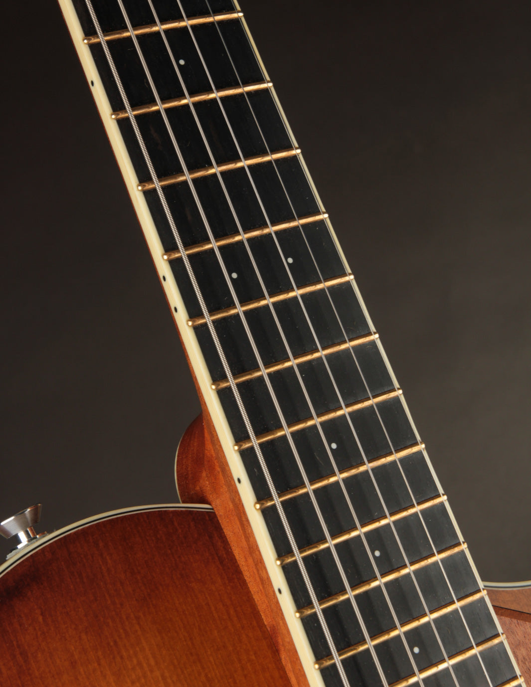 A years-long collaborative effort with classical builder Mathieu Dallaire Walker produced an electric archtop that is radical and elegant with a touch of "old world" influence. Here's what Nic has to say about the guitar's construction: