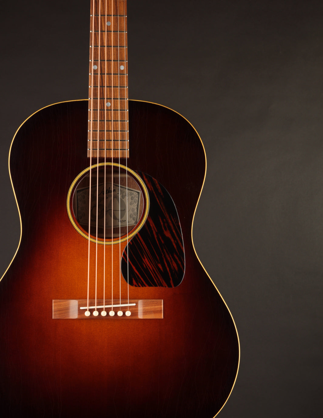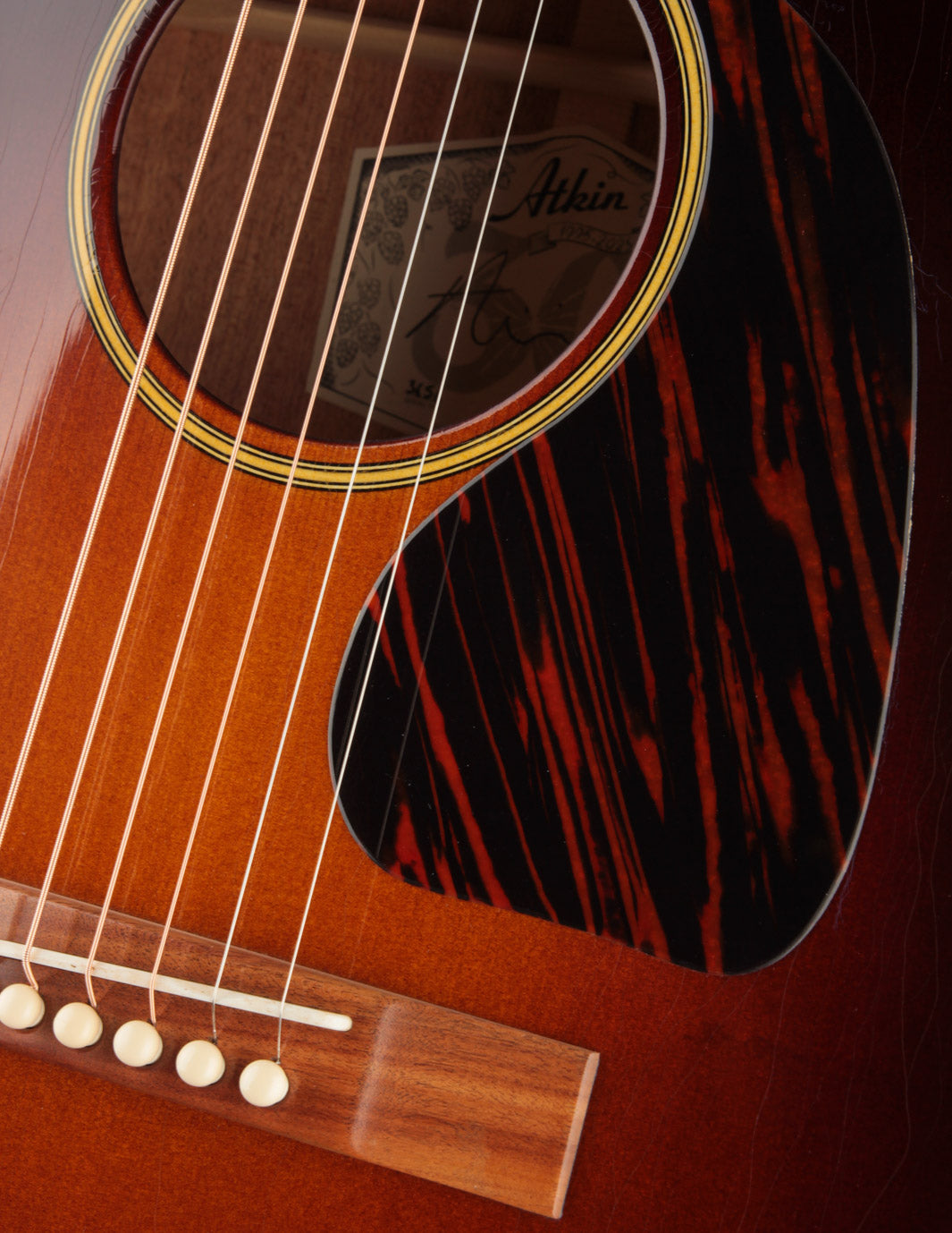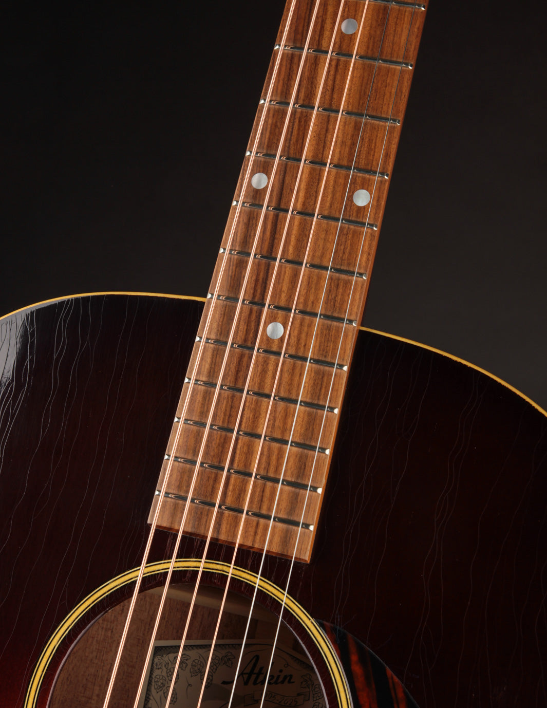 TME is happy to welcome Atkin Guitars to our fold! What makes us sit up and take note, with so many great instruments already in our showroom? Simply put ~ sound. Atkin's unique scalloped bracing configuration and super-thin aged lacquer finish result in a guitar that's surprisingly open and big-sounding (they've got a lot more oomph in the low end than you'd expect). And if you've ever longed for the sweet, woody sound of a Banner-era LG model, but you've been put off by the baseball-bat neck profile, we think you'll warm to Atkin's modern C-shaped neck, which strikes a nice balance between substance and playability. We also admire Atkin's embrace of a naturally aged finish. At the end of the day, what's more important -- being able to see your reflection in a guitar's finish, or being inspired by its sound when you pick it up? Vibe. Tone. Playability. If you want it all, produced with the expertise of a boutique-level workshop, we suggest giving an Atkin serious consideration. Priced with the builder's own hard case, made by TKL.