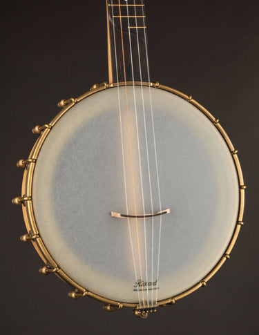 We're always pleasantly surprised whenever we open up a new shipment of Rickard banjos. Their Dobson model has been one of their top sellers and this maple version is spectacular. The Dobson model also features an 11" rim, 25.5" scale, frailing scoop and antiqued brass hardware (to go with that Dobson-style tone ring). Wonderful, old-time cluckiness, and a fat note attack -- retained even when the banjo is played muted with a cloth inside the pot. Priced with Superior brand hard case.