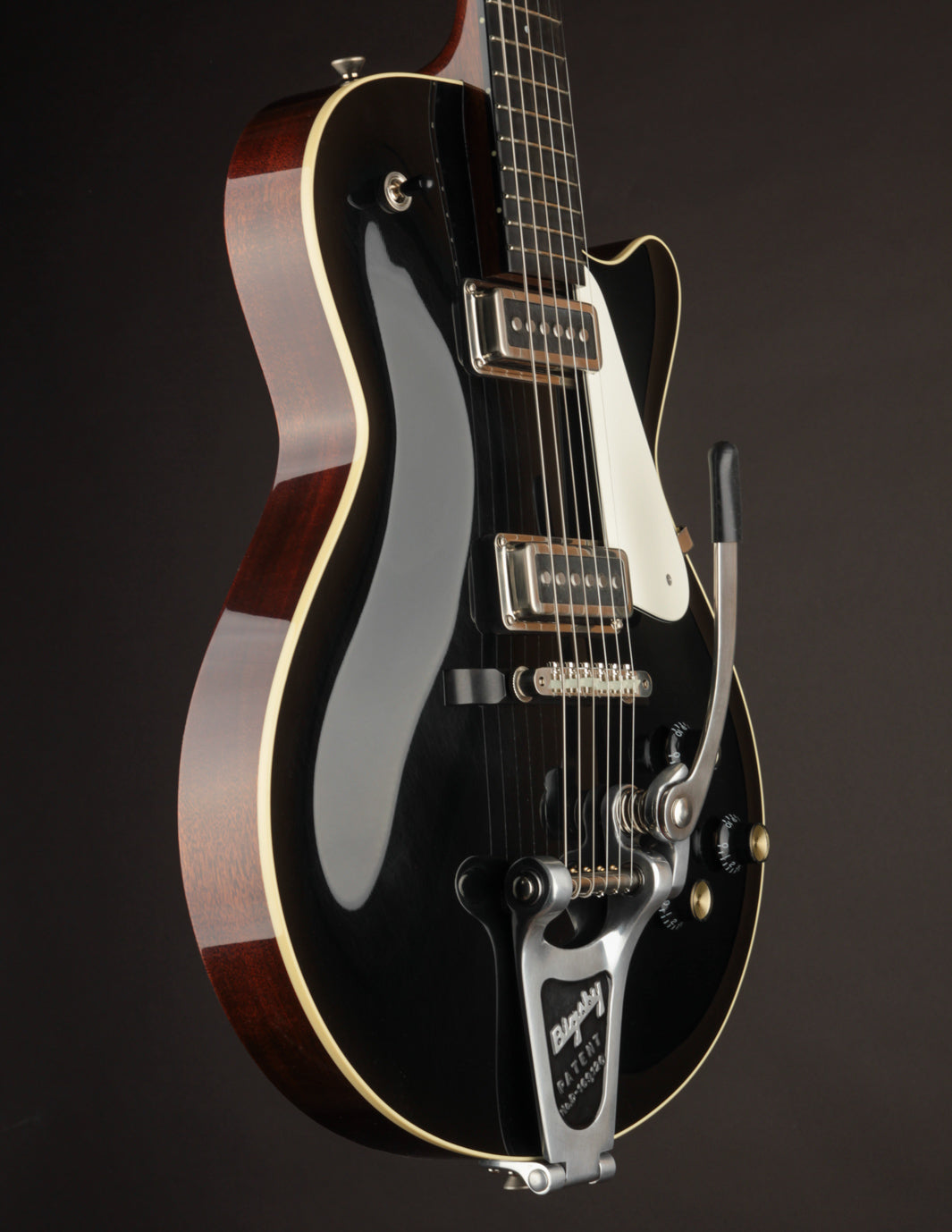 There may be no better fit than Ron Ellis to pair up with this project, responsible for the design and manufacturing of the custom wound 'Ellisonic' pickups outfitted in each 470 JL. All of the sparkle, definition, and clarity you'd want in a vintage Dynasonic pickup, but with a more extended frequency response and greater harmonic content. Lows are lower, highs are more robust, and the midrange is well-defined without being too overbearing or lean. Paired with a hollow mahogany body and laminated maple top, you're afforded a tremendous amount of acoustic response and liveliness that is magnificently captured by the twin single coils.