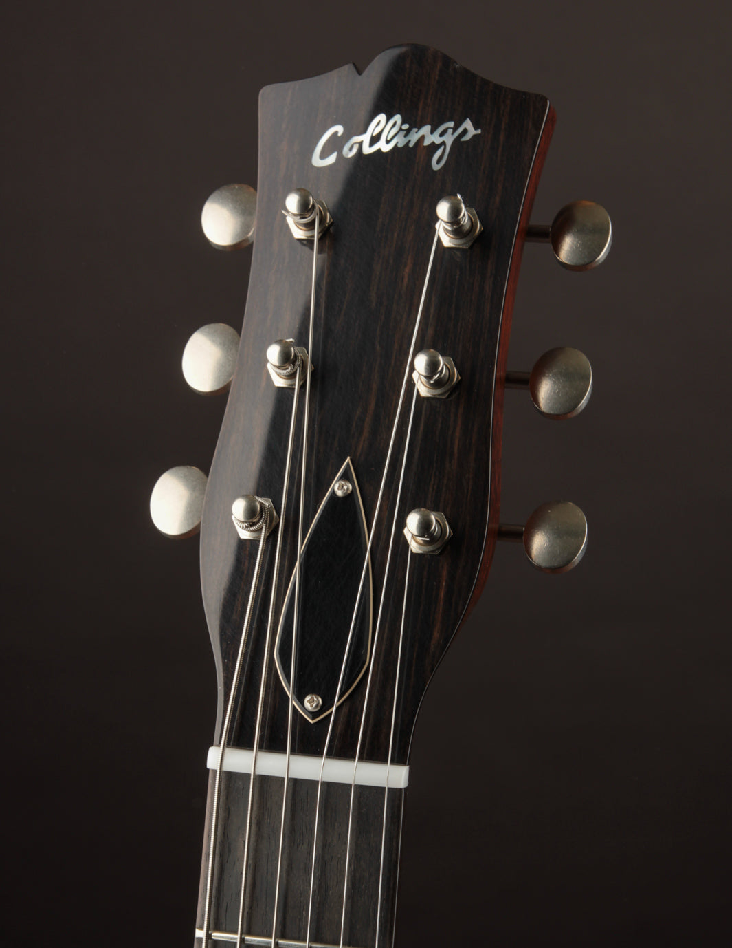 Playability is top-notch, with a unique V/C neck profile that sits somewhere between a Collings 60s neck depth and their standard medium neck depth. A Bigsby B3 paired with a pinned rosewood bridge and nylon-saddle ABR gives the player full use of the classic vibrato tailpiece while keeping tuning stable.