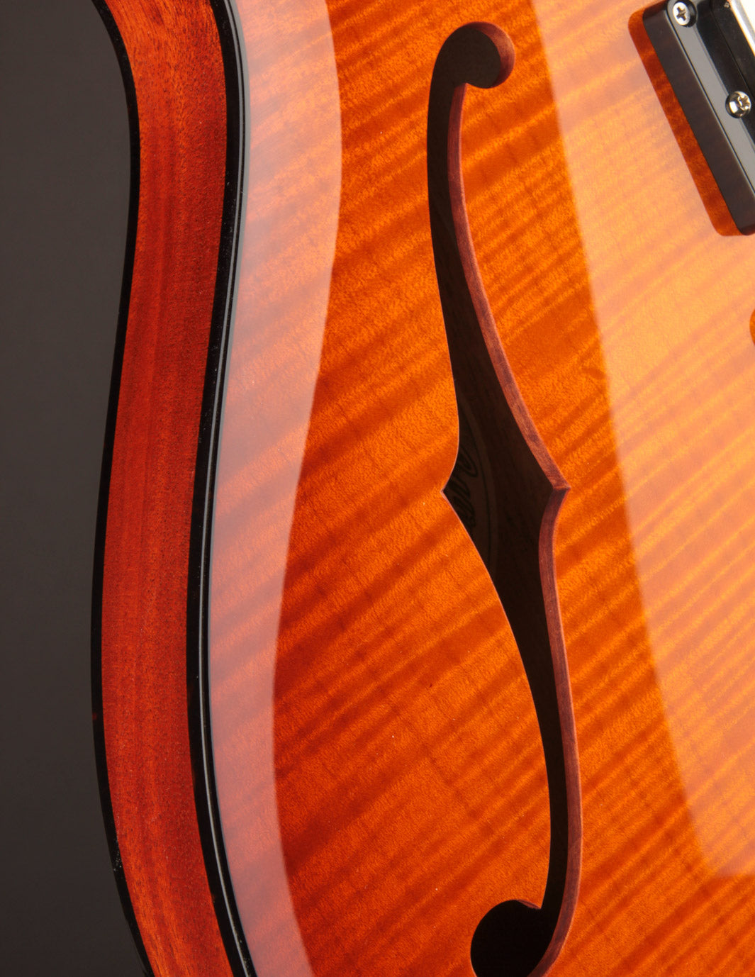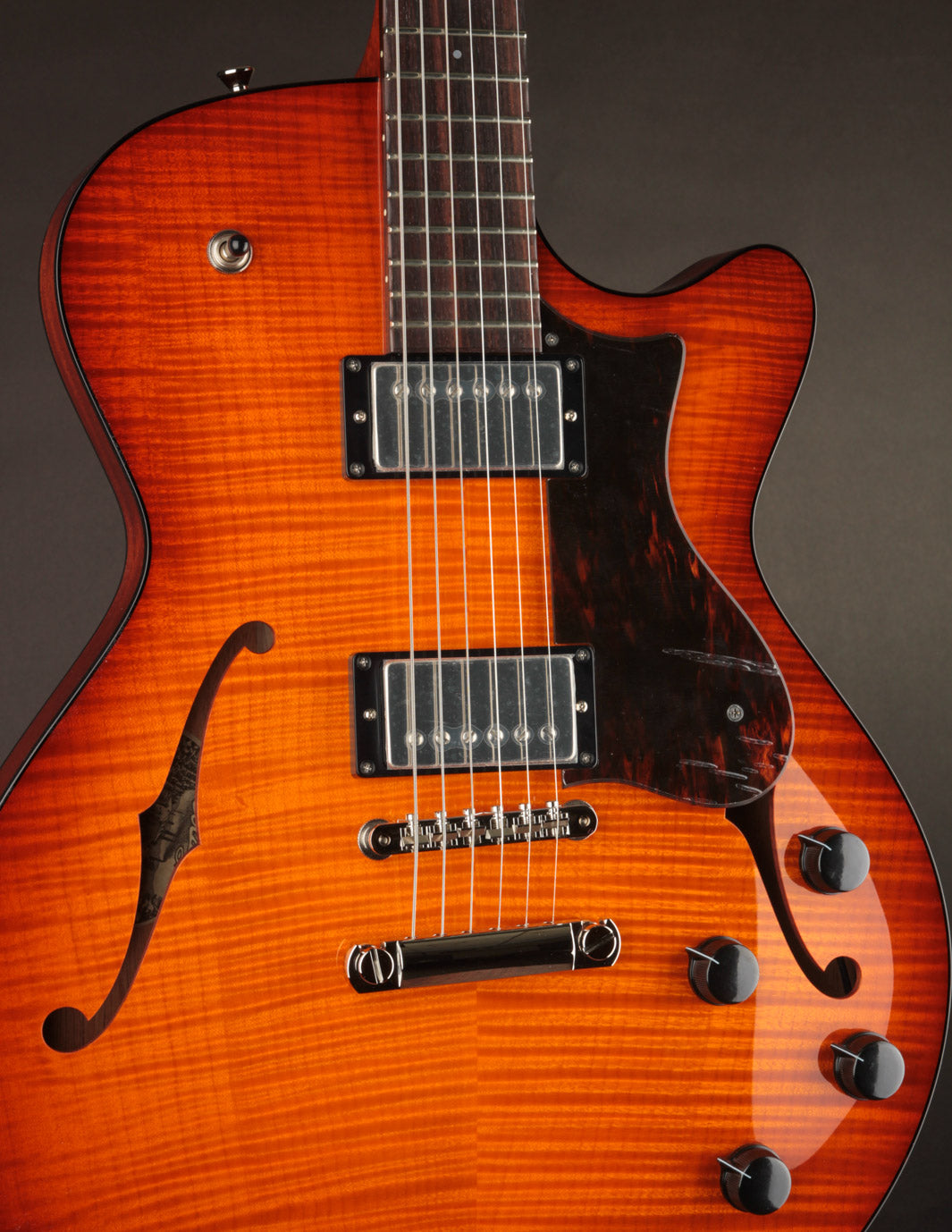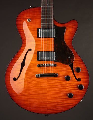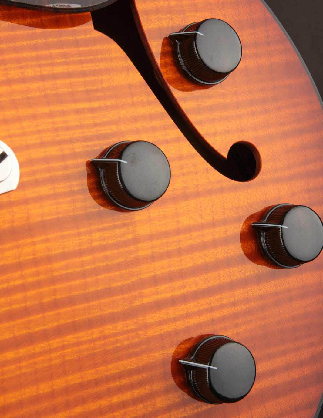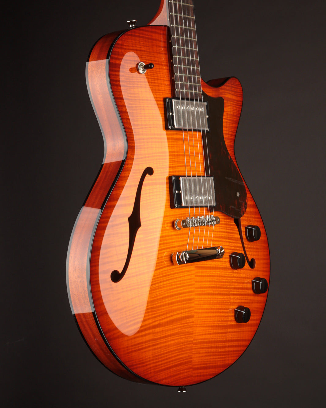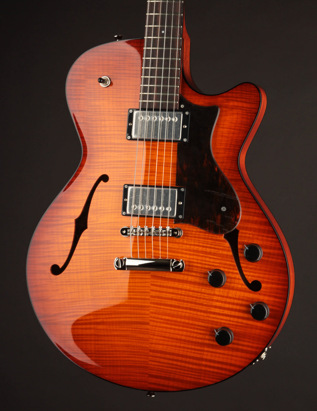 This brand new Collings 620 in Iced Tea Sunburst is part of a new lineup of electric offerings from our great friends in Austin! While it shares its silhouette with the fully hollow, deeper bodied alternate bearing the SM LC suffix, the "standard" 620 pulls inspiration from the I-35LC Vintage model.