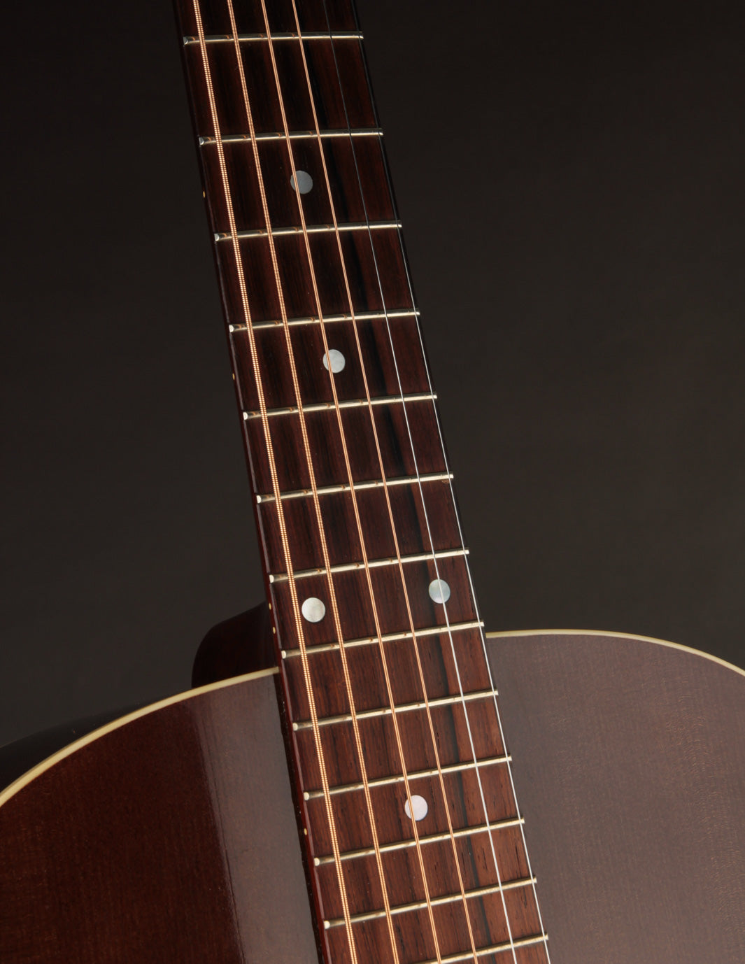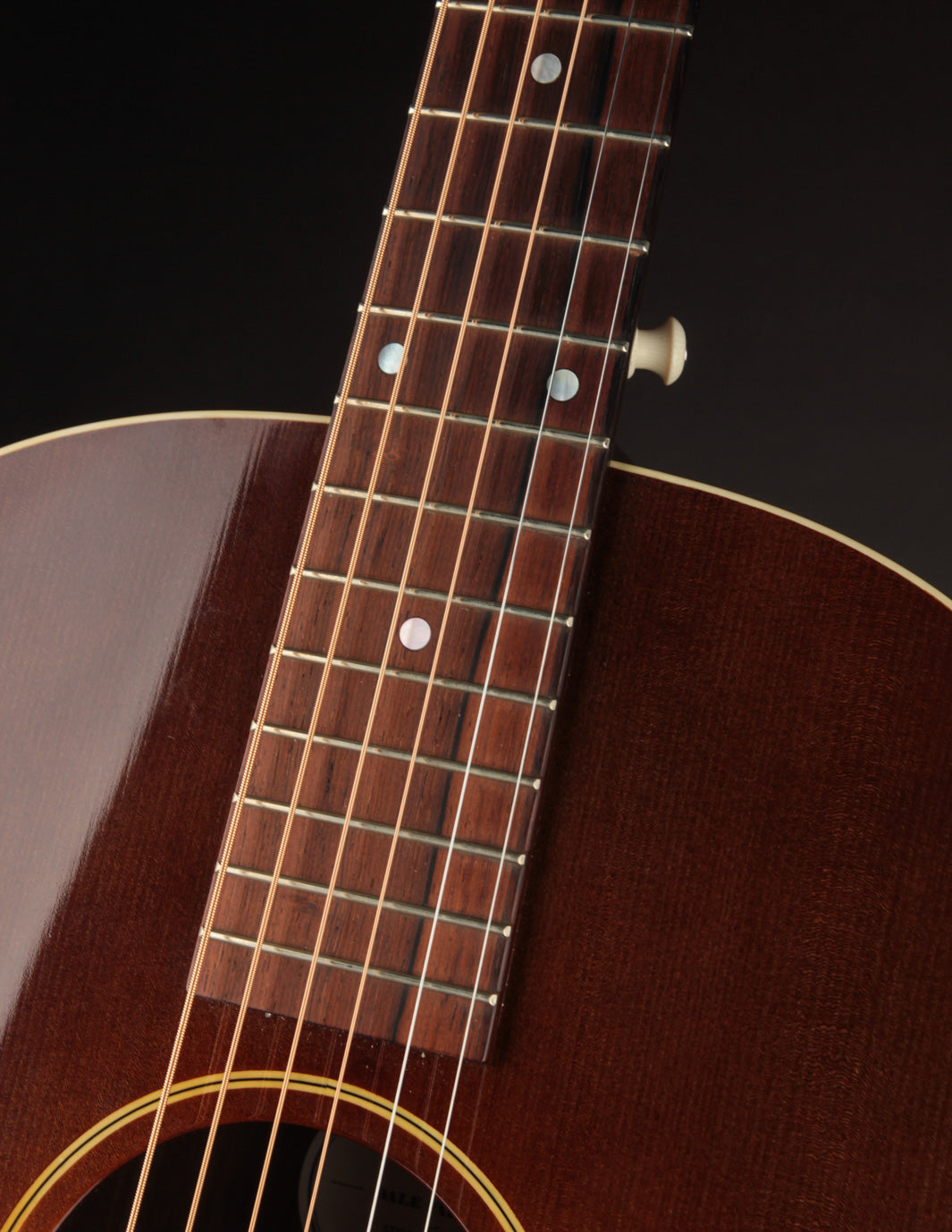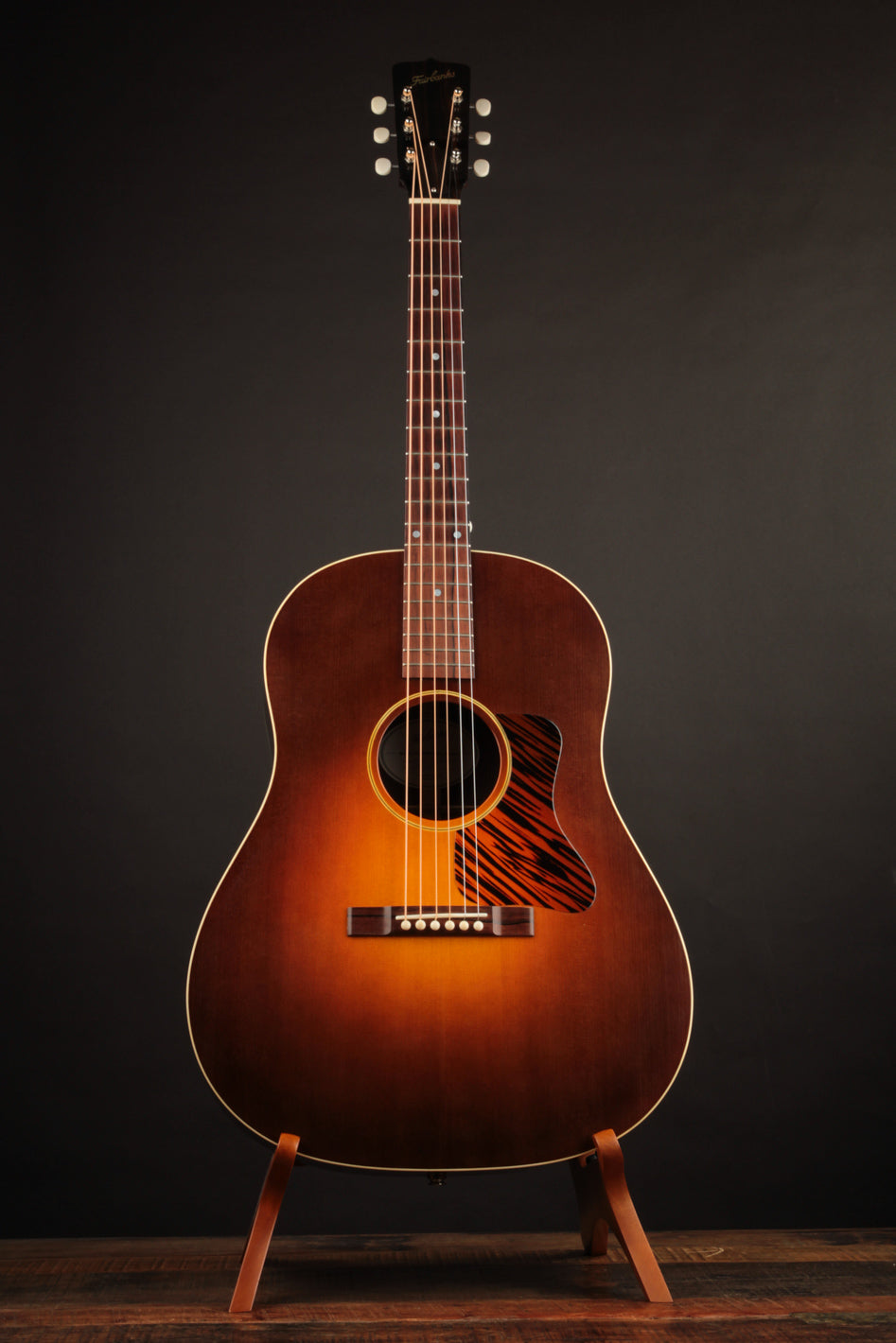 This 2017 Fairbanks F-35 Roy Smeck has just arrived for consignment! Built by Dale Fairbanks just before his move to Vermont, where he joined the Circle Strings workshop, this guitar is, essentially, a stock Smeck -- substituting Indian Rosewood for Mahogany back & sides. Interested in tone? Look no further. As one might expect from a vintage-inspired 12-fret dreadnought, this is a gargantuan-sounding guitar that produces big, warm notes everywhere on the fingerboard. It'd be an amazing anchor guitar in an old-time band, and also works very well for fingerstyle players seeking massive sound in a short-scale instrument.