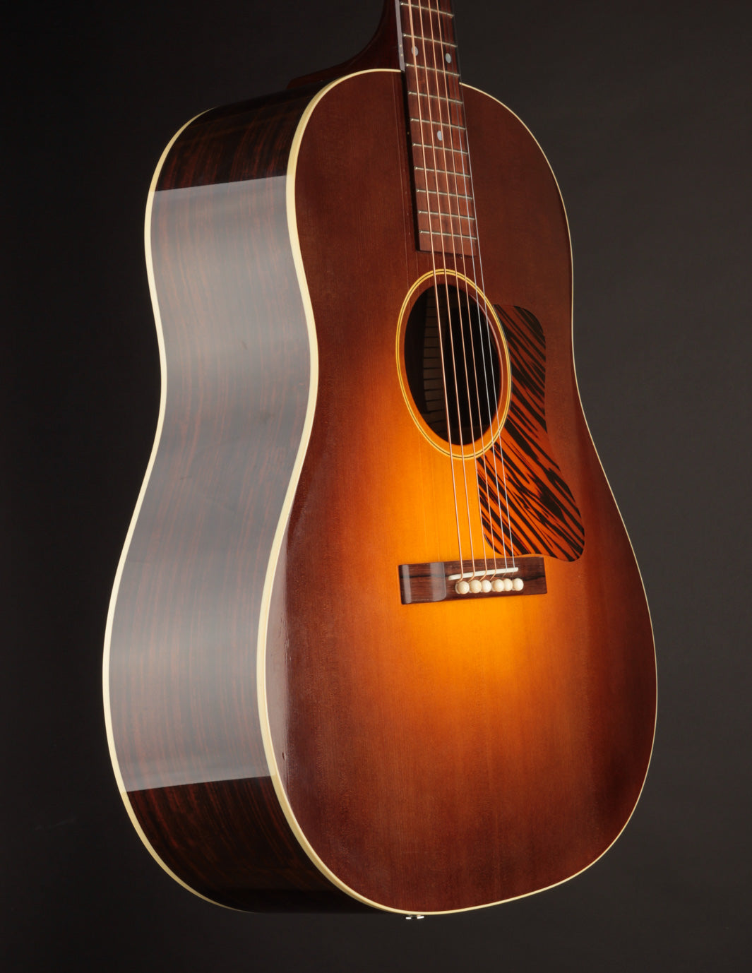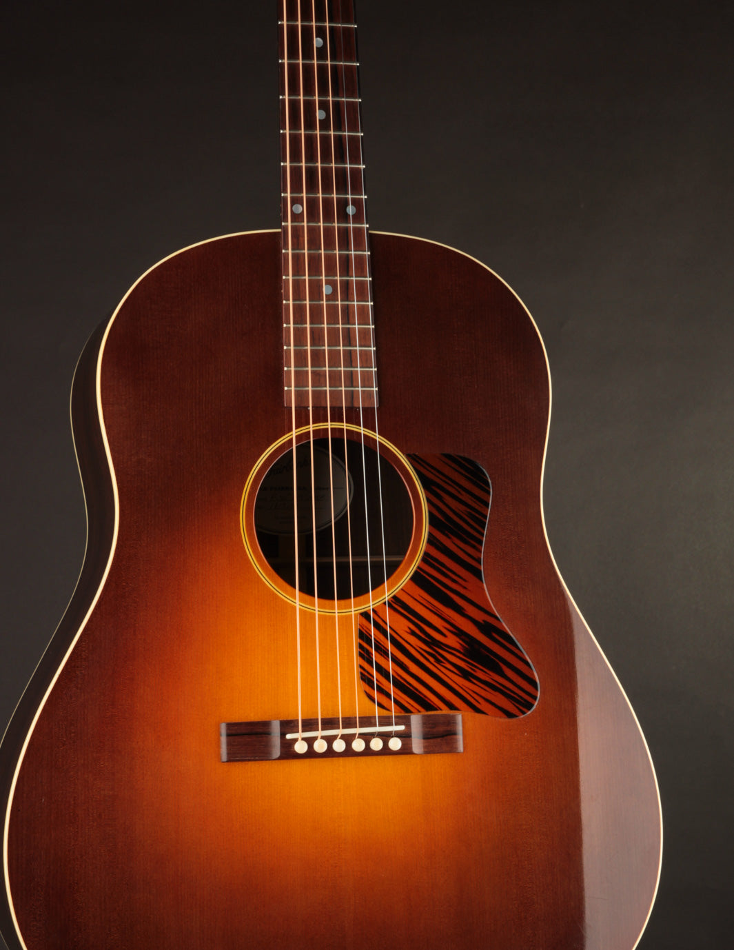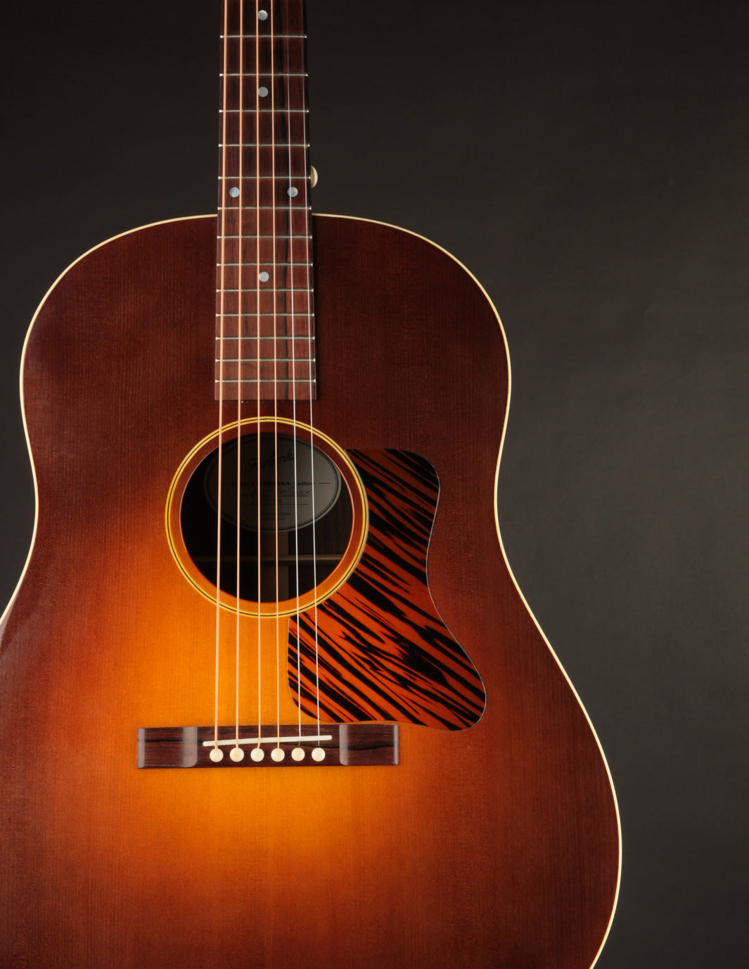 This 2017 Fairbanks F-35 Roy Smeck has just arrived for consignment! Built by Dale Fairbanks just before his move to Vermont, where he joined the Circle Strings workshop, this guitar is, essentially, a stock Smeck -- substituting Indian Rosewood for Mahogany back & sides. Interested in tone? Look no further. As one might expect from a vintage-inspired 12-fret dreadnought, this is a gargantuan-sounding guitar that produces big, warm notes everywhere on the fingerboard. It'd be an amazing anchor guitar in an old-time band, and also works very well for fingerstyle players seeking massive sound in a short-scale instrument.