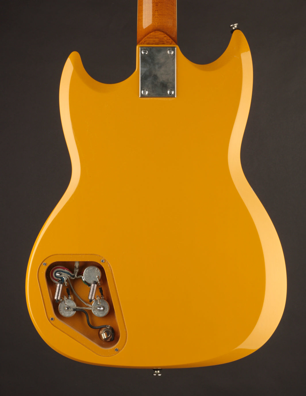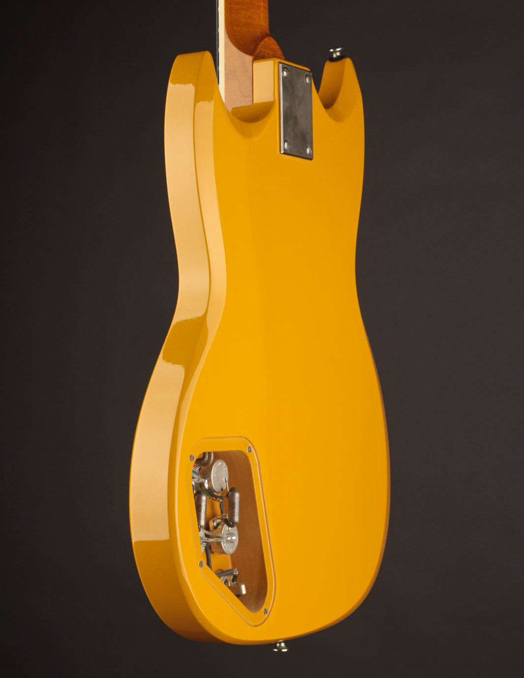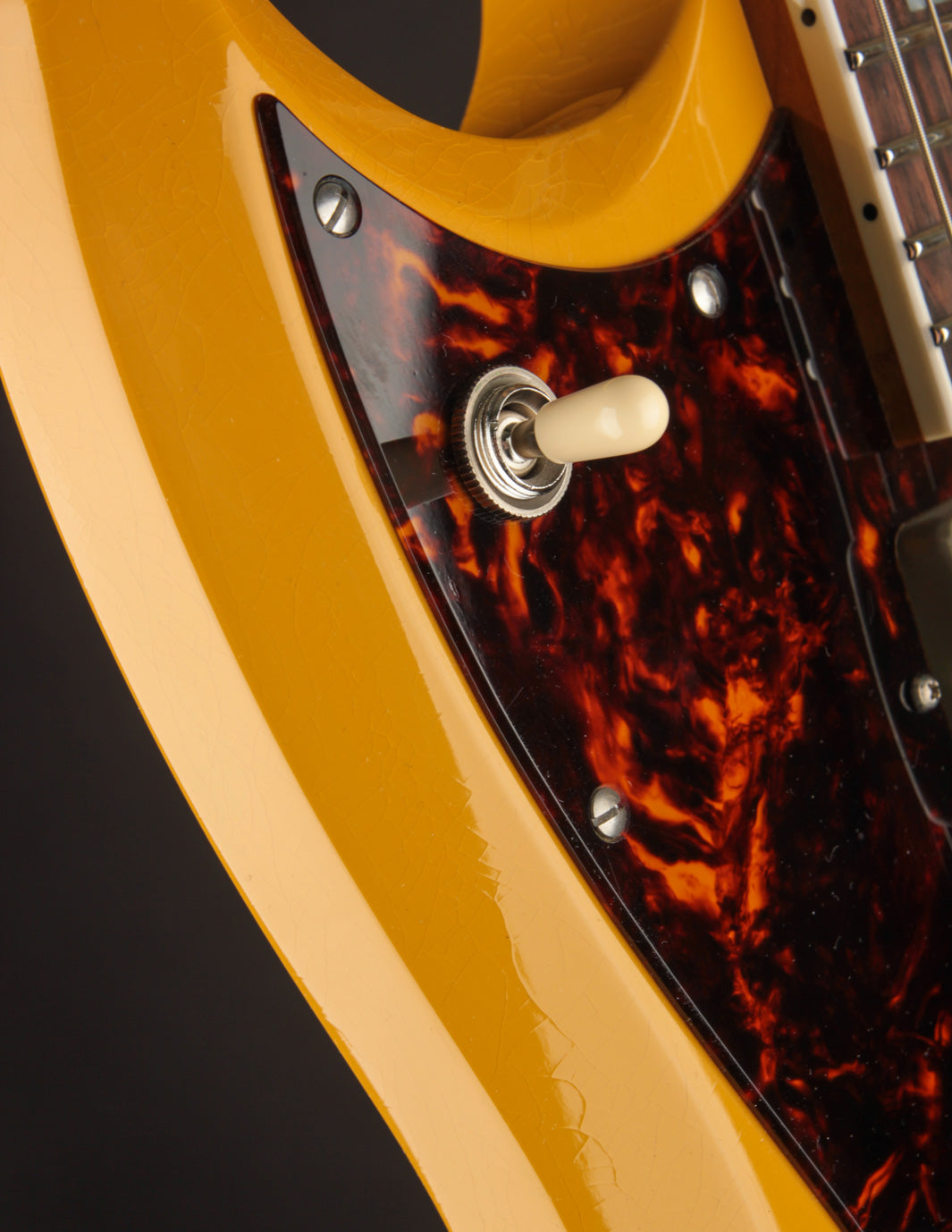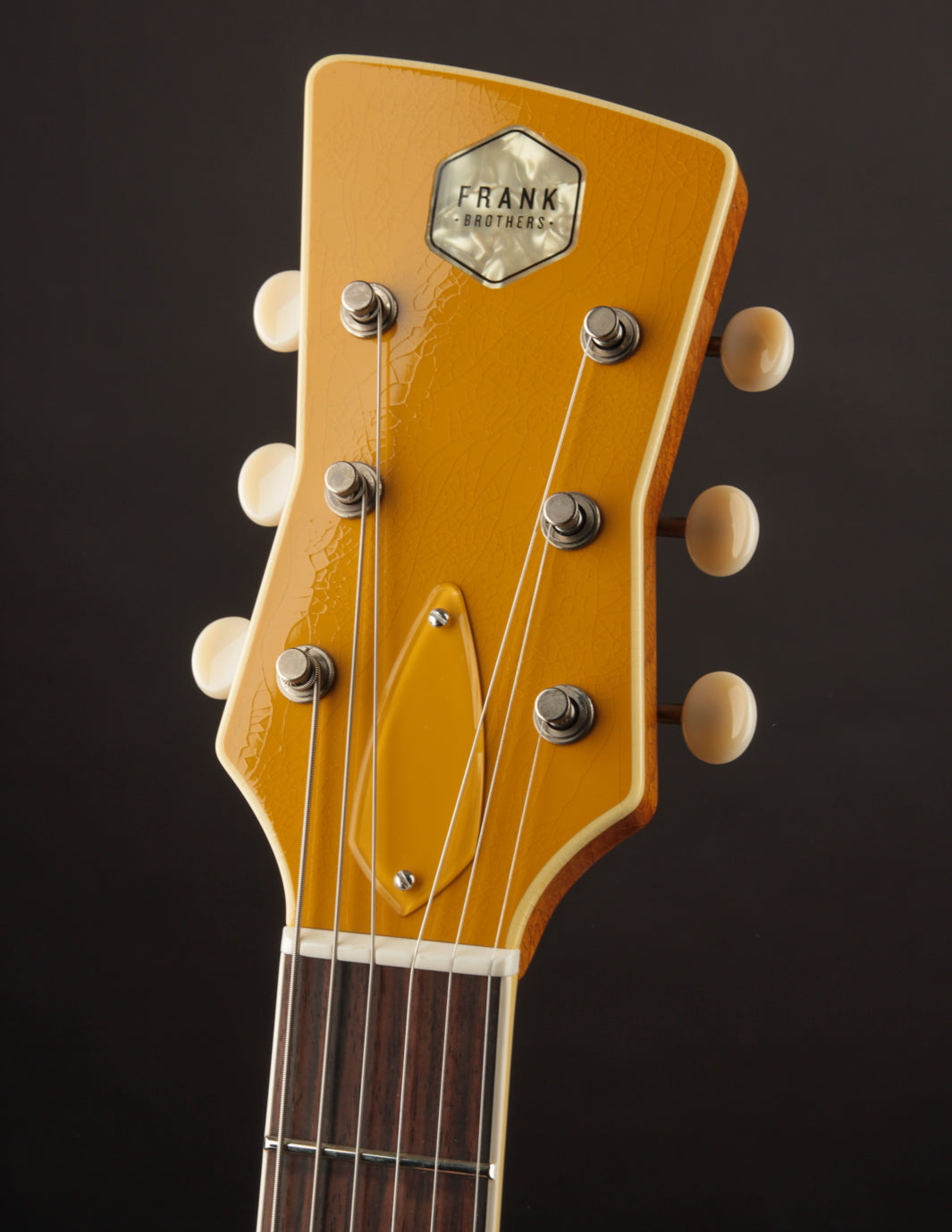 Finished in a beautifully relic'd color the Frank Brothers call Yellow Oxide, the Radar is the kind of instrument that invites you to plug in and lose track of time, which is exactly what happened the moment we picked it up.