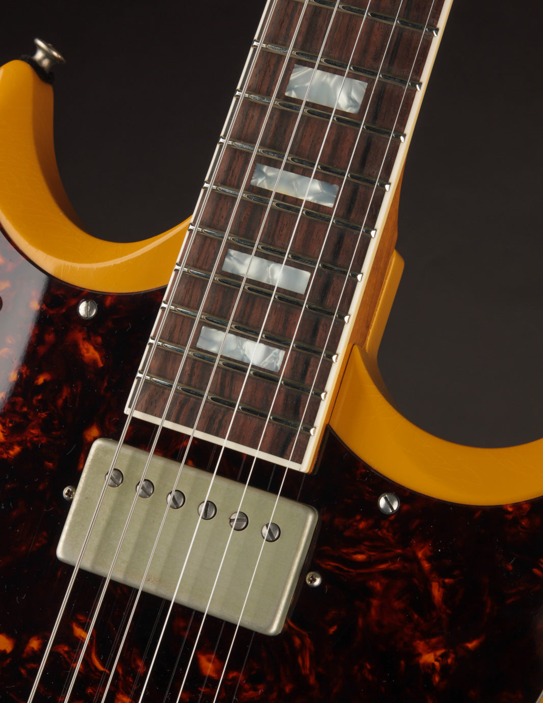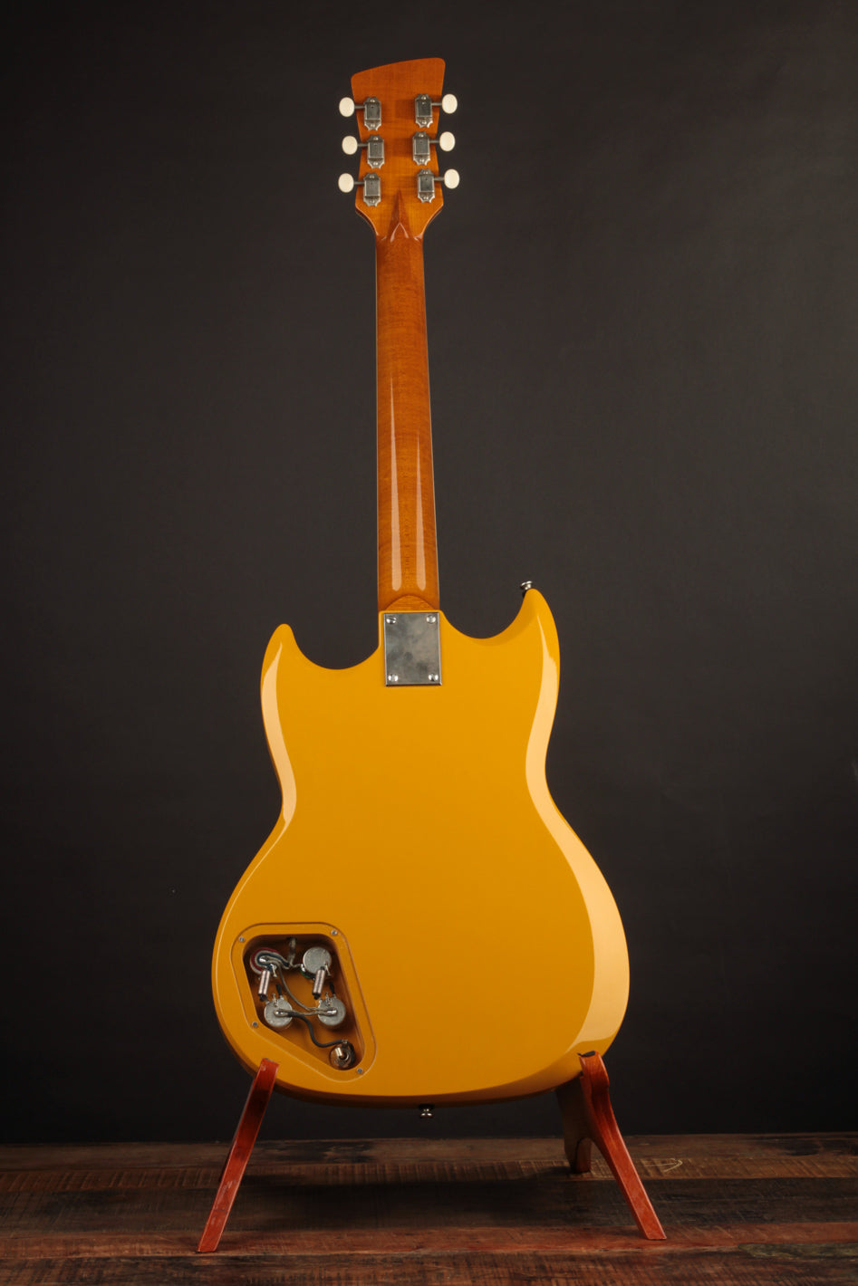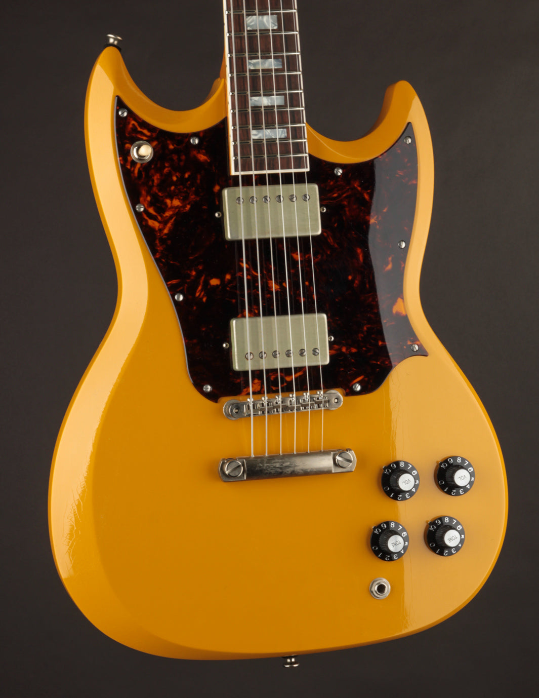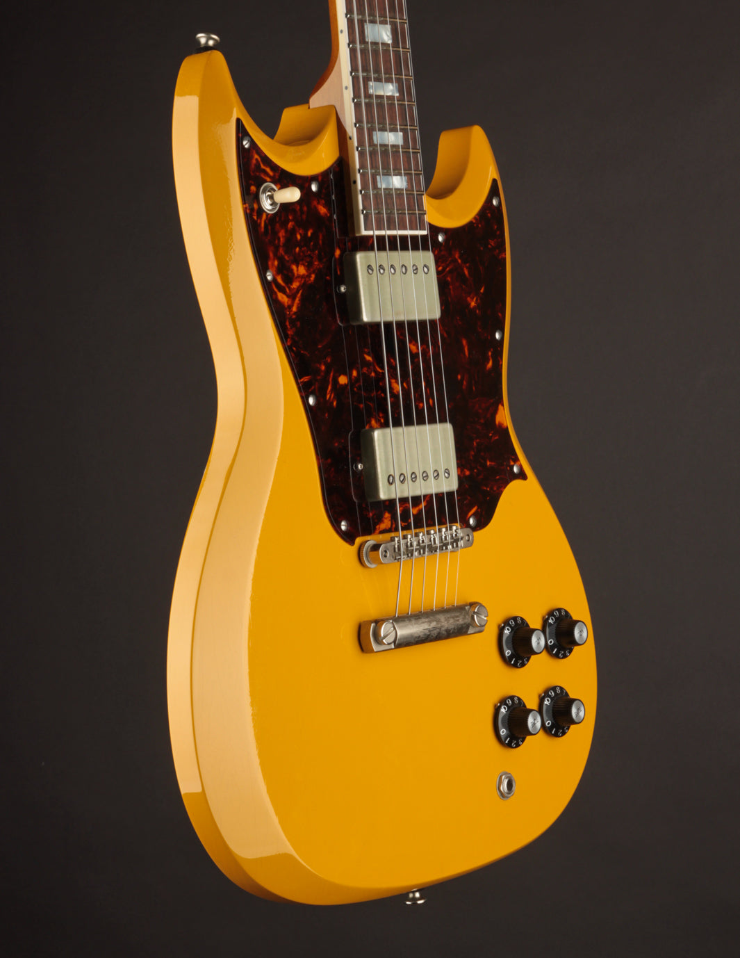 Finished in a beautifully relic'd color the Frank Brothers call Yellow Oxide, the Radar is the kind of instrument that invites you to plug in and lose track of time, which is exactly what happened the moment we picked it up.