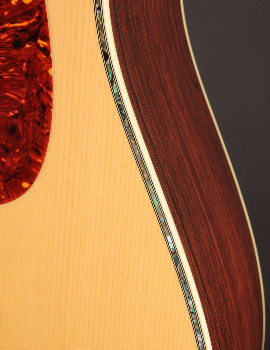 While we're comfortable calling this guitar's overall condition "excellent," it has been played and shows light pick wear on the pickguard and adjacent area of the soundboard. There are also two miniscule dings on the top. Our shop has freshened the setup, and it plays very easily under tension of medium gauge strings. Priced with its original TKL hard case.
