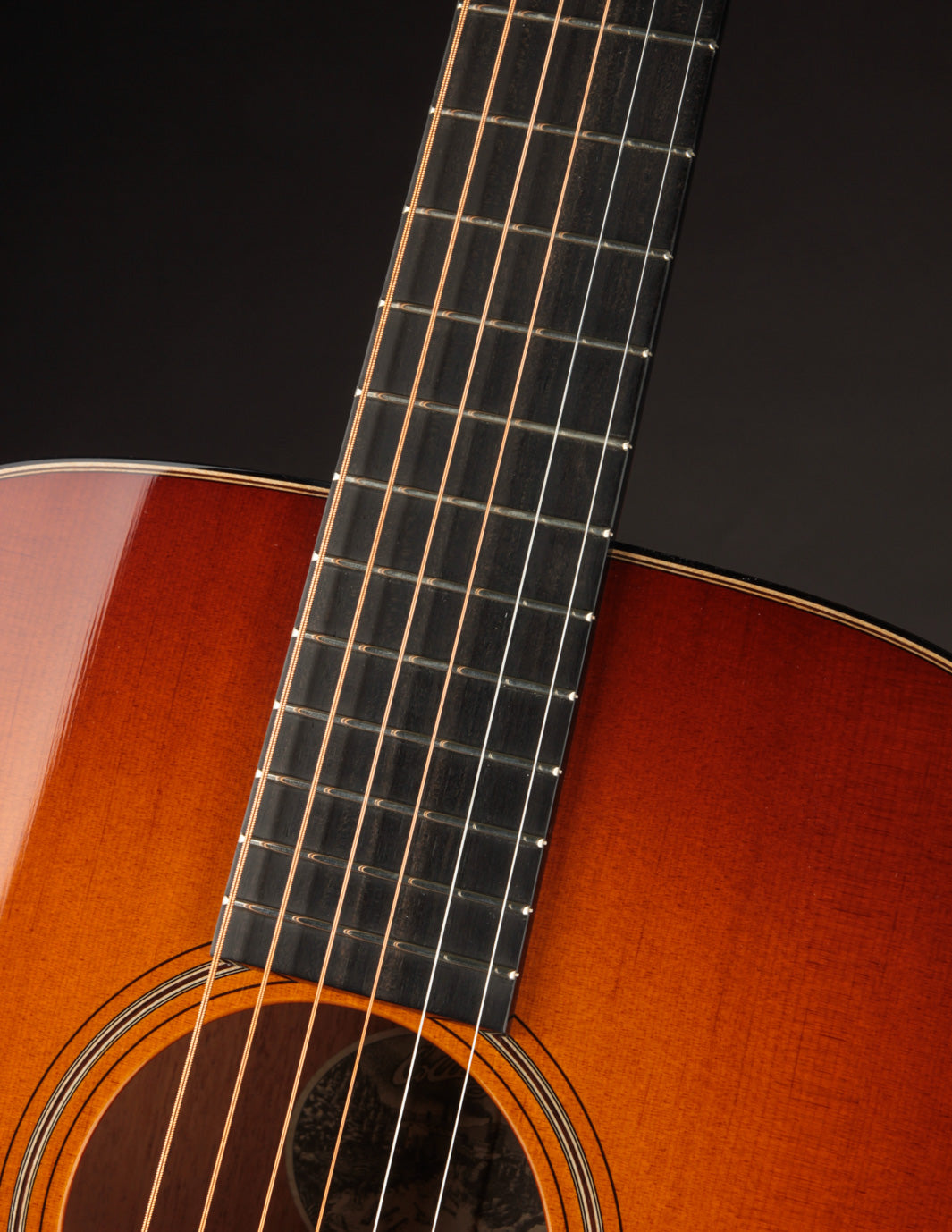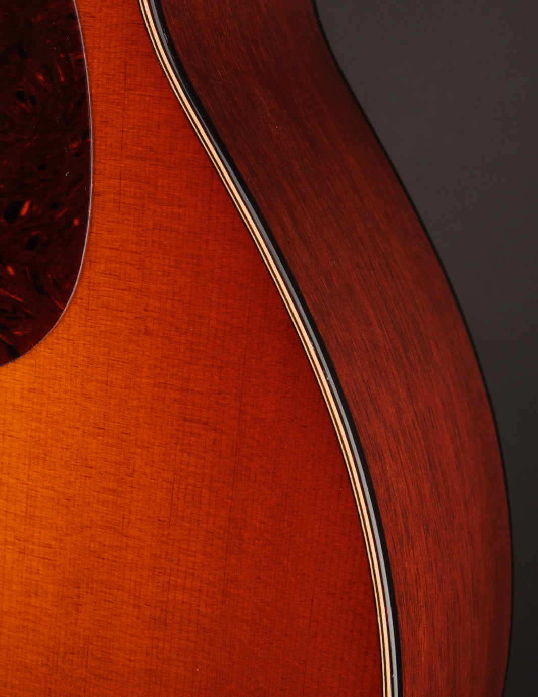 Featuring a torrefied Sitka Spruce top, this guitar is as raw-sounding and open as a new guitar gets ~ an ideal choice for a flatpicker / strummer who prefers to play an OM in the name of increased comfort.