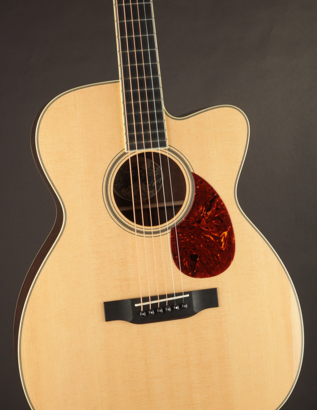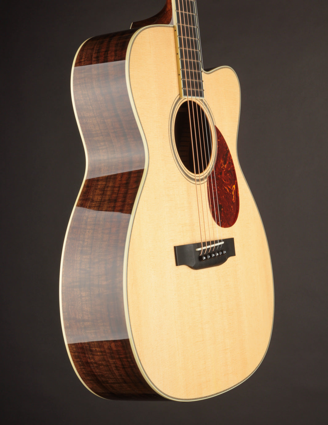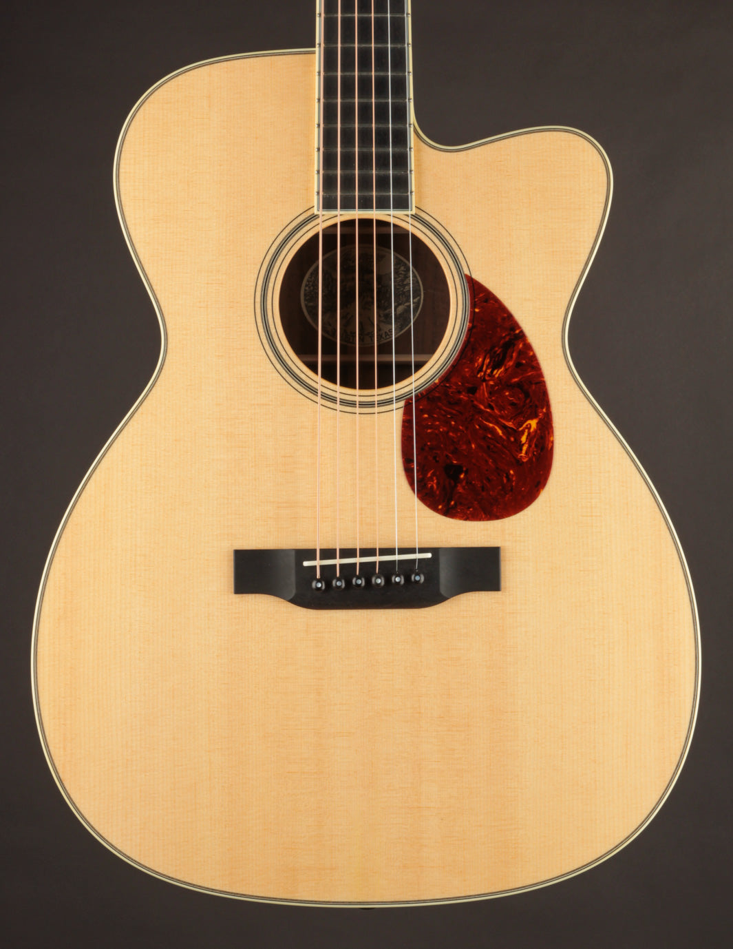 In the market for a Collings OM with a cutaway? We've got your guitar. This 2023 OM1 looks like it's never been played, and sounds absolutely wonderful. The gorgeous figured Walnut back & sides give this guitar a darker sound than Mahogany would -- and it produces some really interesting overtones that befit fingerstyle instrumental tunes nicely.
