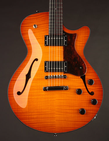 This brand new Collings 620 in Iced Tea Sunburst marks the very first semi-hollow variant of its kind as part of a new lineup of electric offerings from our great friends in Austin! While it shares its silhouette with the fully hollow, deeper bodied alternate bearing the SM LC suffix, the "standard" 620 pulls inspiration from the I-35LC Vintage model.