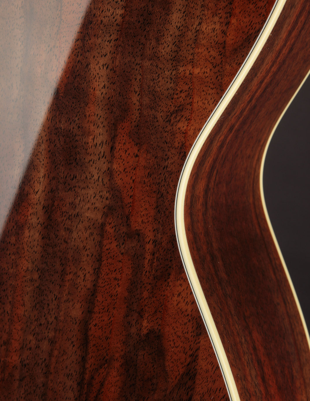 While there may not be up front glitz or glamour when you look at this Collings 002H, what's special about it is the very essence of what makes a guitar a guitar ~ the wood. Using reclaimed Alaskan Sitka Spruce, and some unusually pretty Bastogne Walnut, the builders at Collings have made a warm, decades-old-sounding little guitar. It's perfectly suited to a fingerstyle player who likes an instrument with an excitable top and a woody voice.