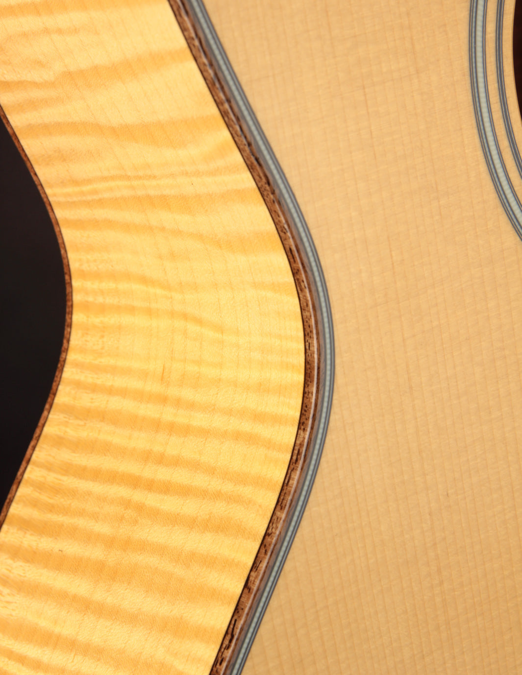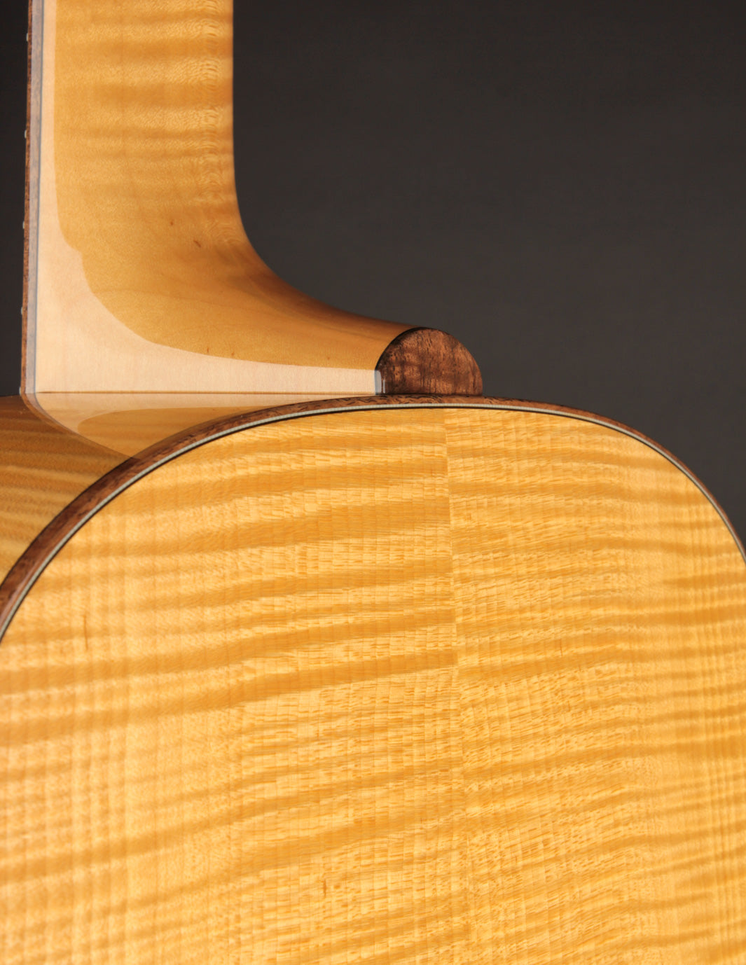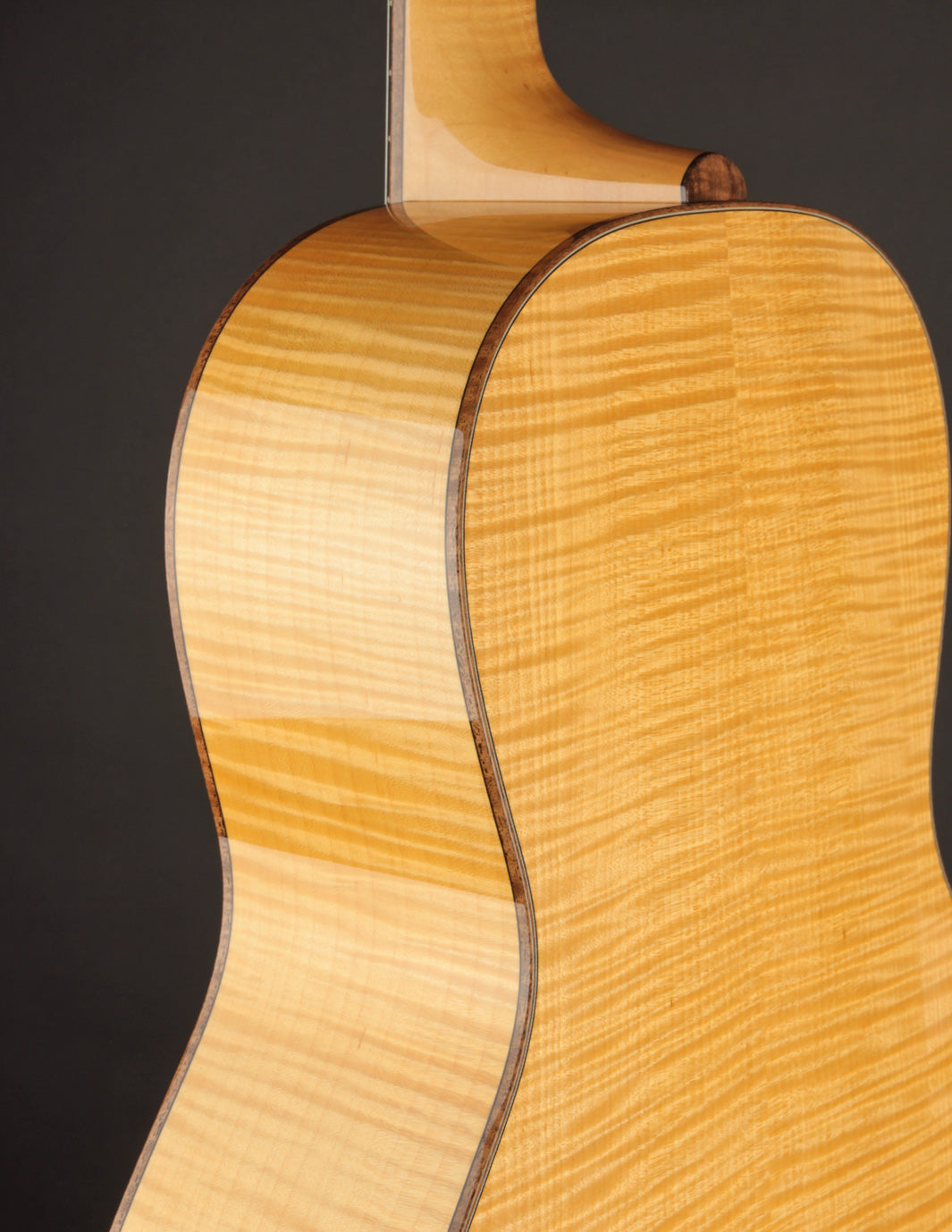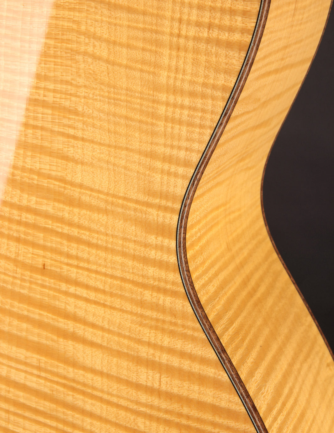 This beautiful C10 model is constructed from private-stock flamed Maple & European Spruce and features a Madagascar Rosewood bridge, fingerboard, and peghead veneer. As is that weren't enough, it's also fully bound in solid Walnut.