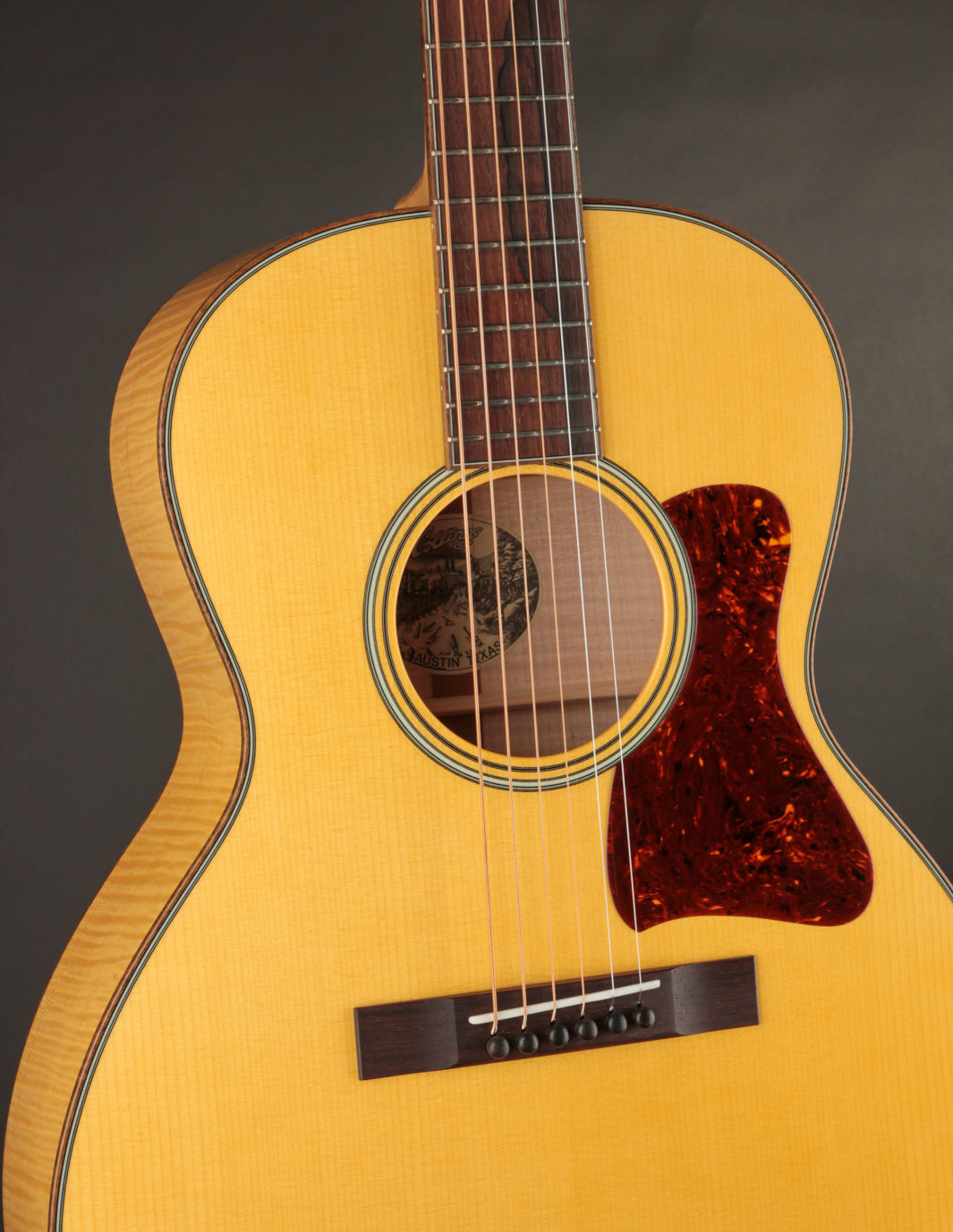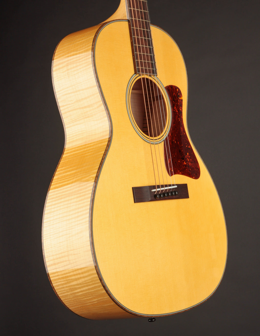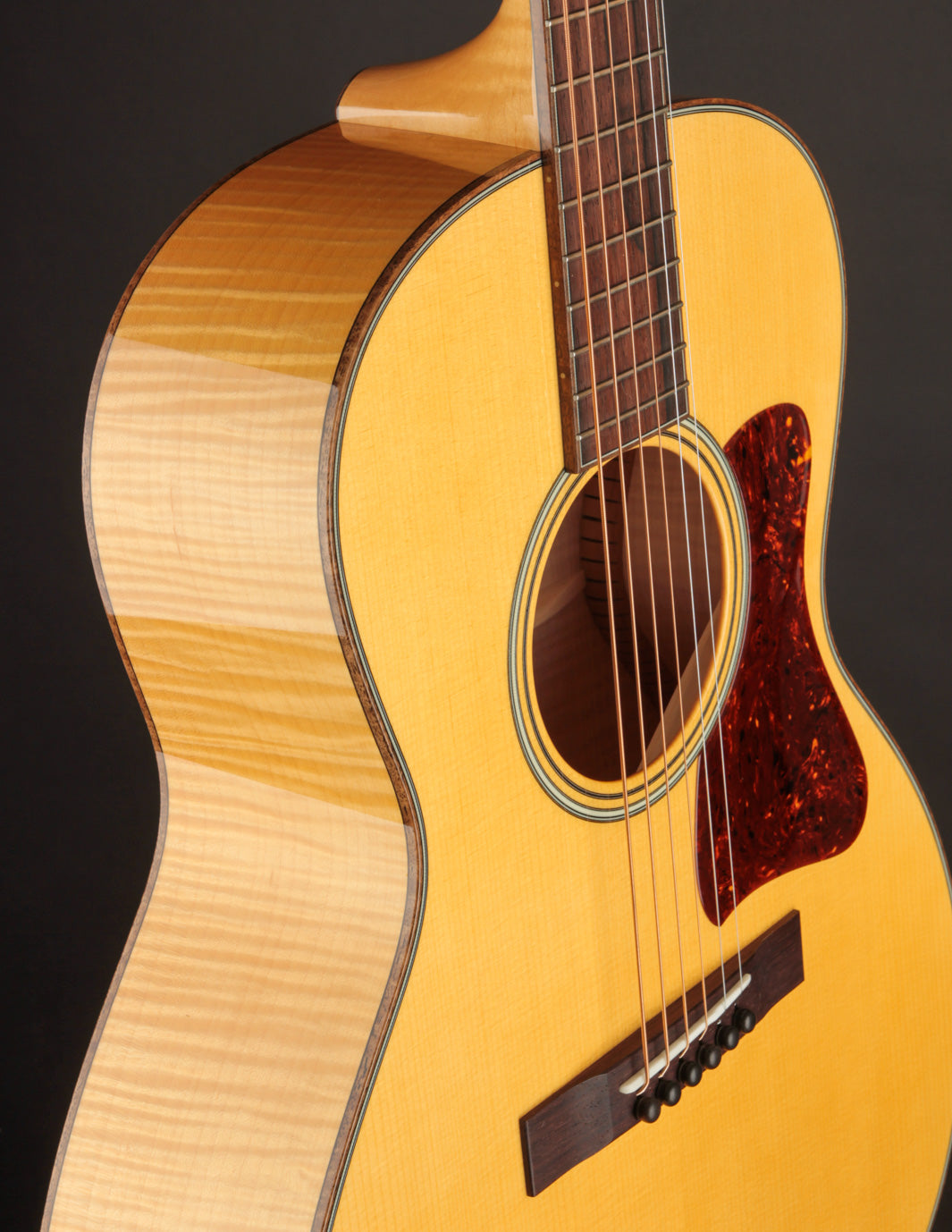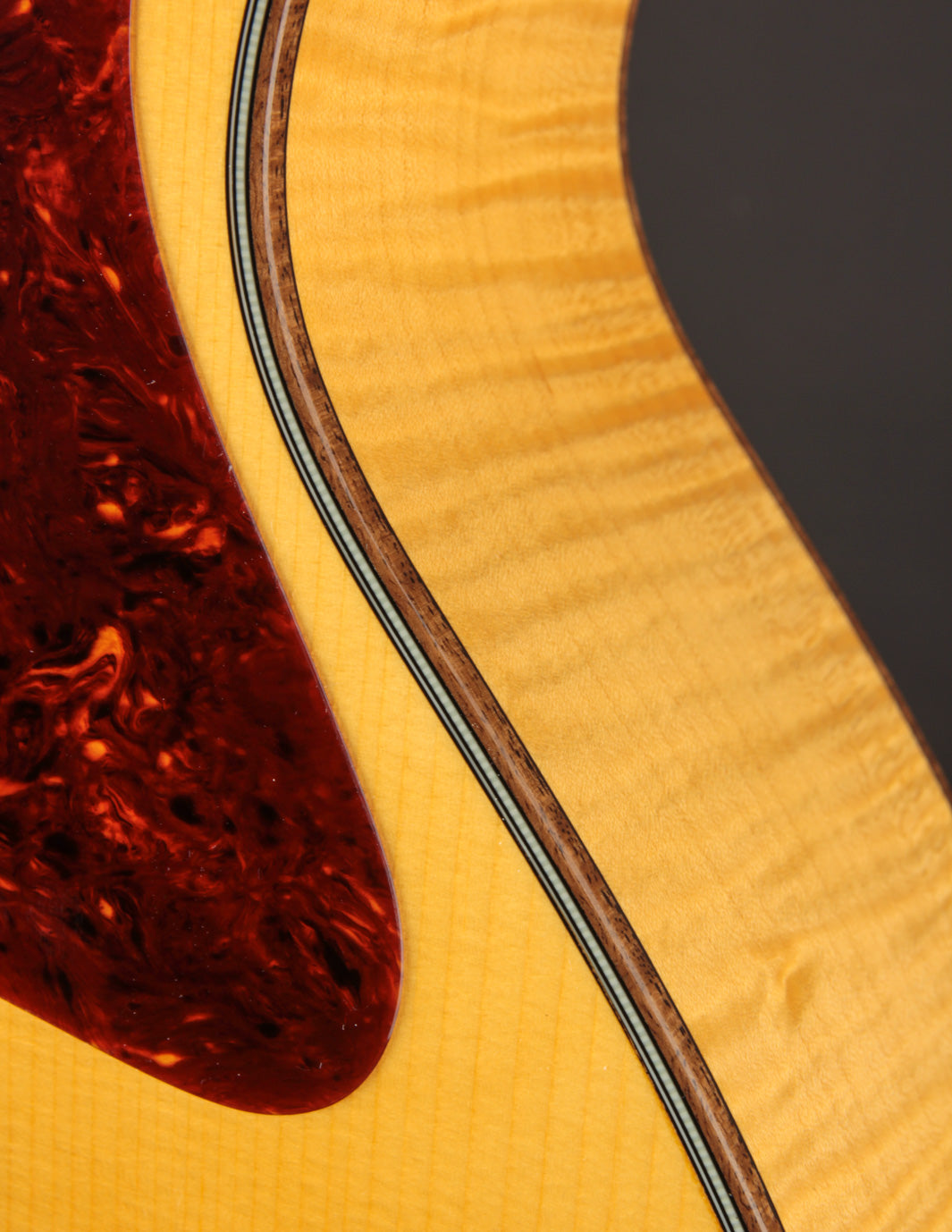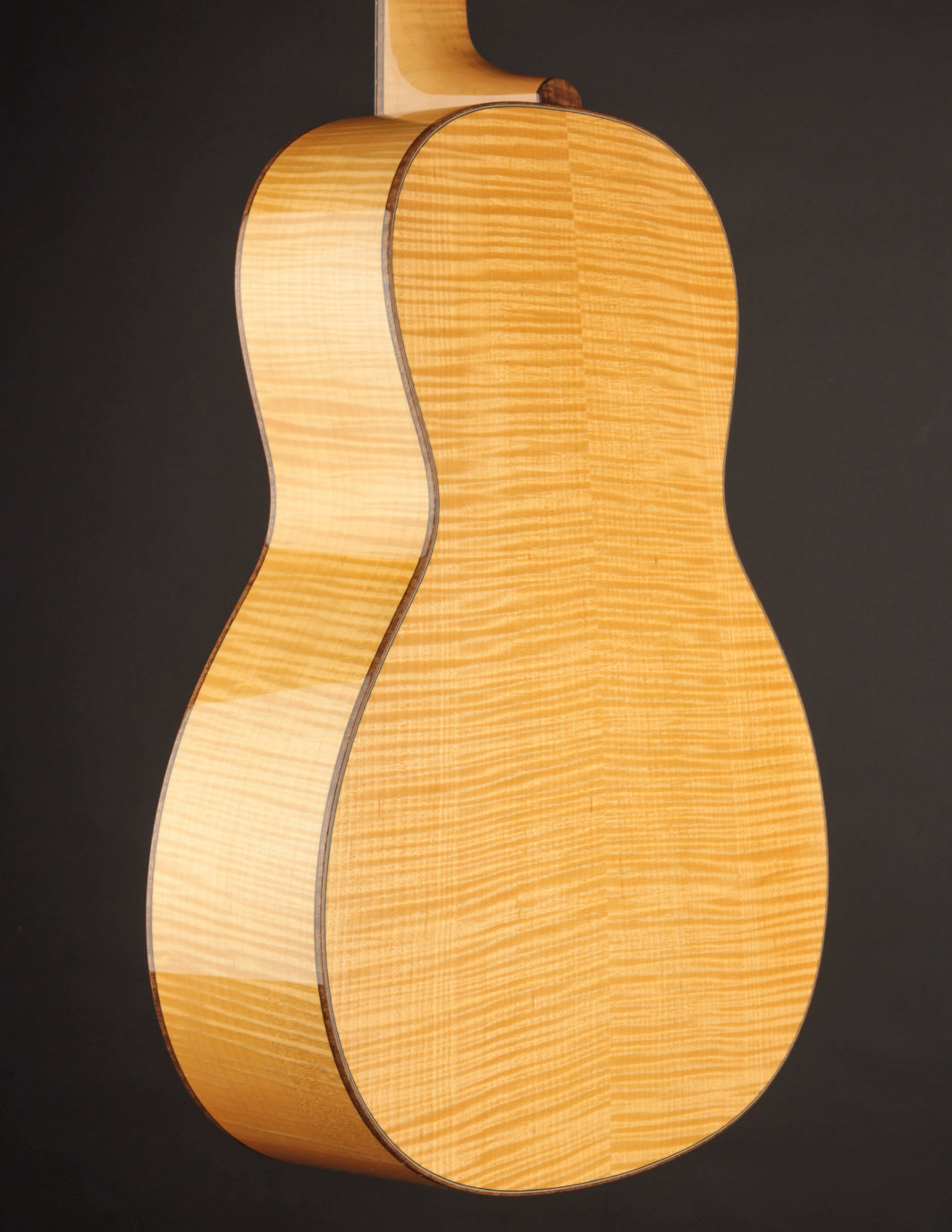 This beautiful C10 model is constructed from private-stock flamed Maple & European Spruce and features a Madagascar Rosewood bridge, fingerboard, and peghead veneer. As is that weren't enough, it's also fully bound in solid Walnut.