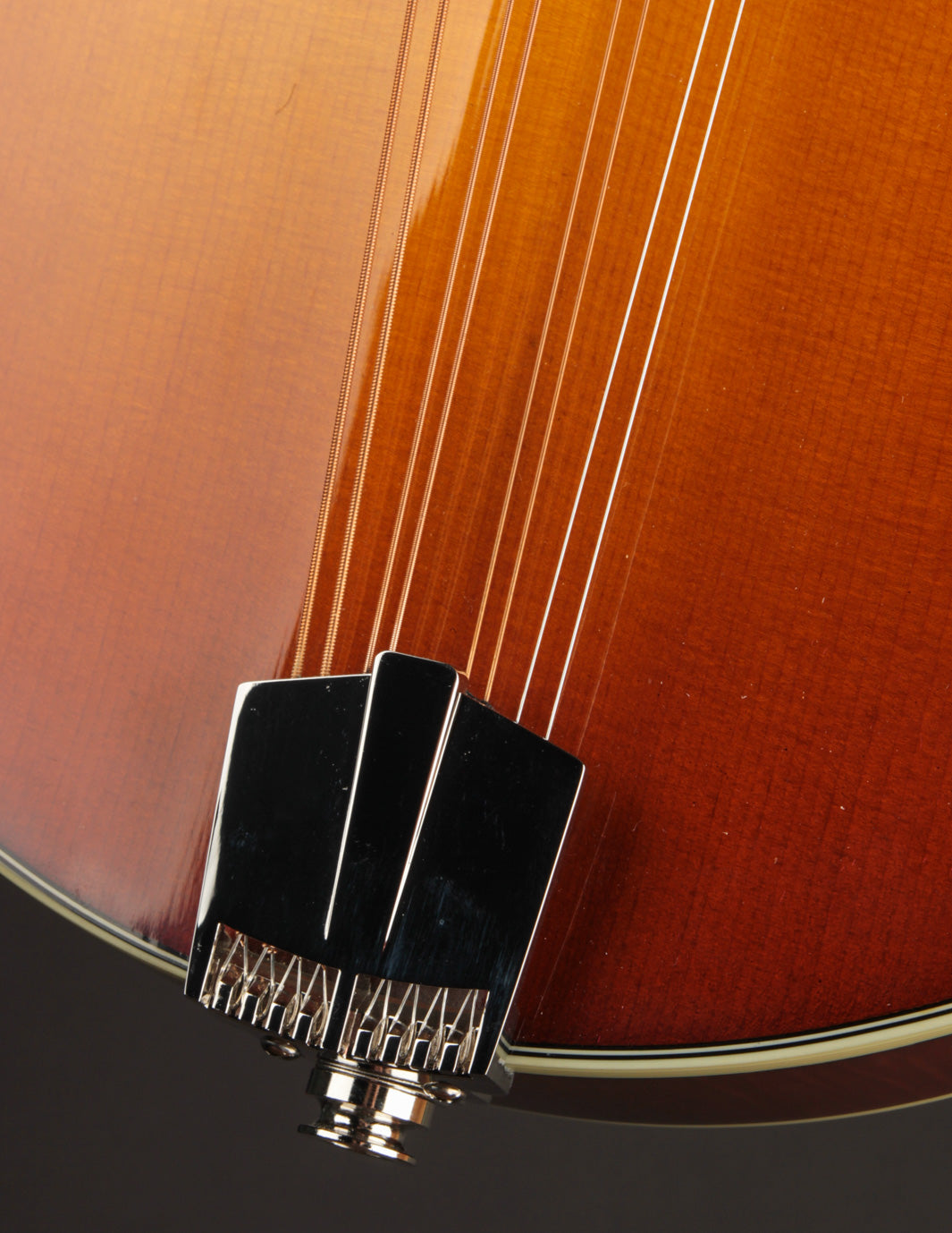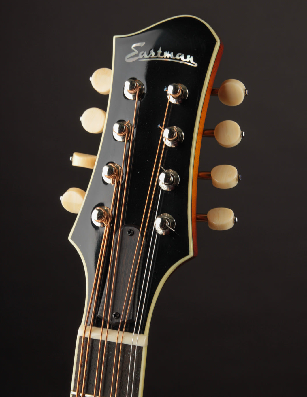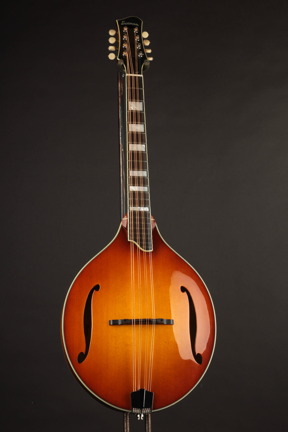 Just in from Eastman, this MDO605 Octave Mandolin is ideal for anyone looking to expand their range in the mandolin family with an easy-playing, all solid-wood instrument! Featuring a comfortable scale length for both melody and chordal playing, this octave mandolin has a deep woody voice with plenty of power on tap. Elegantly appointed with Eastman's "Goldburst" gloss finish, ivoroid binding and block inlays. Priced with violin-style hard case.