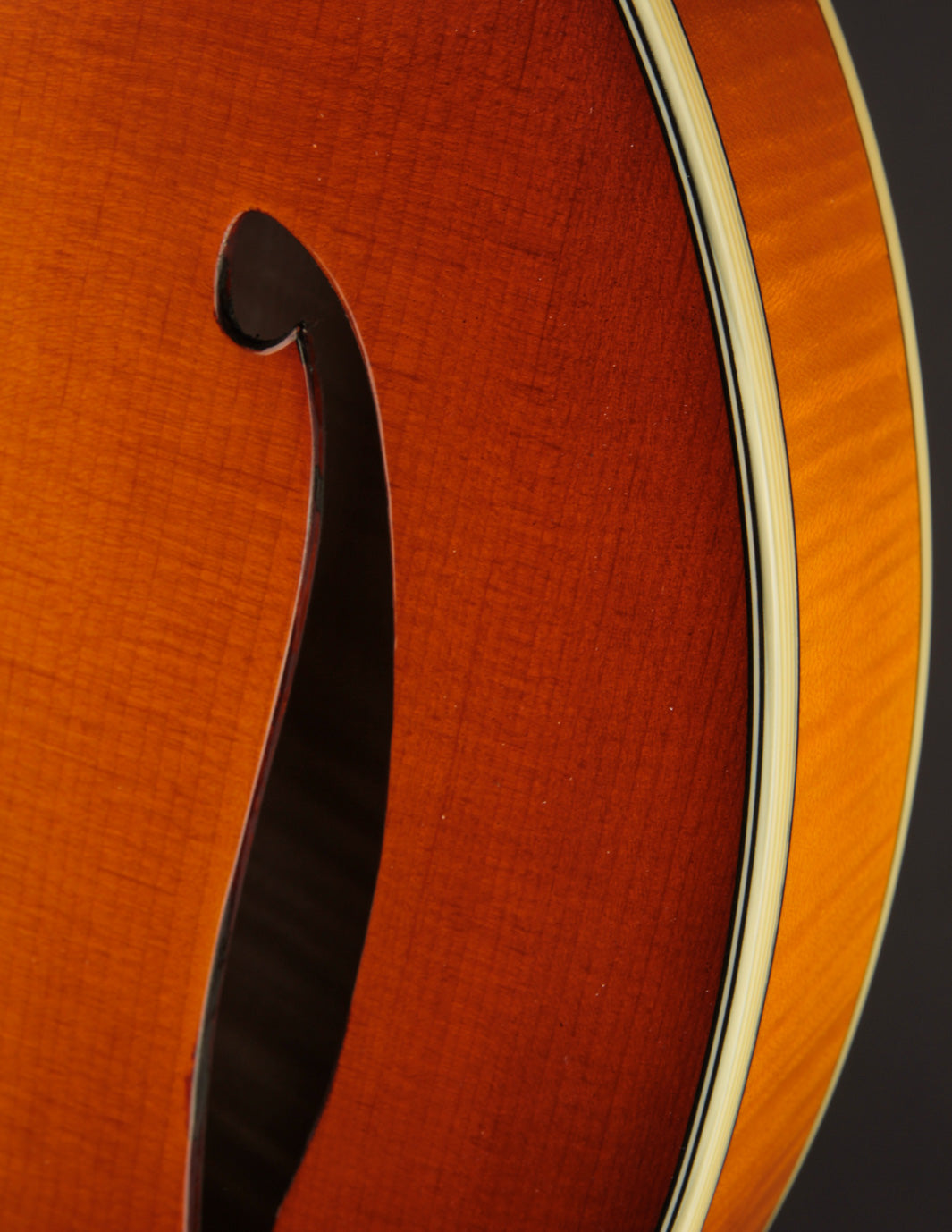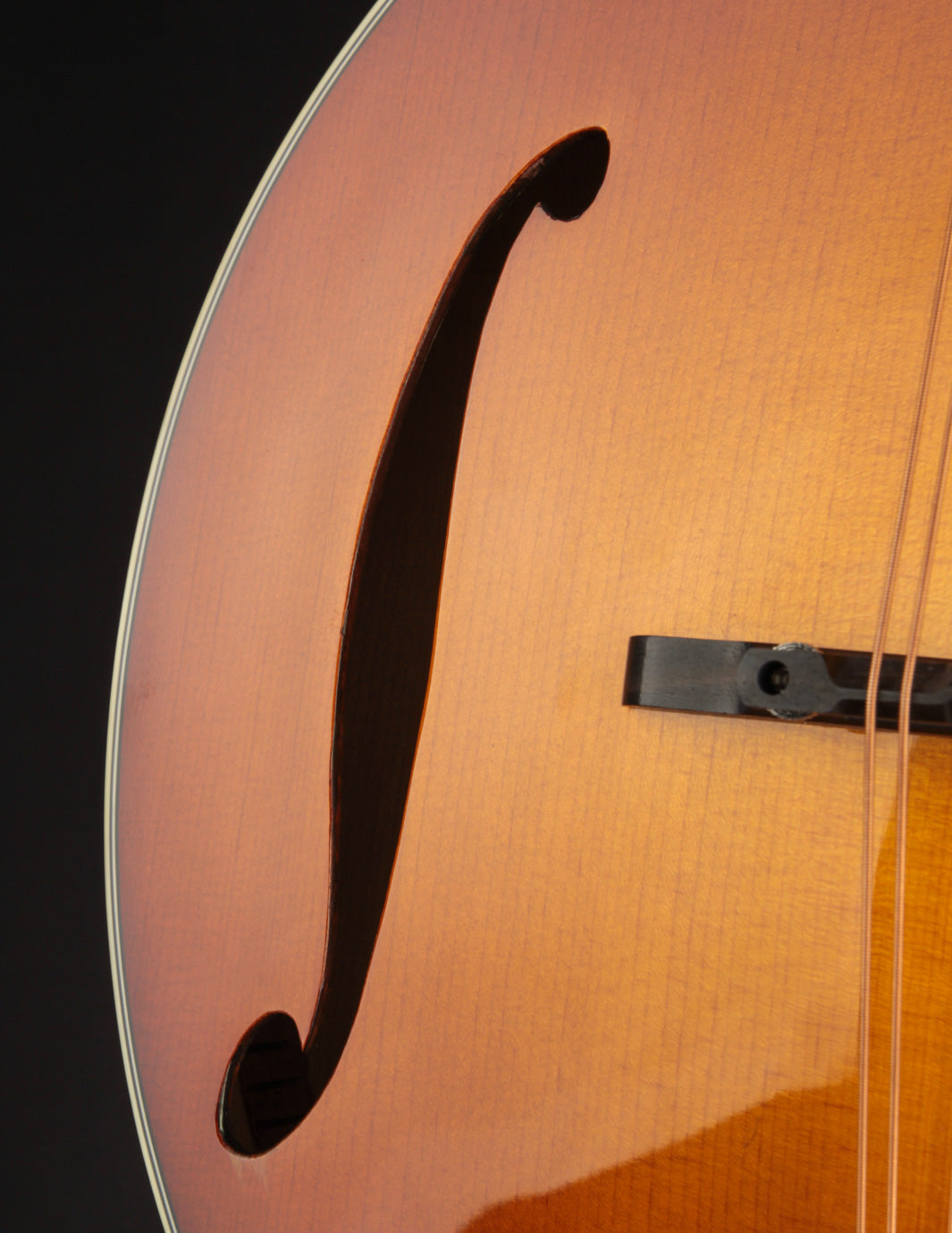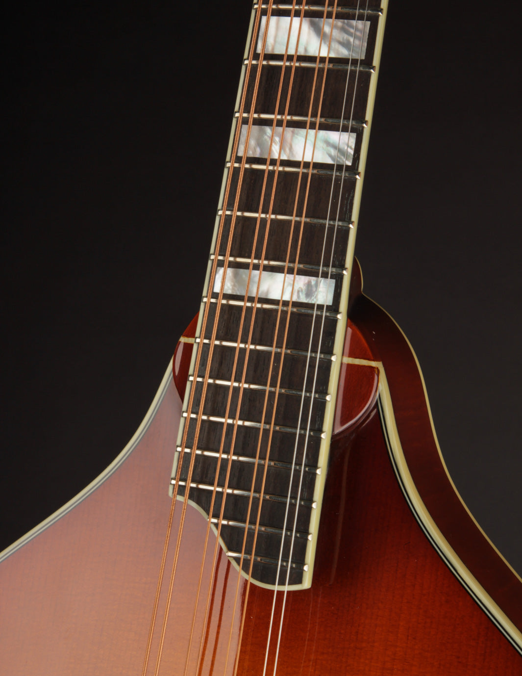 Just in from Eastman, this MDO605 Octave Mandolin is ideal for anyone looking to expand their range in the mandolin family with an easy-playing, all solid-wood instrument! Featuring a comfortable scale length for both melody and chordal playing, this octave mandolin has a deep woody voice with plenty of power on tap. Elegantly appointed with Eastman's "Goldburst" gloss finish, ivoroid binding and block inlays. Priced with violin-style hard case.