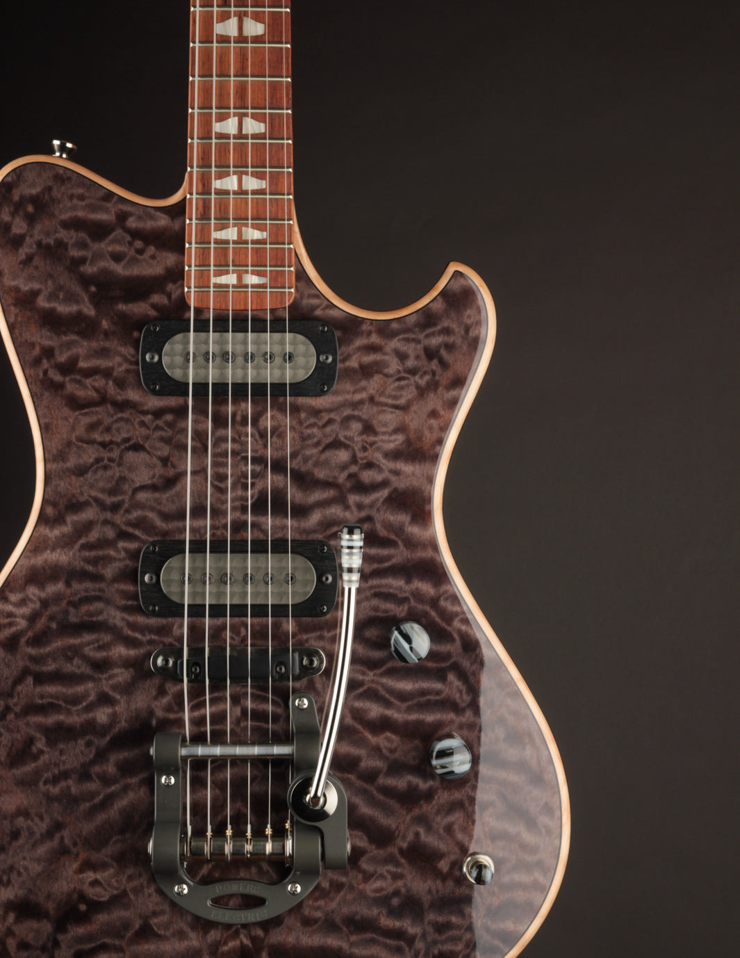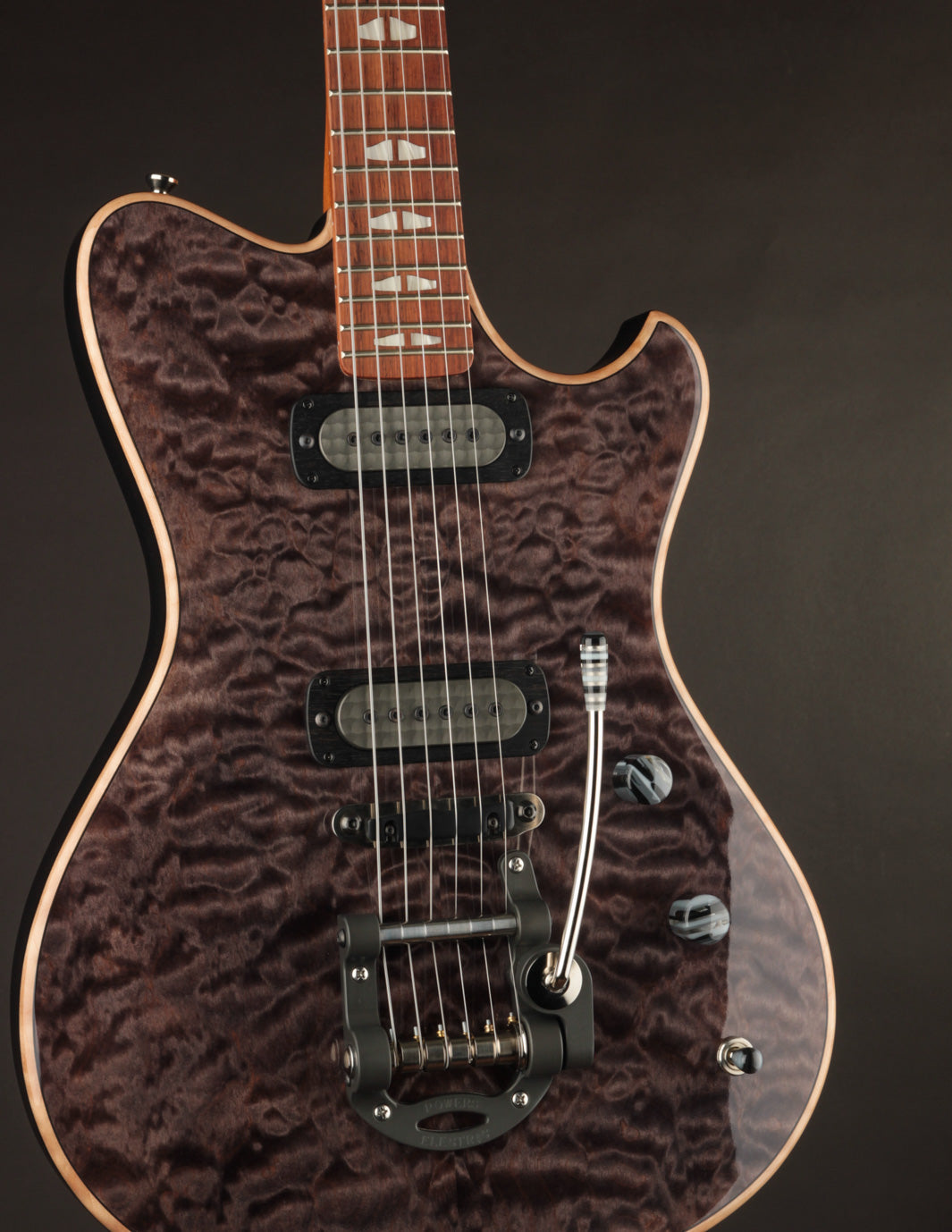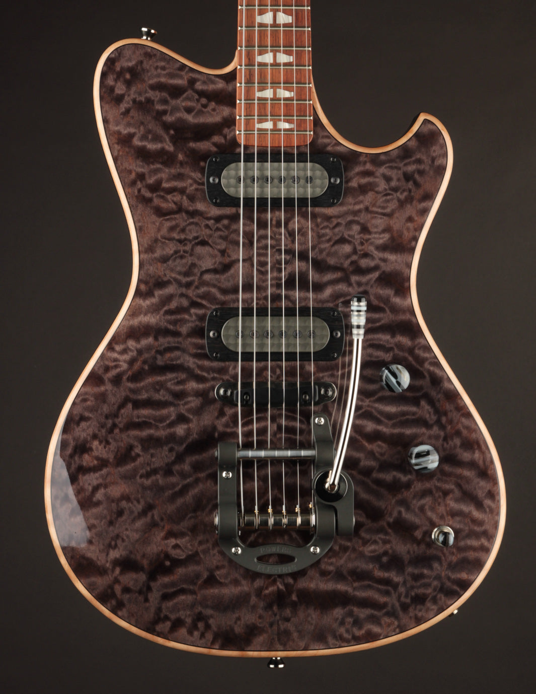 This custom Powers Electric A-Type features a hand-selected quilted maple top, Full Faraday pickups, and a refined finish that elevates one of our all-time favorite modern electrics.