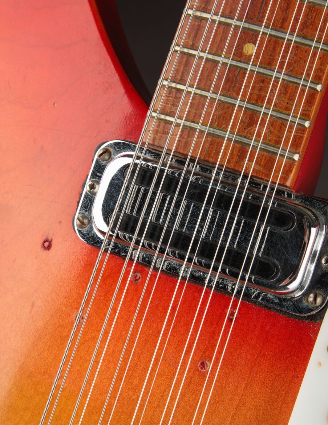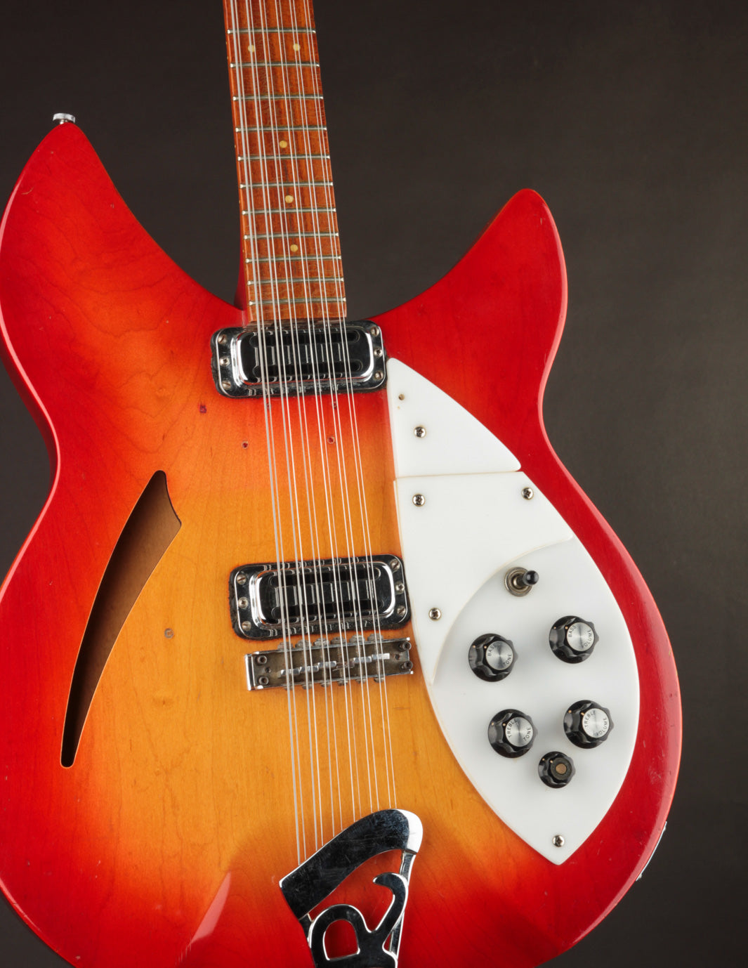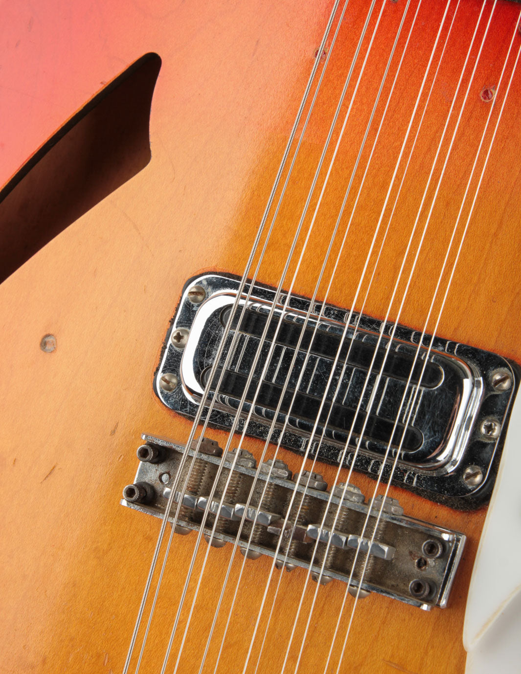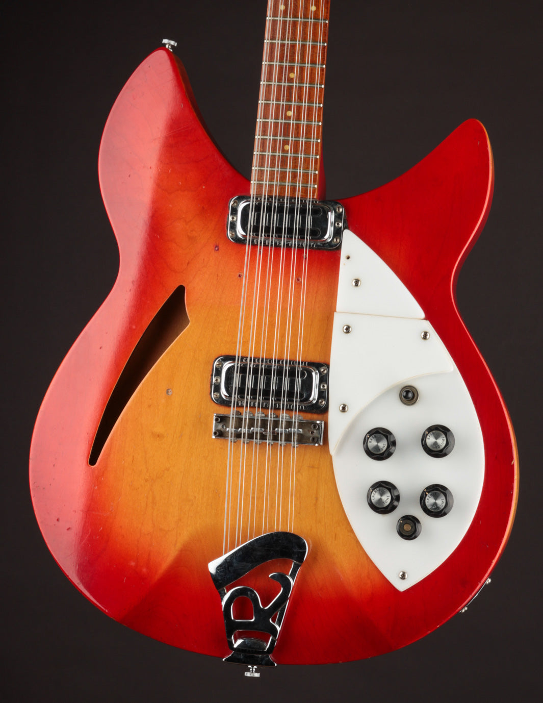 A converted convertible?! This 1967 Rickenbacker 336/12 shed its original comb system and lives on as a classic 12-string version of the heralded 330.