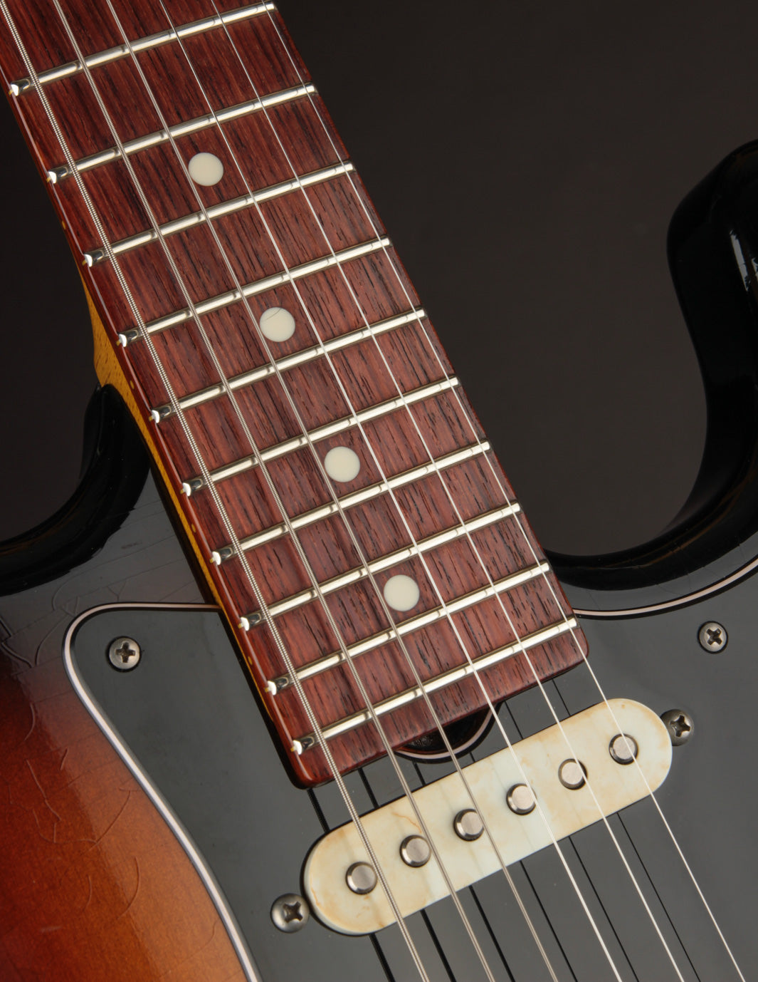 This Timeworn (Grosh's new artfully aged finish) 3-Tone Sunburst NOS Retro brings all the vibe of an early ’60s Strat but with a smoother, more refined feel. A medium/large neck carve, 10" radius, and 6150 frets make it feel effortlessly modern without losing its vintage-inspired roots. Don has a rare gift for bridging the gap between vintage feel and modern performance. His guitars blend the best of both worlds, which is exactly why they’ve remained a longtime favorite here at the shop.