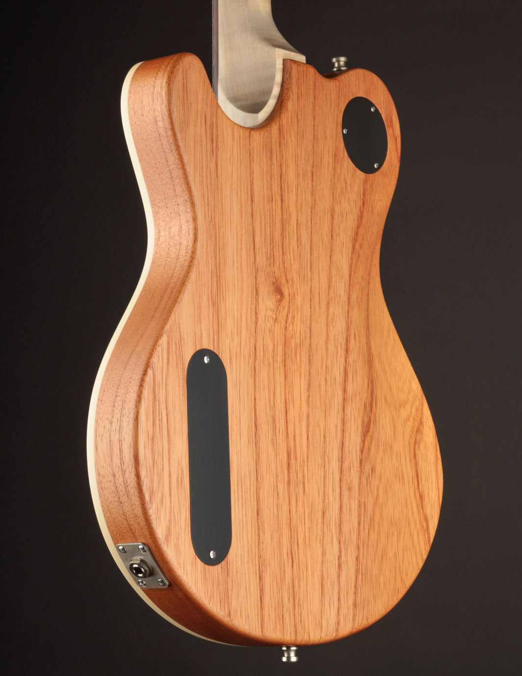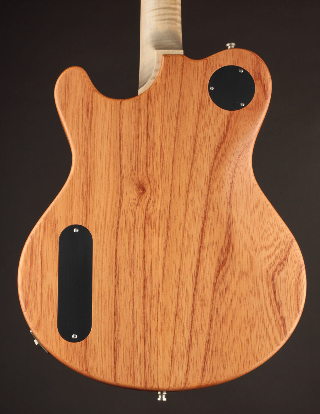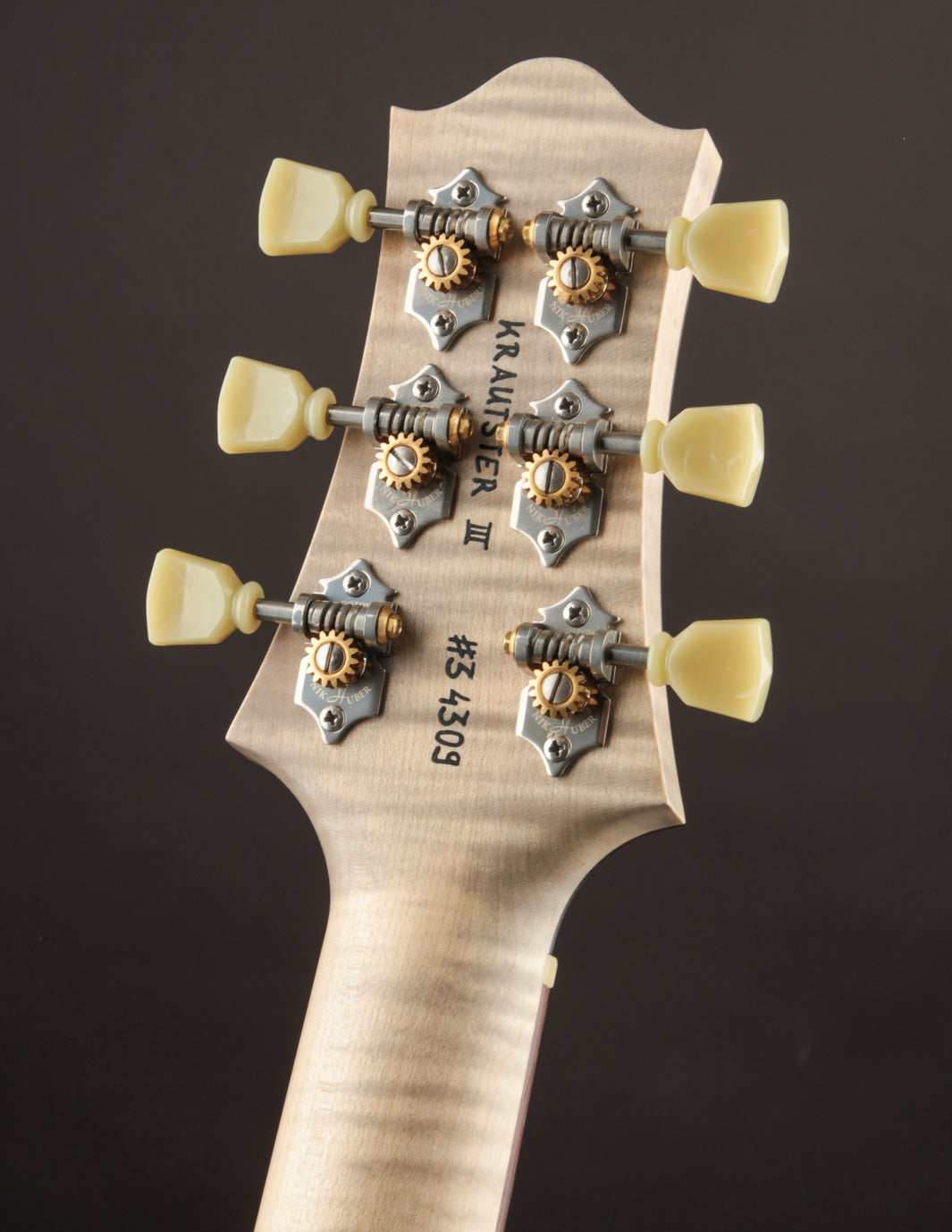 The Nik Huber Krautster III pairs Haussel pickups, wraptail simplicity, and a chunky satin flamed maple neck with Huber’s distinctive Dolphin body shape.