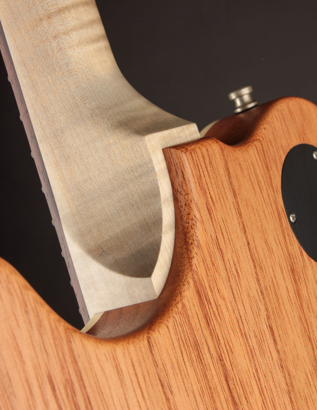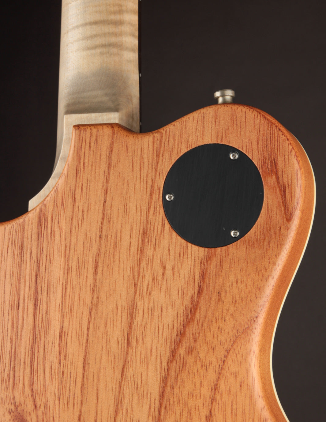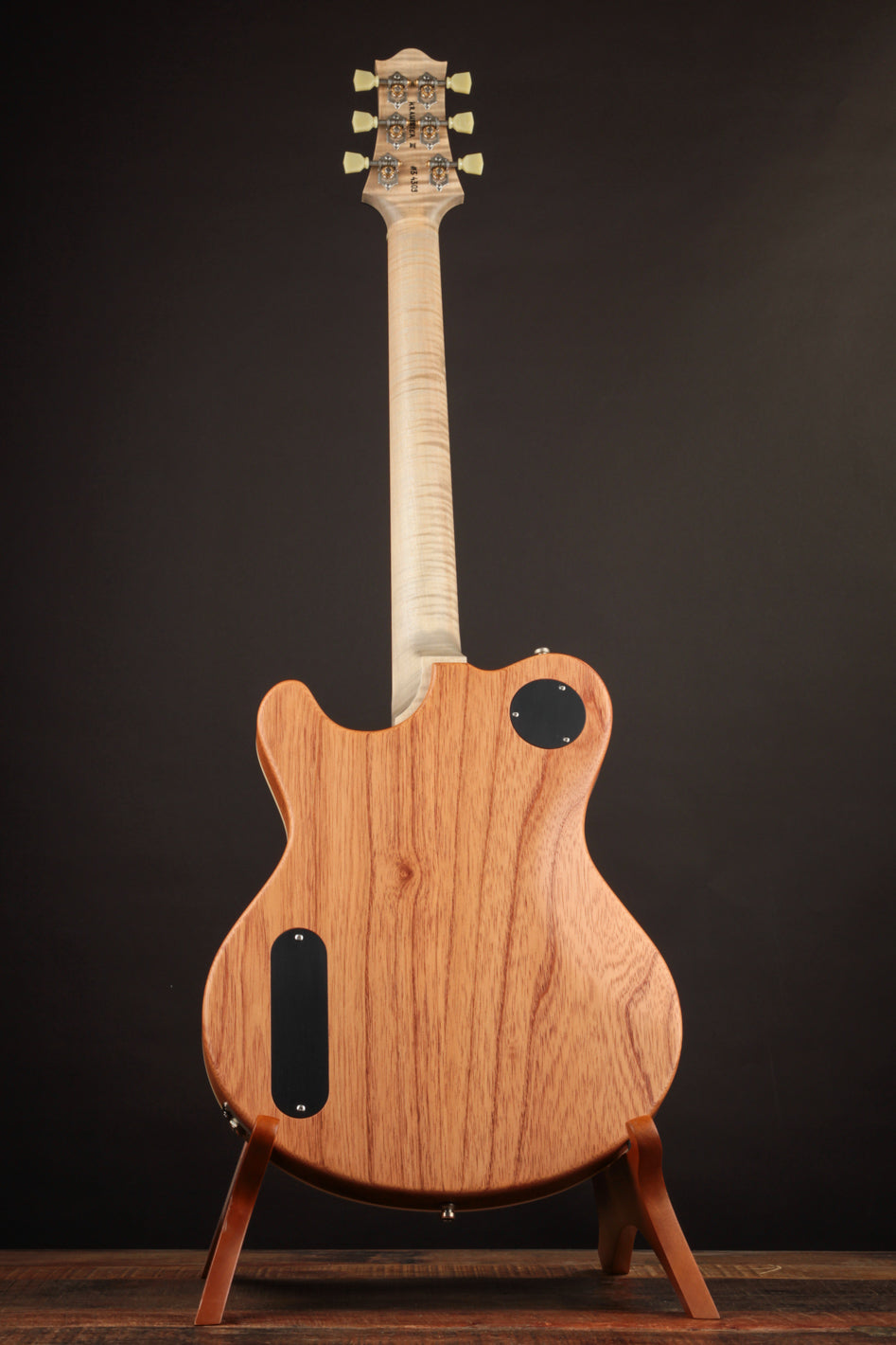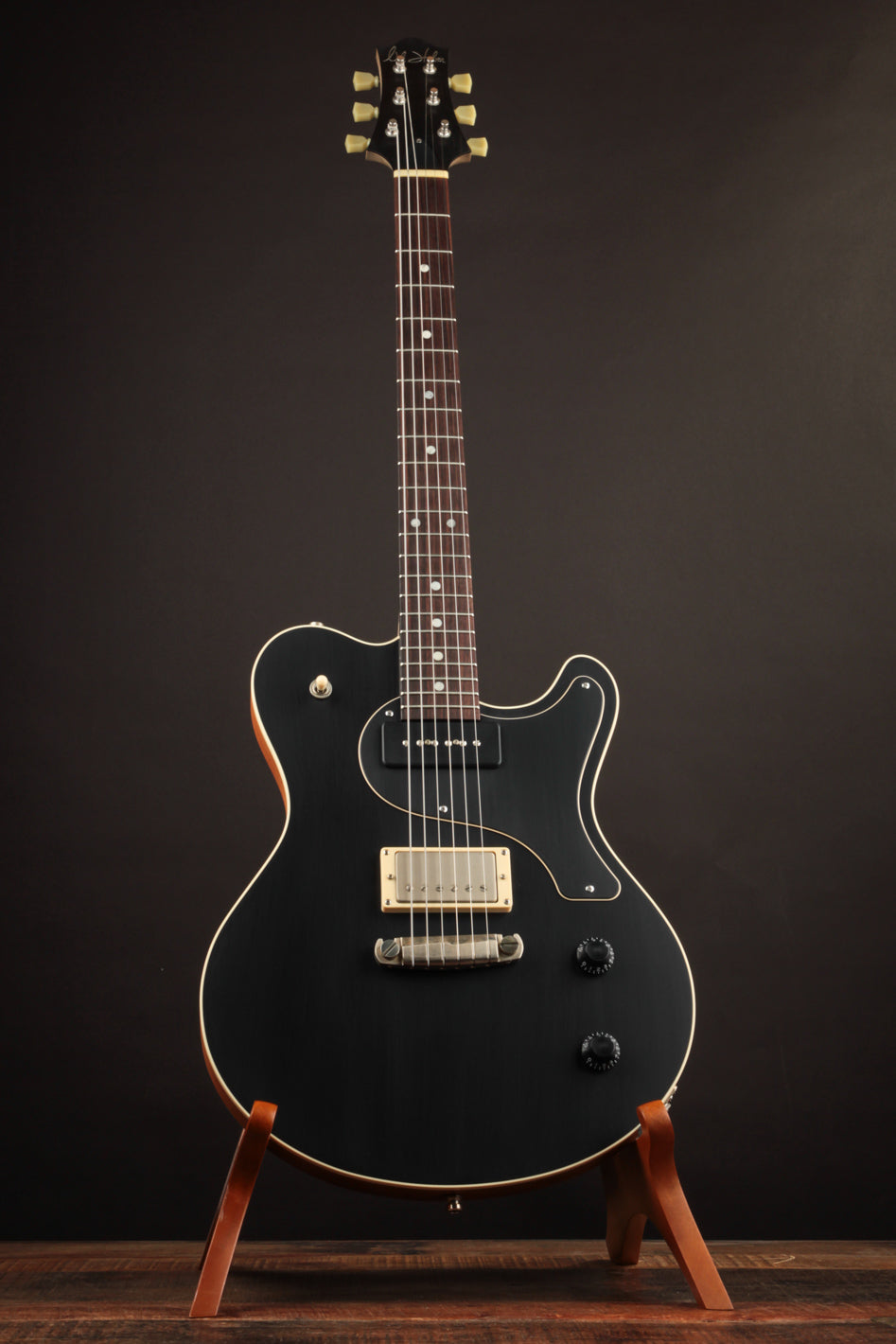 The Nik Huber Krautster III pairs Haussel pickups, wraptail simplicity, and a chunky satin flamed maple neck with Huber’s distinctive Dolphin body shape.