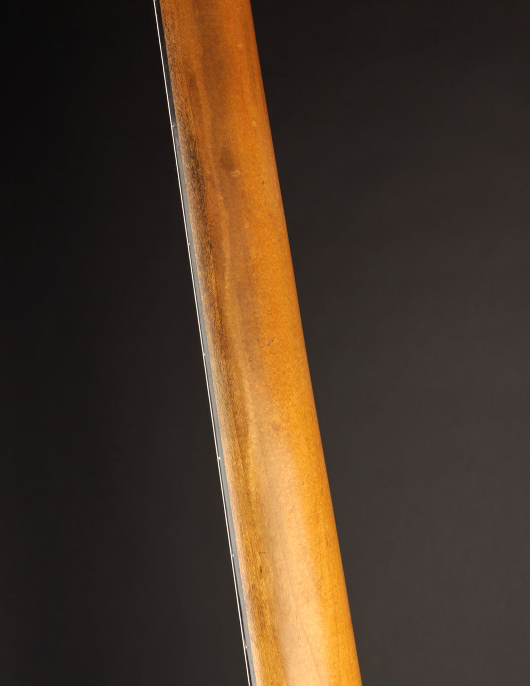 As is sometimes the case with vintage basses having been outfitted with very heavy strings over an extended period of time (like this one), the neck initially showed some acute relief. The consignor had the neck heat pressed to correct the forward bow, and proper functionality was quickly and easily restored without issue. The truss rod works great and the bass is now set up comfortably with nice action.