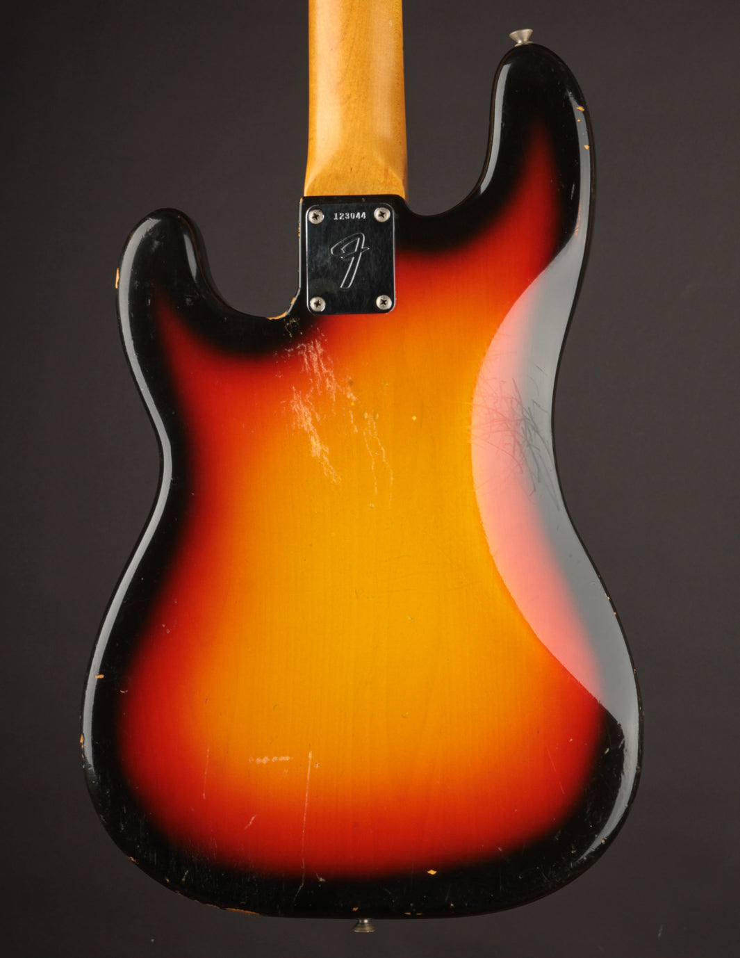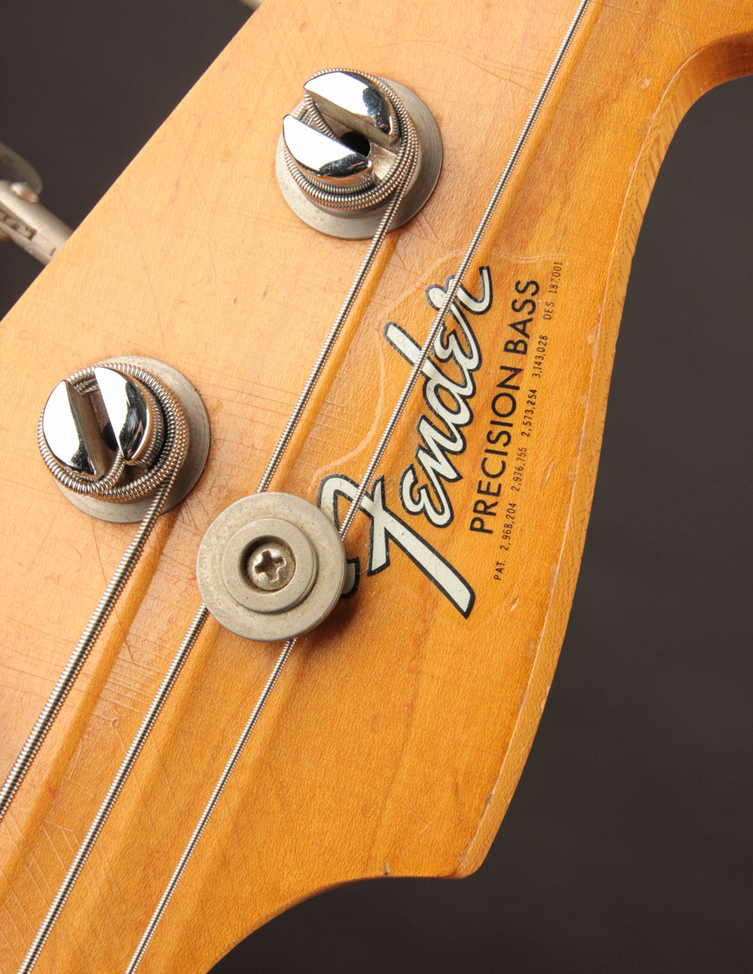 This early 1966 Fender Precision Bass spent the better part of 25 years with a working bassist in the area, and has been very well cared for in his time with it. With the exception of a once-added thumb rest on the bass side of the body just off the edge of the pickguard, this Precision is virtually untouched.