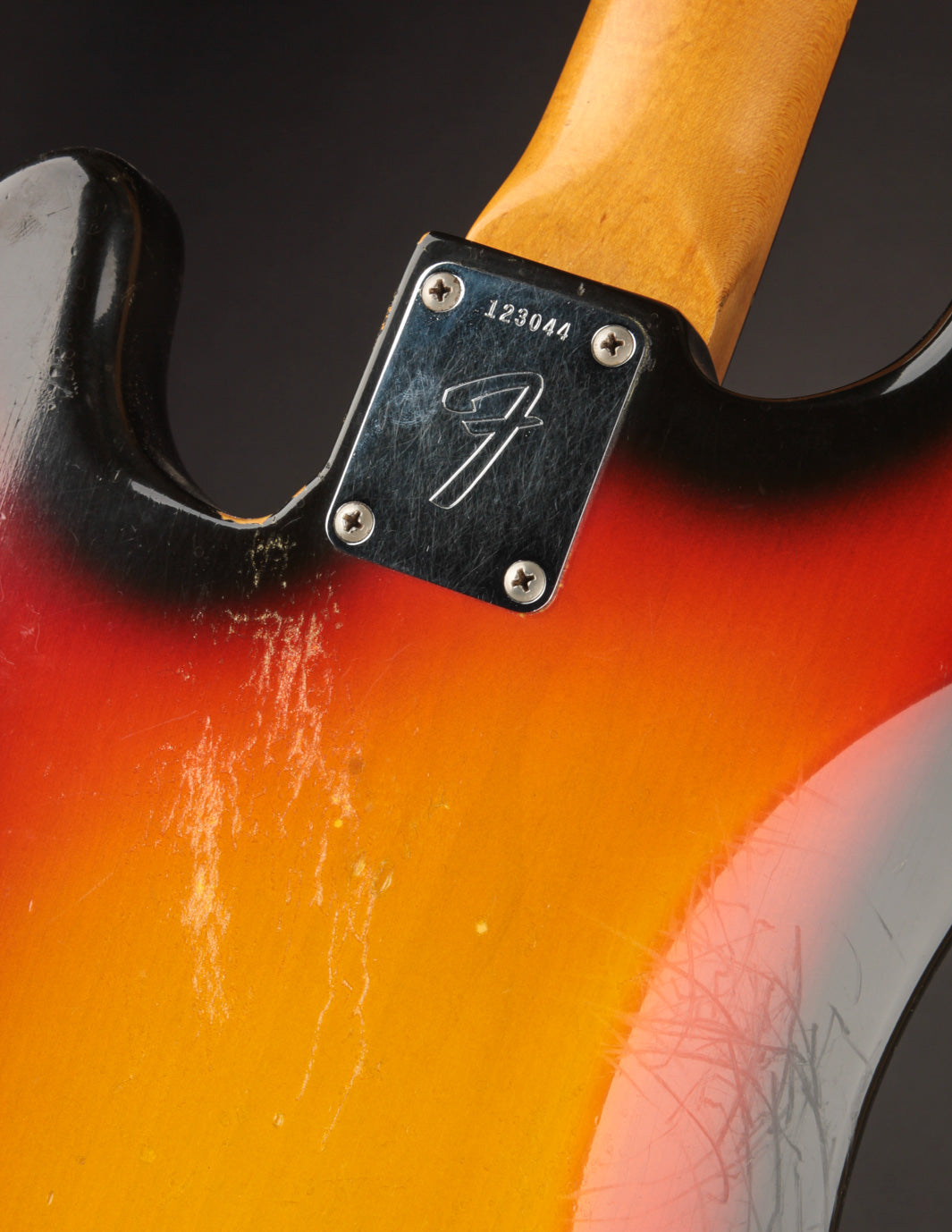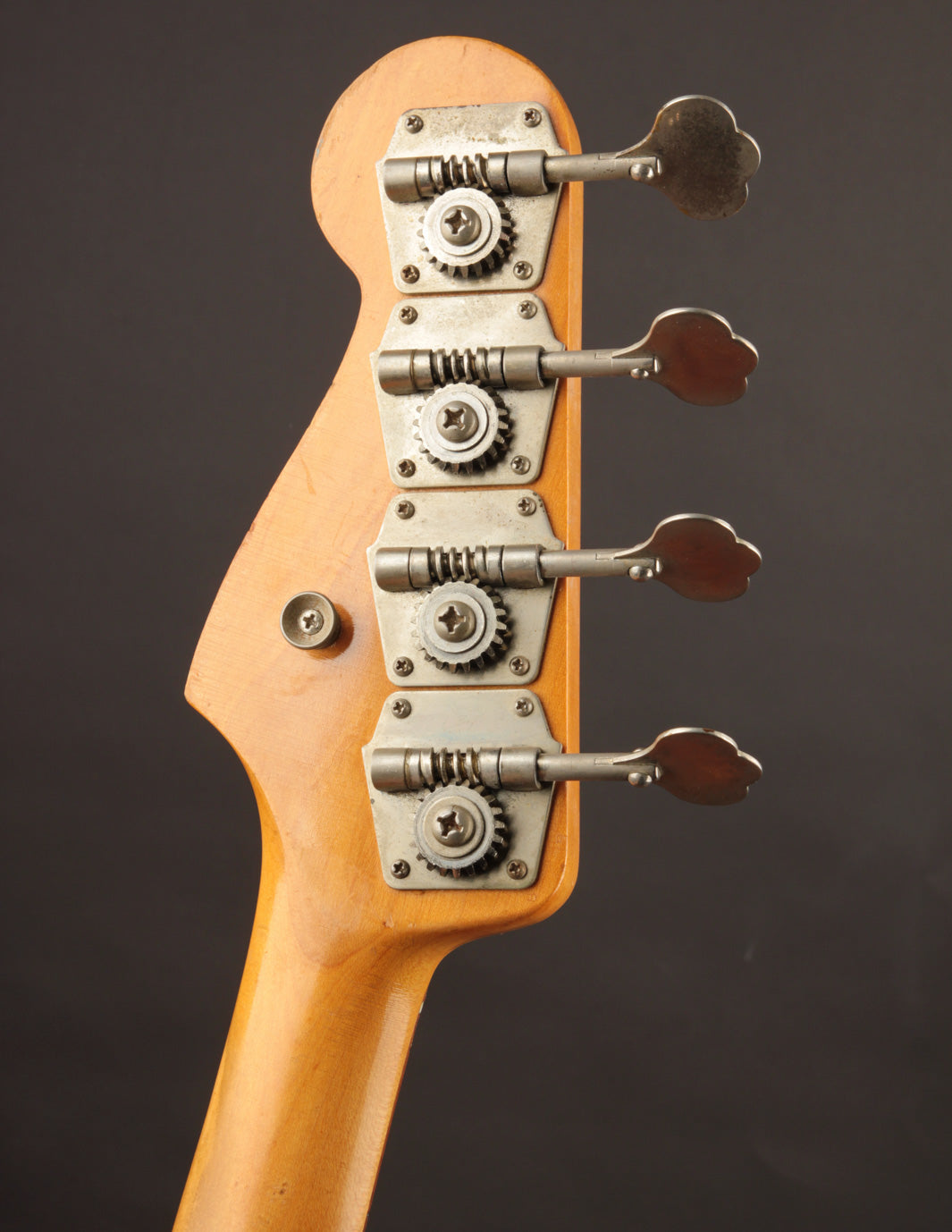 The neck shows a February 1966 ink stamp, and with the original CTS wiring harness showing a date code of the 7th week of 1965, indicates the likelihood that the bass went into production at the end of 1965. Another indicator of its production timeline is the use of the "pre CBS" Kluson tuners featured on Fender basses until 1965.