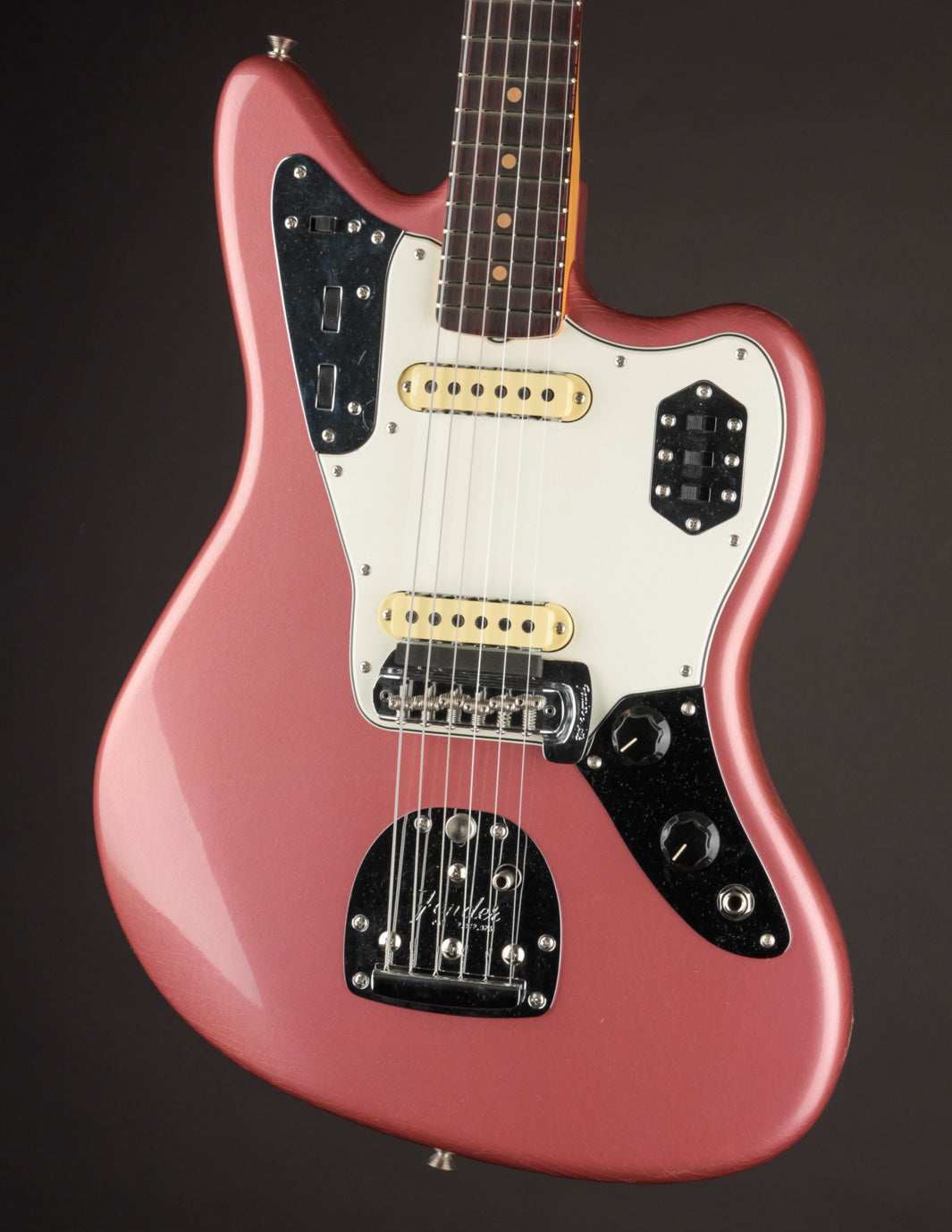 This ’63 Custom Shop Jaguar features a two-piece select alder body with a gorgeous Aged Burgundy Mist Metallic / Journeyman Relic finish for the refined and slightly aged look of a guitar that was well-taken-care-of through the years.