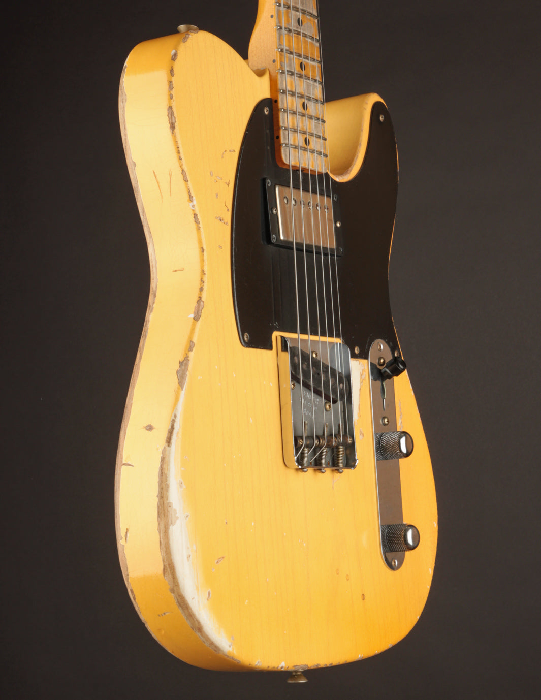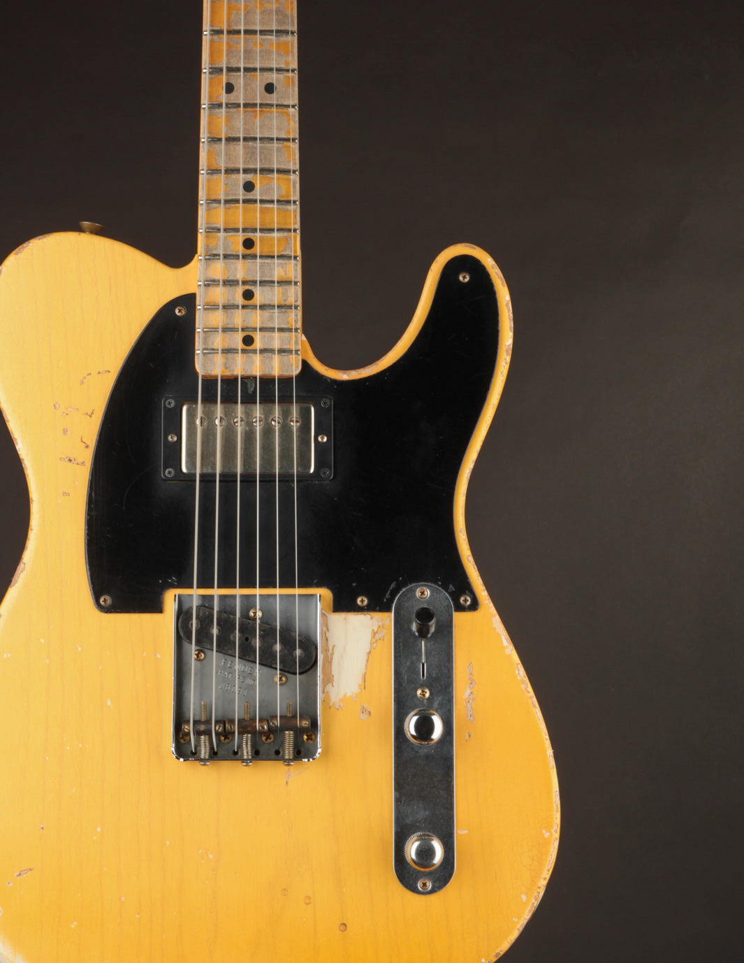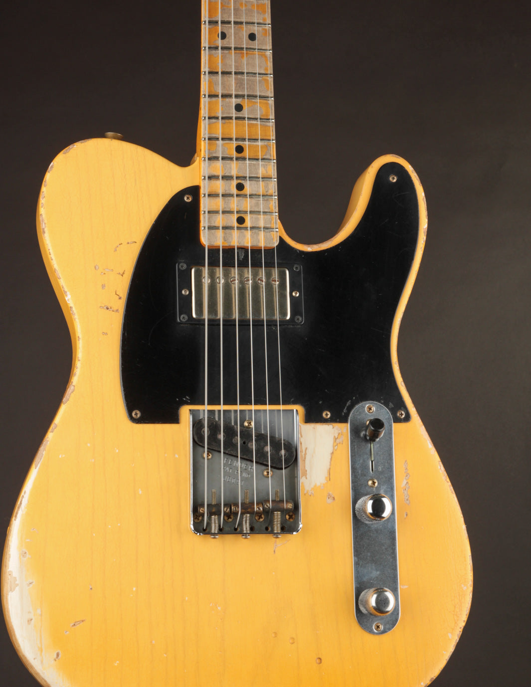 This guitar is loaded with a custom-voiced pickup set from Seymour Duncan: a ‘51 Nocaster-style single coil in the bridge and a humbucker in the neck, wired with JB Tele specs and a vintage wax paper cap for added flavor. Brass barrel saddles, a bone nut, and vintage-style tuners round out the hardware.