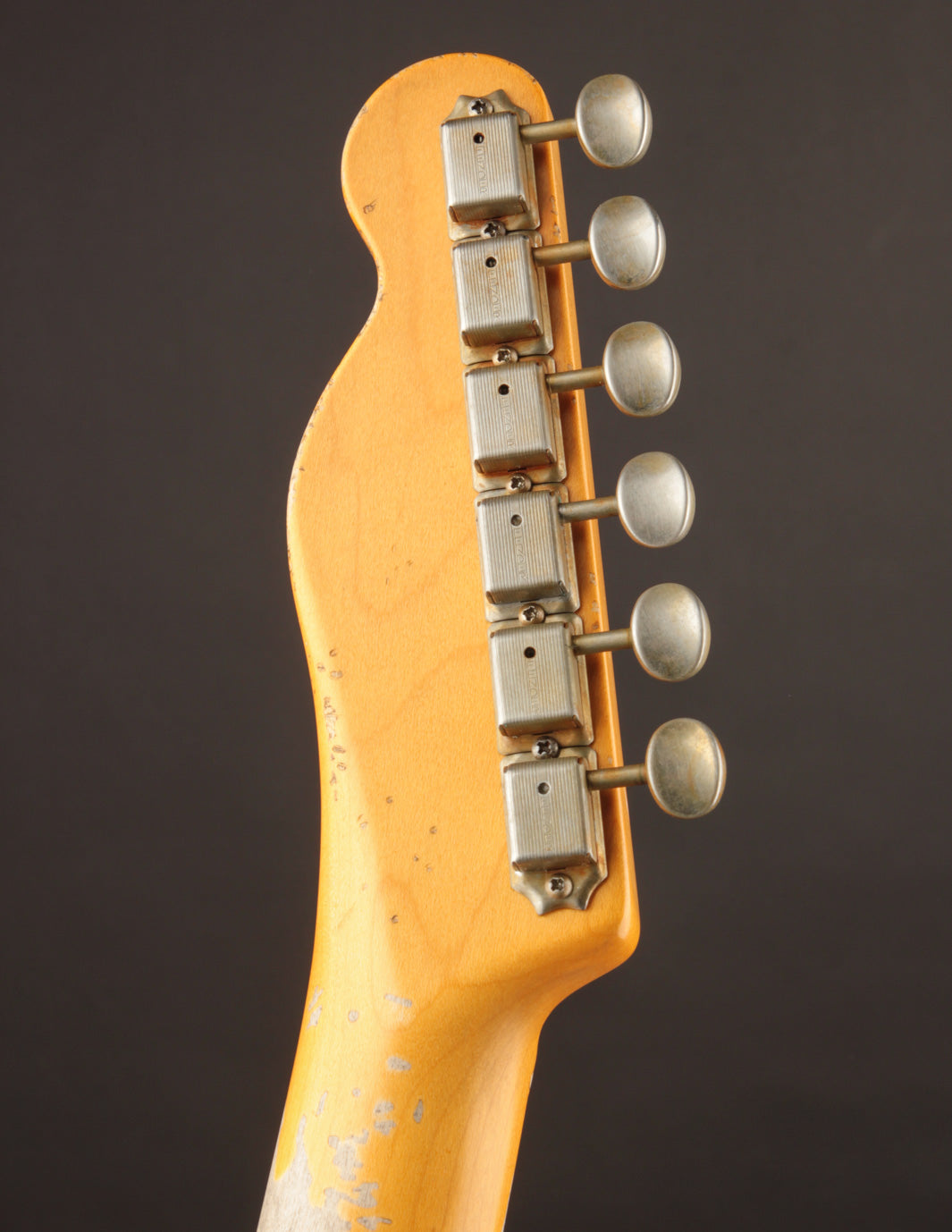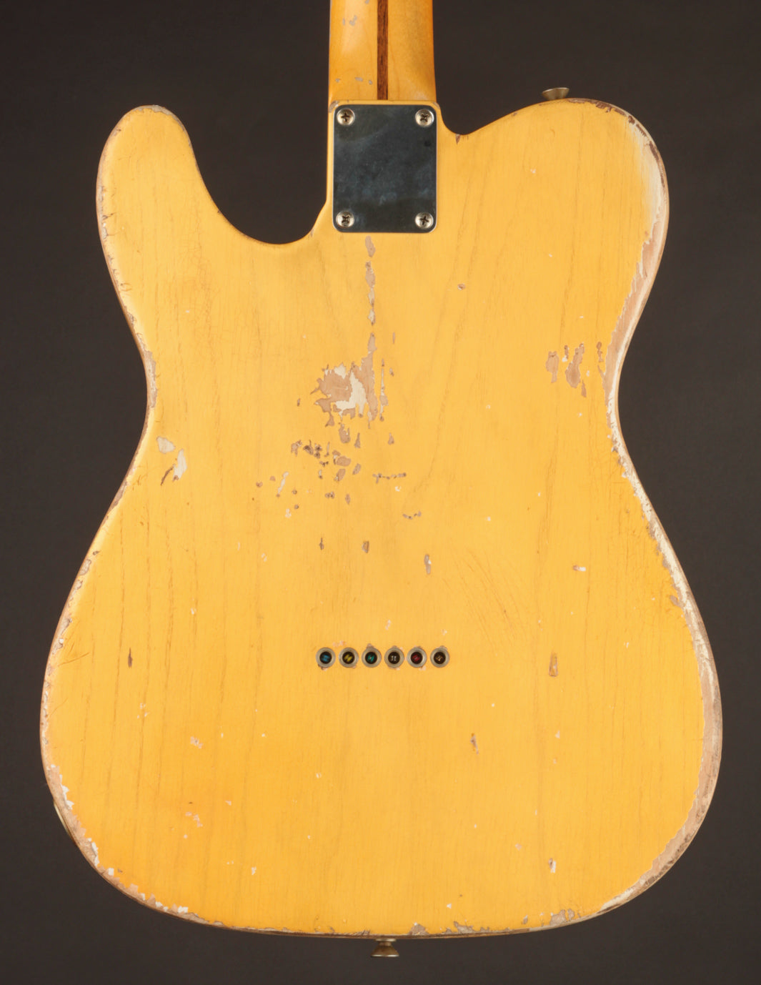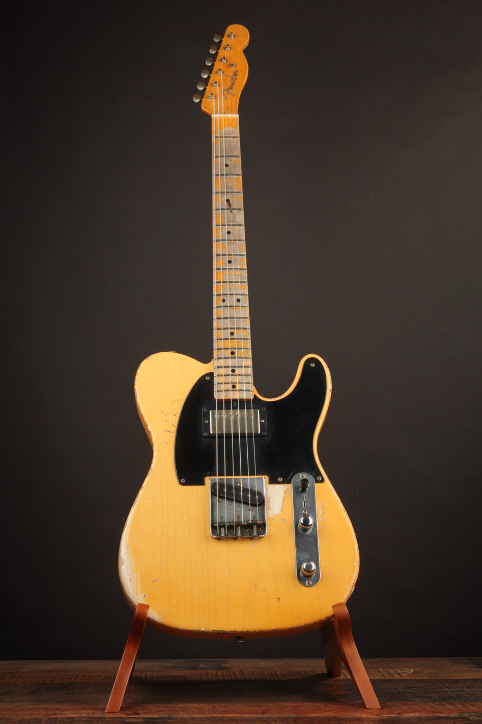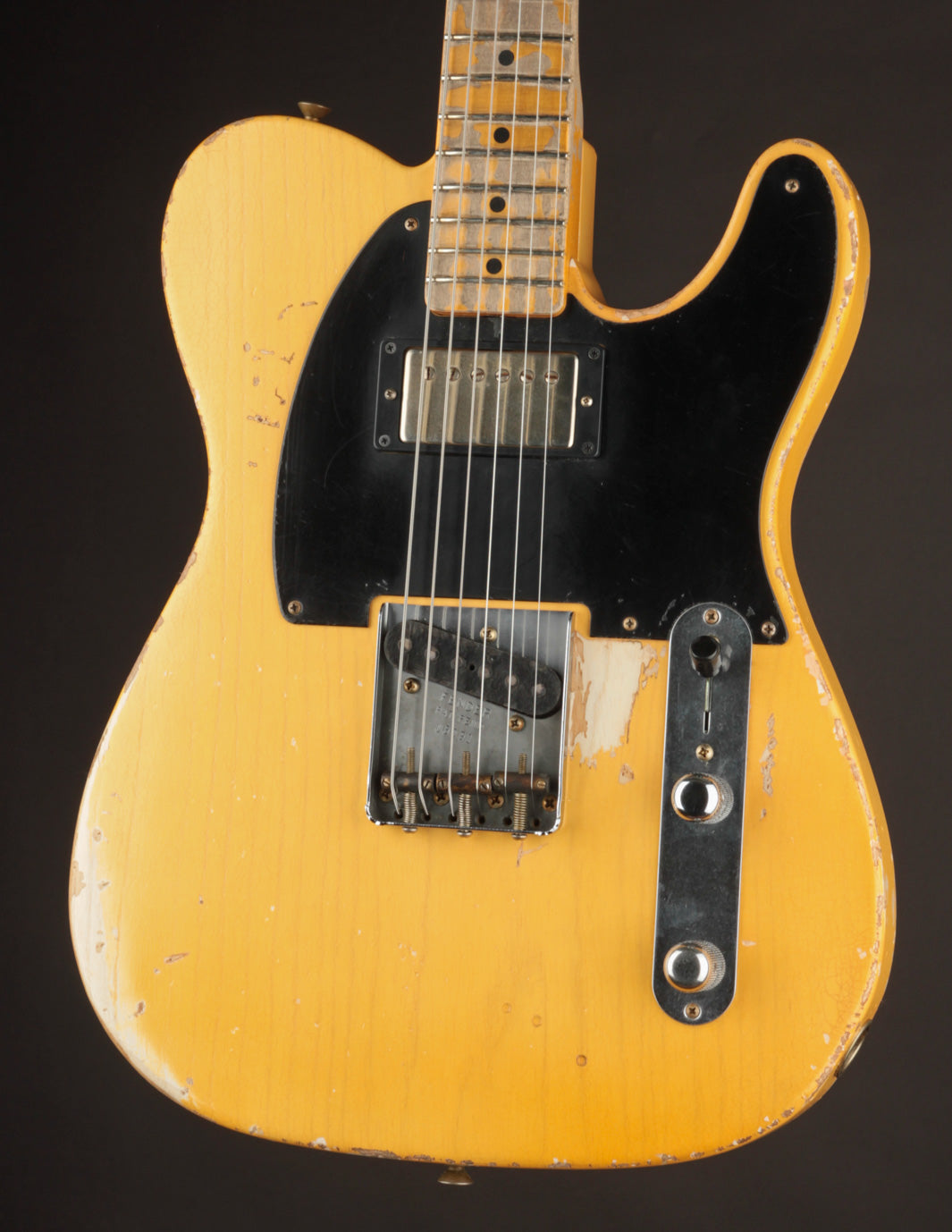 This guitar is loaded with a custom-voiced pickup set from Seymour Duncan: a ‘51 Nocaster-style single coil in the bridge and a humbucker in the neck, wired with JB Tele specs and a vintage wax paper cap for added flavor. Brass barrel saddles, a bone nut, and vintage-style tuners round out the hardware.