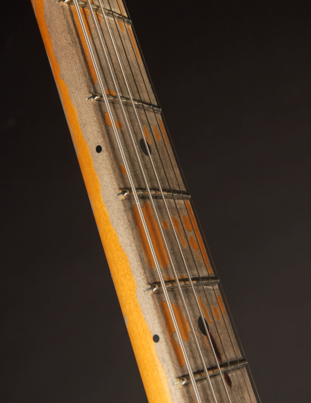 Each Bludgeon Nocaster was handcrafted by Fessler himself, with only 1–2 builds completed per month. In other words: these don’t just look rare, they are. Featuring a 2-piece select ash body with a heavy relic lacquer finish, and a flat-sawn, one-piece maple neck carved to Joe’s favored “Bludgeon” Nocaster U profile, this guitar blends iconic design with true collector-grade detail.