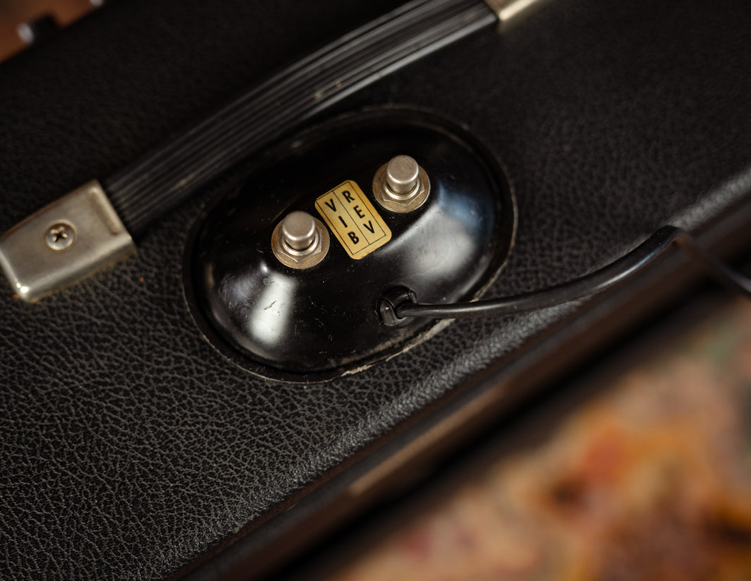 As we always do with vintage amp acquisitions, we sent this beauty over to Stan Day for a proper servicing, which included a recap, replacing tubes, and cleaning of the tube sockets, pots, etc. It's running great and sounding glorious, with a truly excellent spring reverb and nice punchy voice that only a pair of 10" speakers seem to illicit in this circuit.