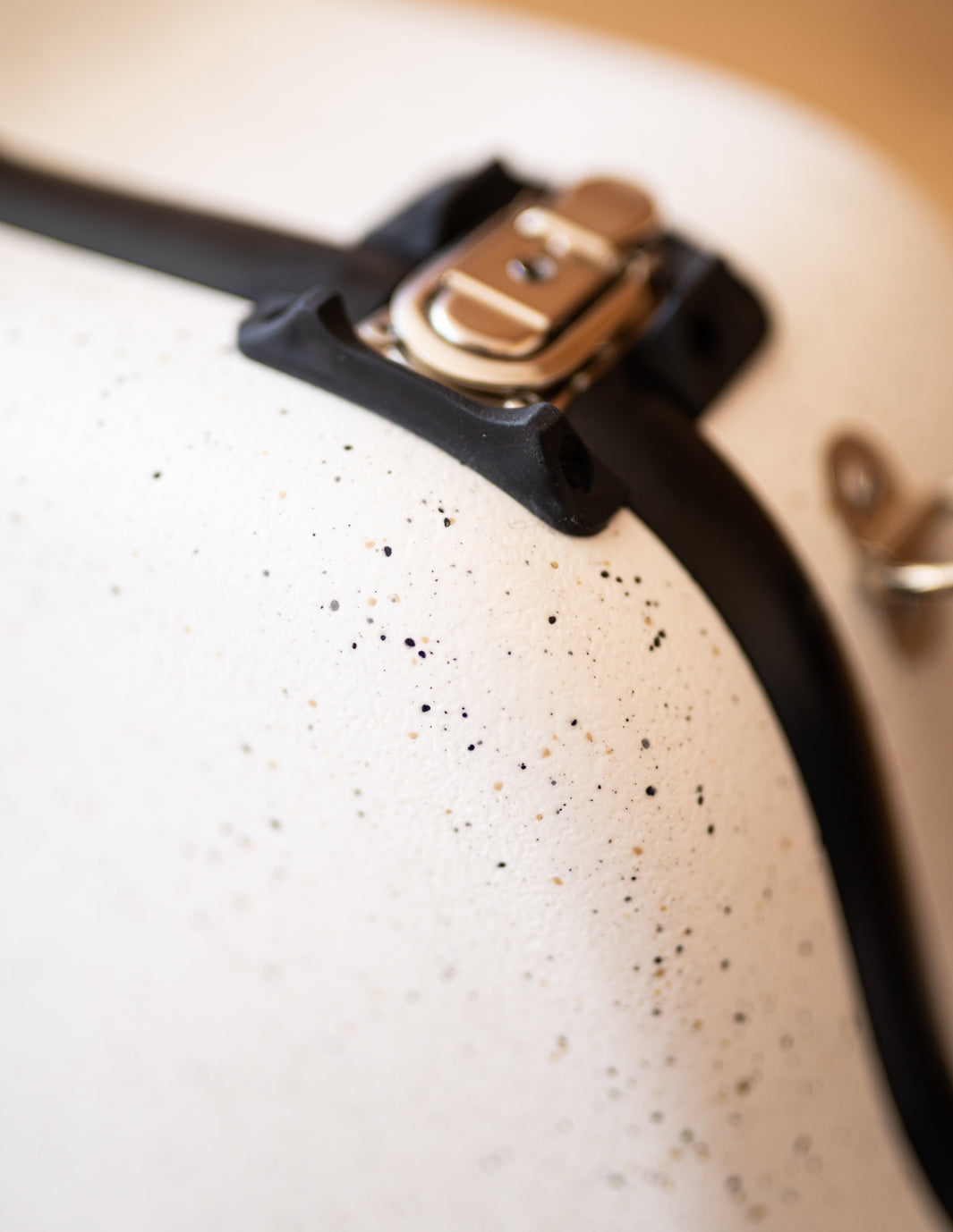 USA-made Calton case for 14-fret dreadnought in the popular, upgraded Granite White finish. This speckled finish looks great as new, but also offers a more forgiving look when worn, as the granite look helps hide scuffs and scratches.