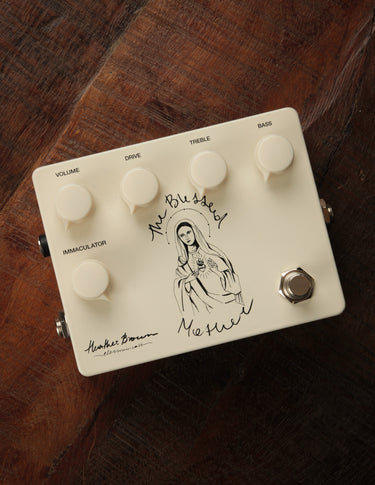 "The Blessed Mother's supernatural combination of germanium and silicon diodes generates a uniquely raw, yet velvety tone. She features an adjustable transparency function: The Immaculator. This lets you preserve or purify the sound's original grit to your liking.