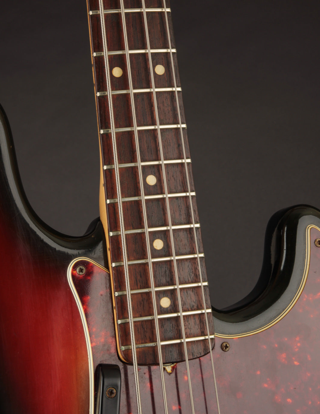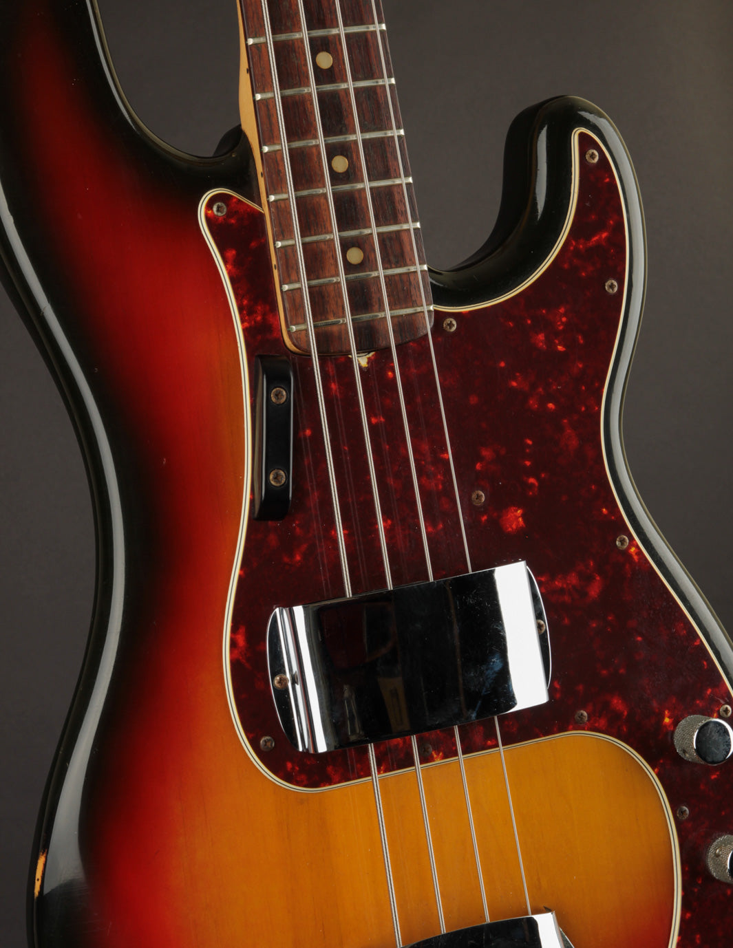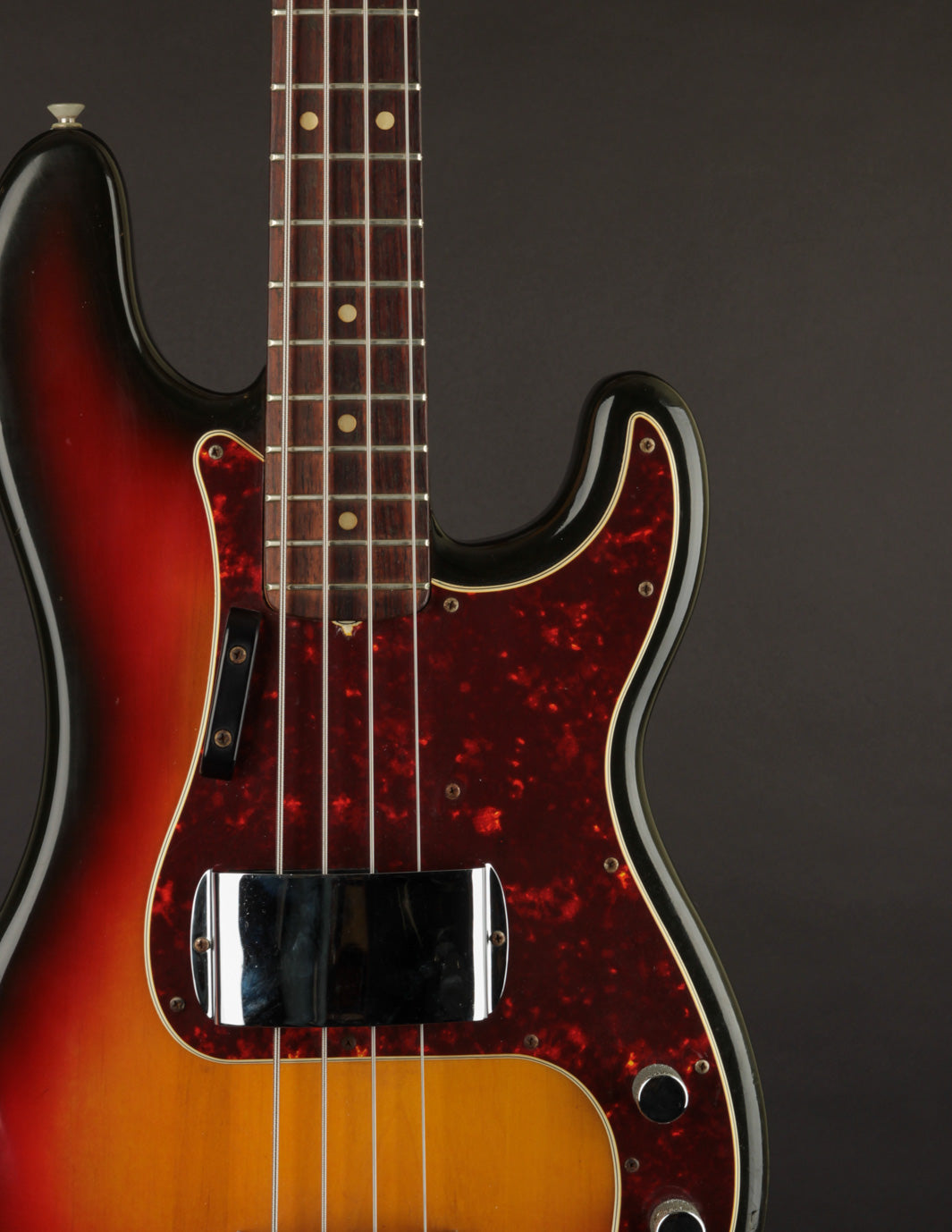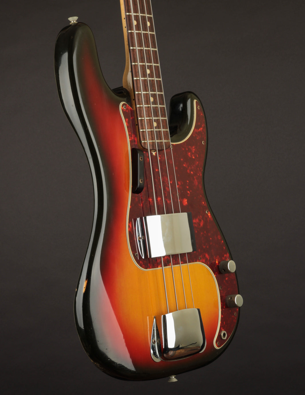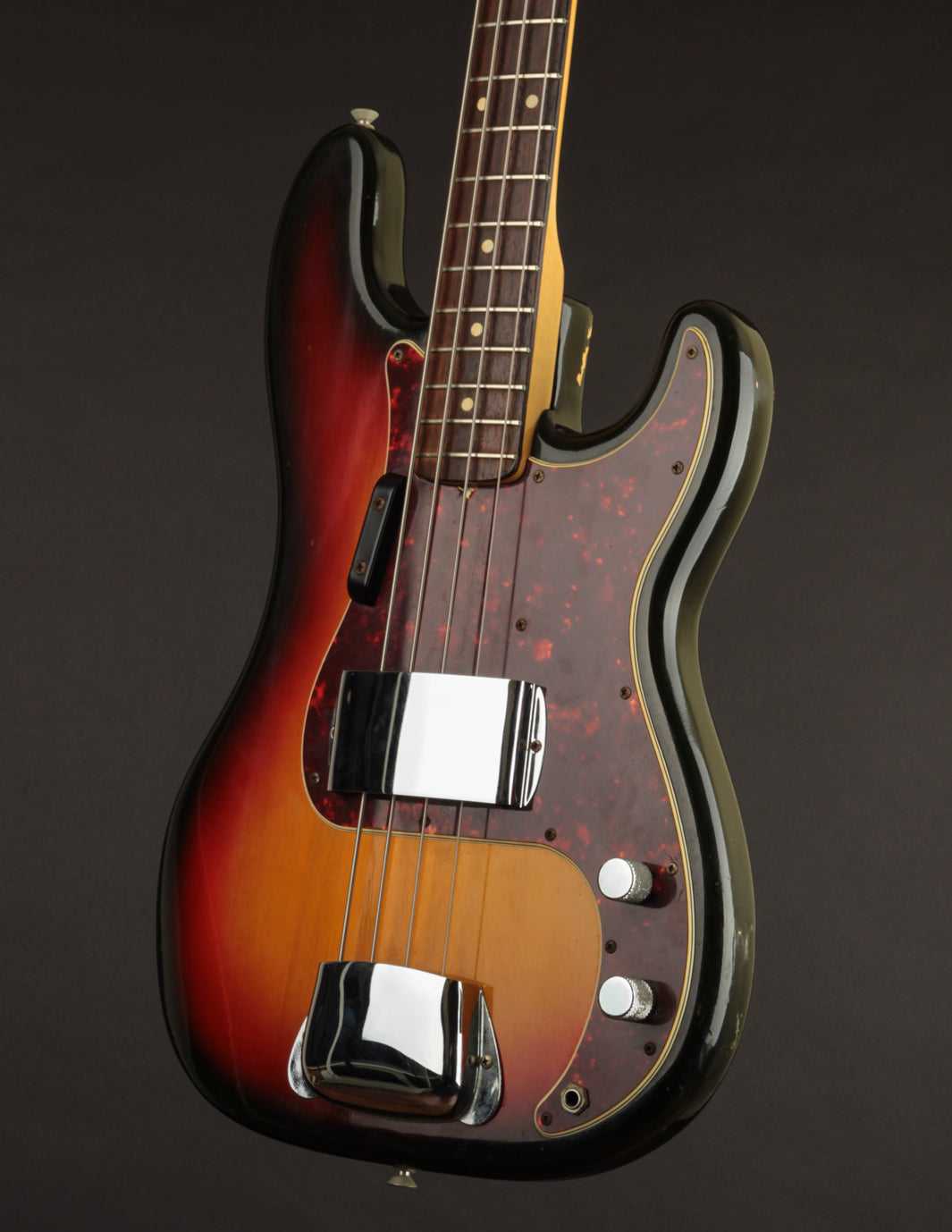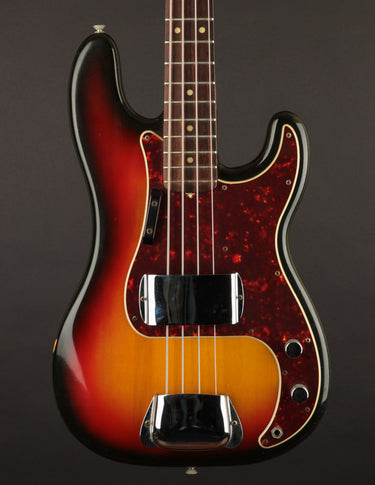 Condition: Very Good+/Excellent-. The only thing keeping this P bass from being a true closet classic is wear on the back of the body and a few dings on the back of the neck. Otherwise, it's really as clean as it looks. The Sunburst is gorgeous, the pickguard is clean and crack-free, and all of the original hardware is present. Frets are very clean with plenty of meat left. Setup and playability is great (strung with roundwound strings). The original volume pot was replaced with a modern 250k equivalent, but all other electronics are original.