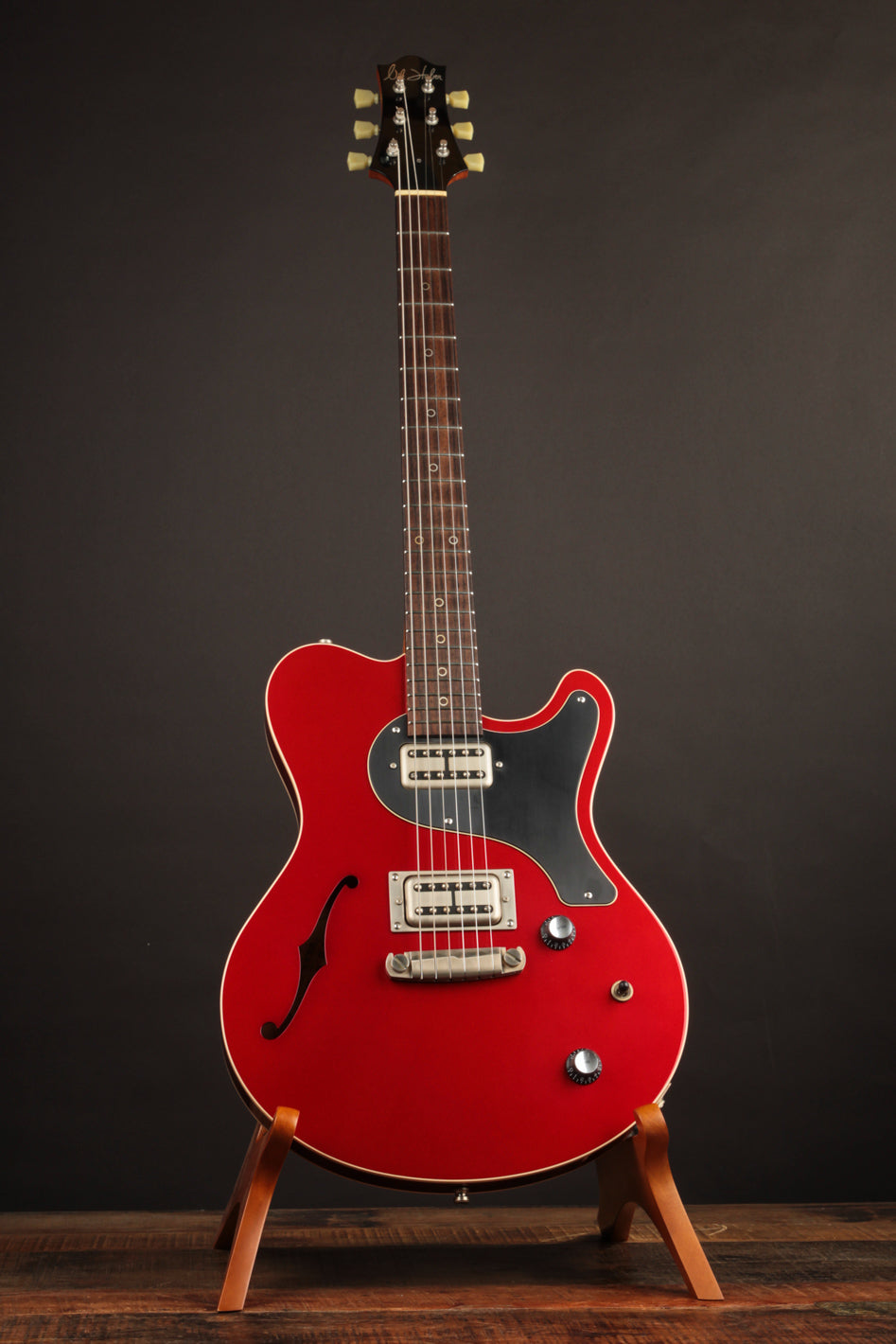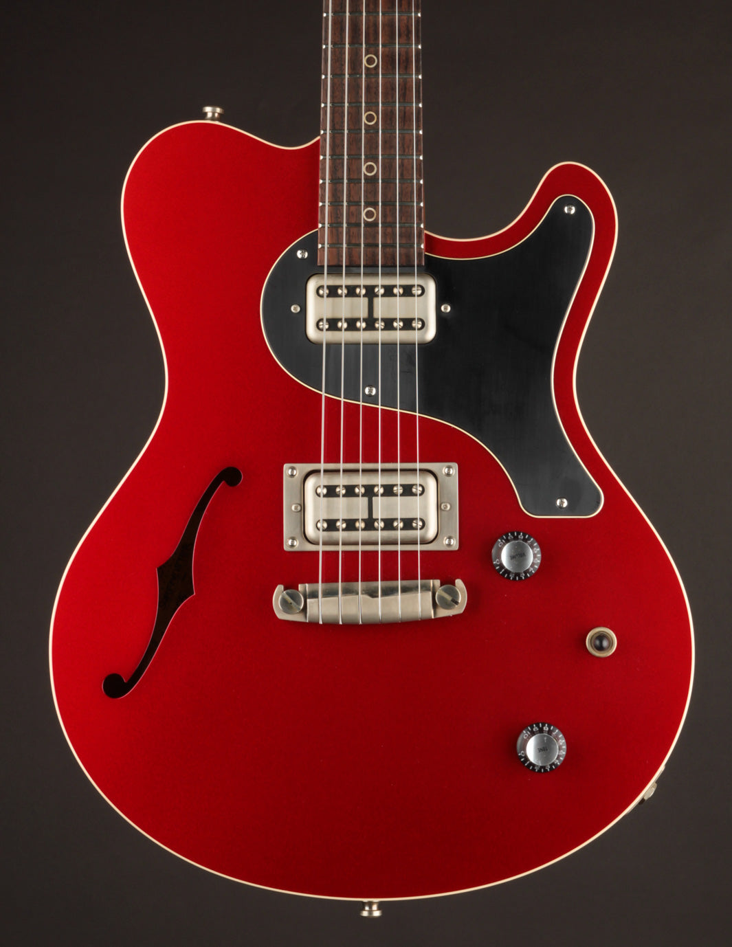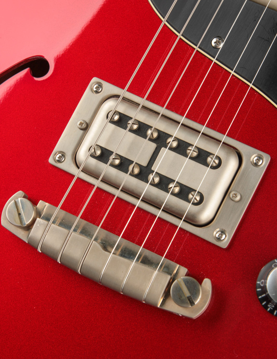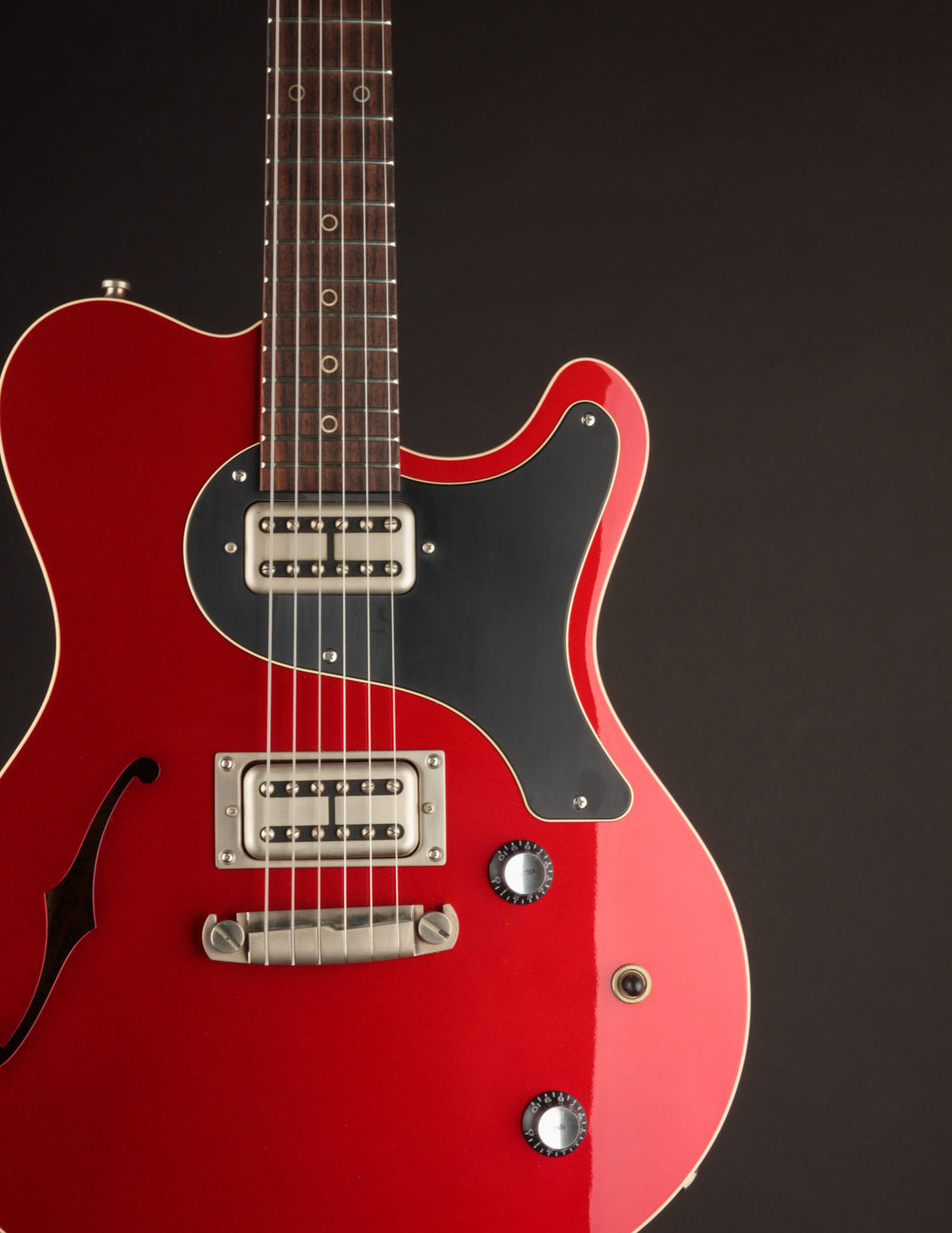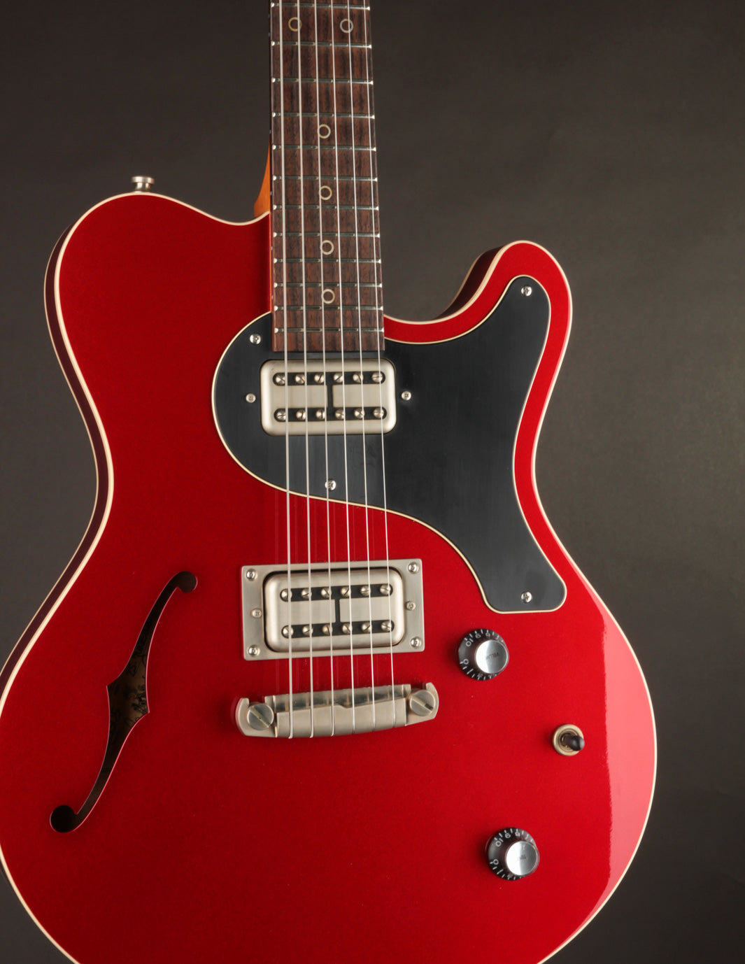 It’s also remarkably resonant and loud acoustically, which tells you a lot before you even plug in. The Haussel Tronebuckers bring the goods, with airy upper mids, just the right amount of chime, and a sweet balance between punch and warmth. Think ES-335 meets Gretsch, with a little extra clarity and attitude. The push/pull tone control adds pickup-splitting for even more tonal range.