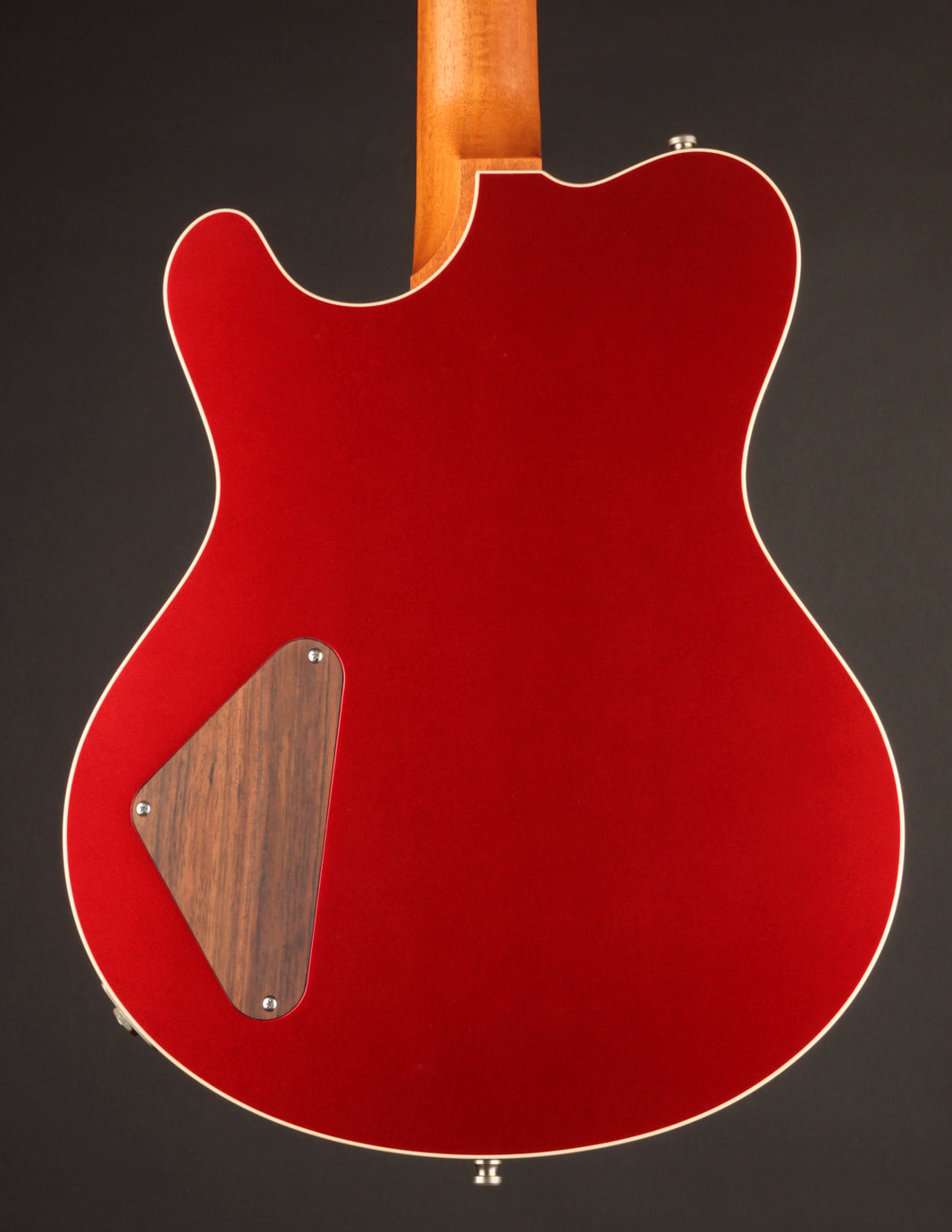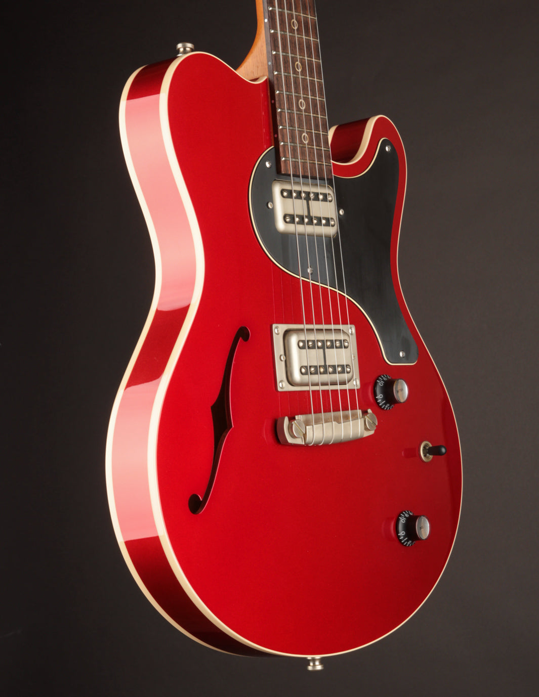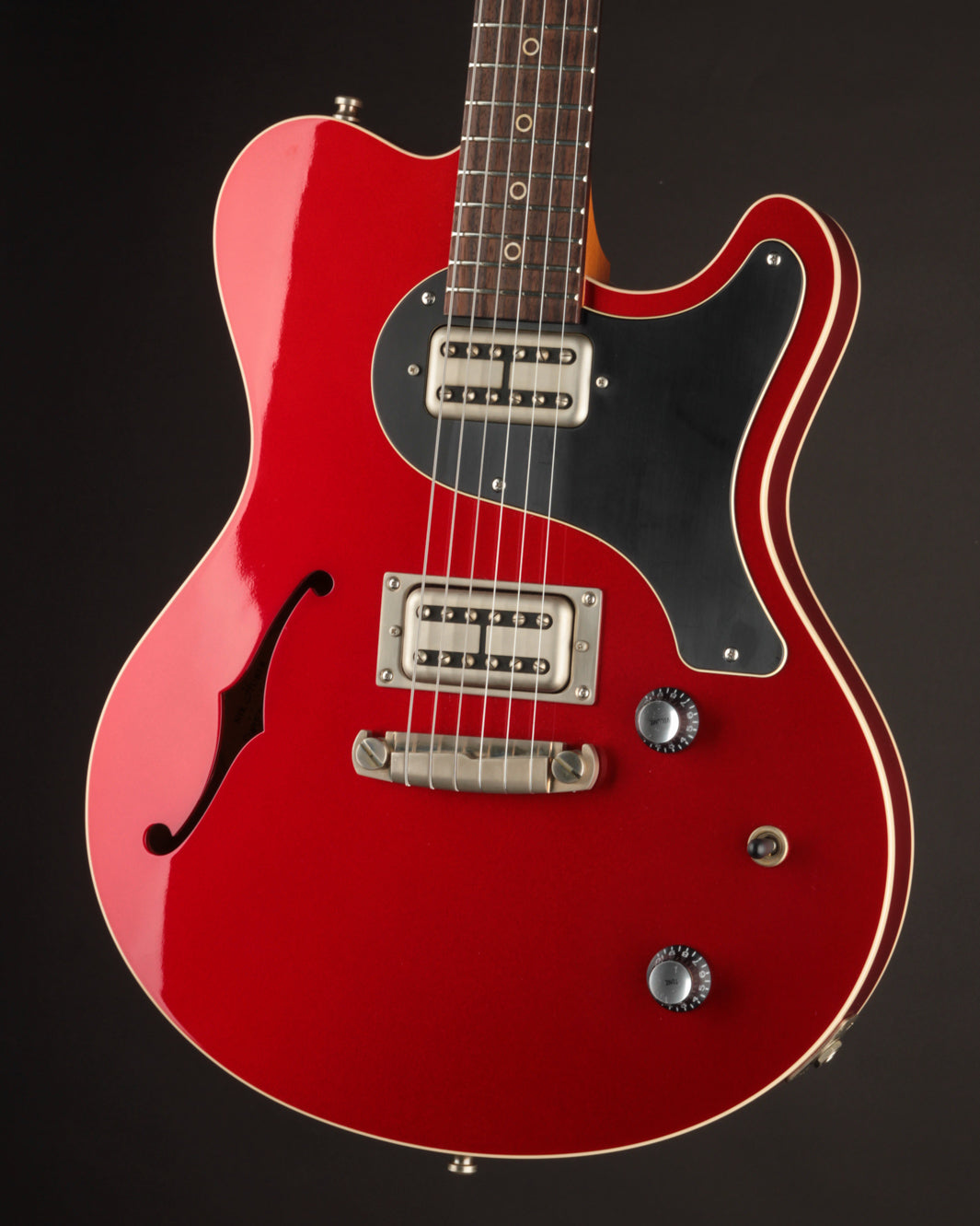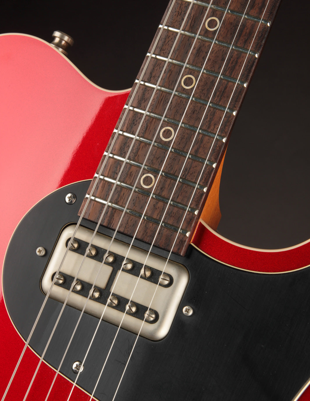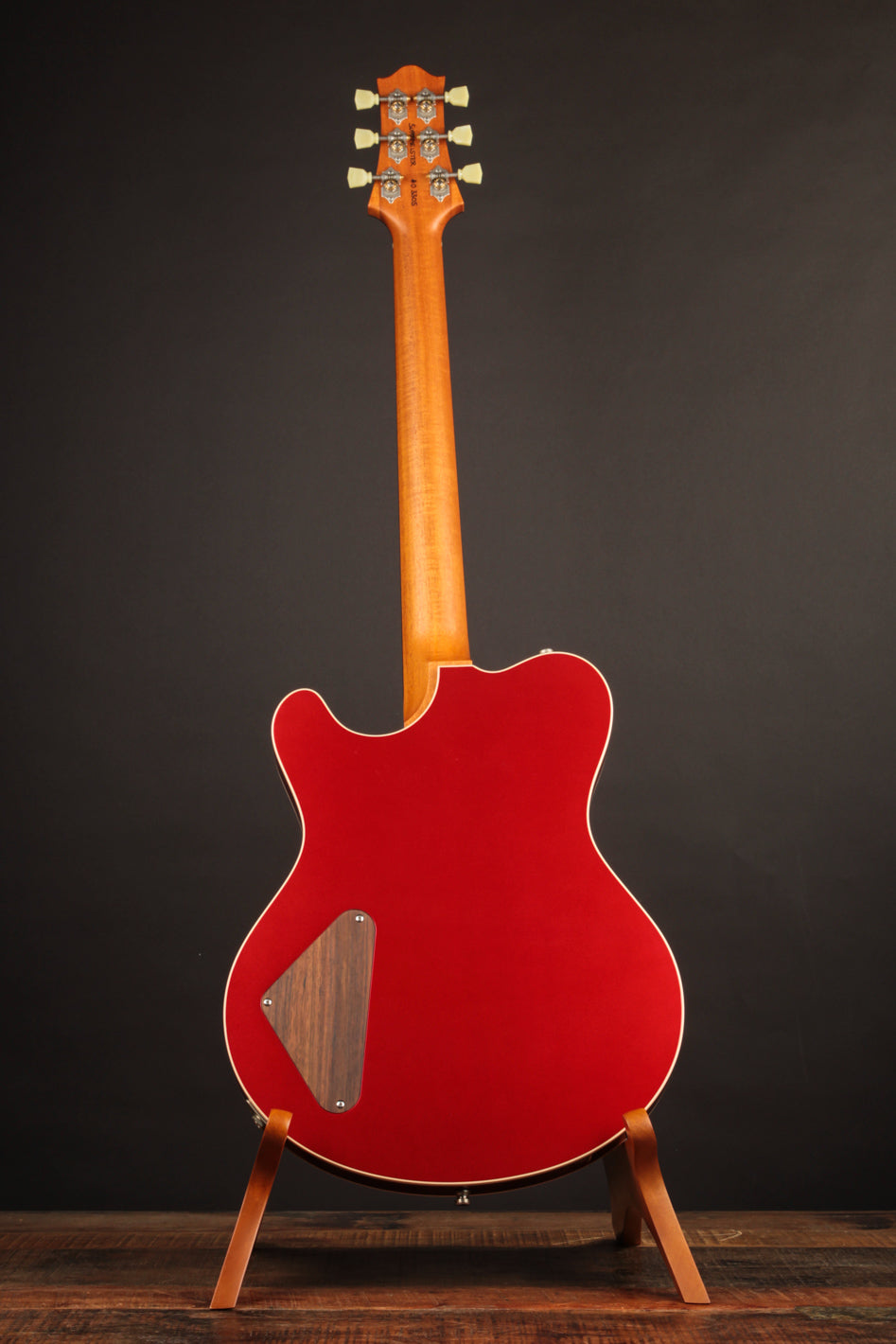 It’s also remarkably resonant and loud acoustically, which tells you a lot before you even plug in. The Haussel Tronebuckers bring the goods, with airy upper mids, just the right amount of chime, and a sweet balance between punch and warmth. Think ES-335 meets Gretsch, with a little extra clarity and attitude. The push/pull tone control adds pickup-splitting for even more tonal range.