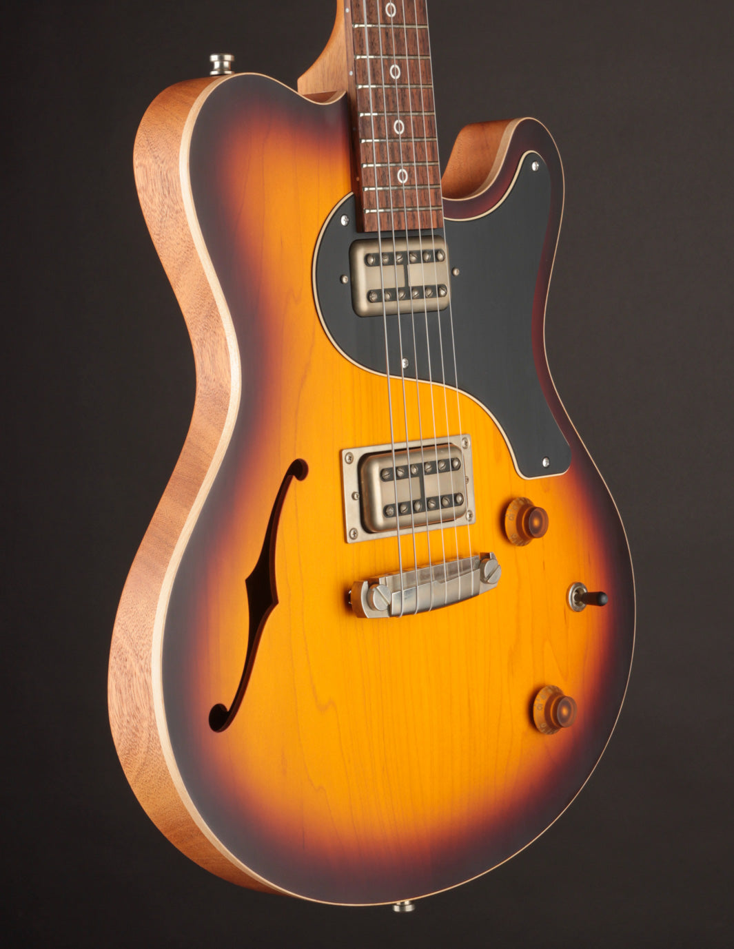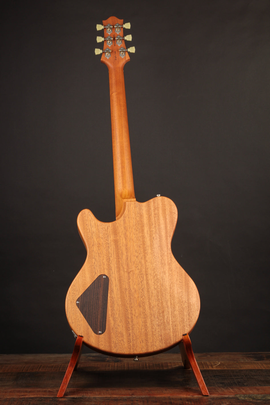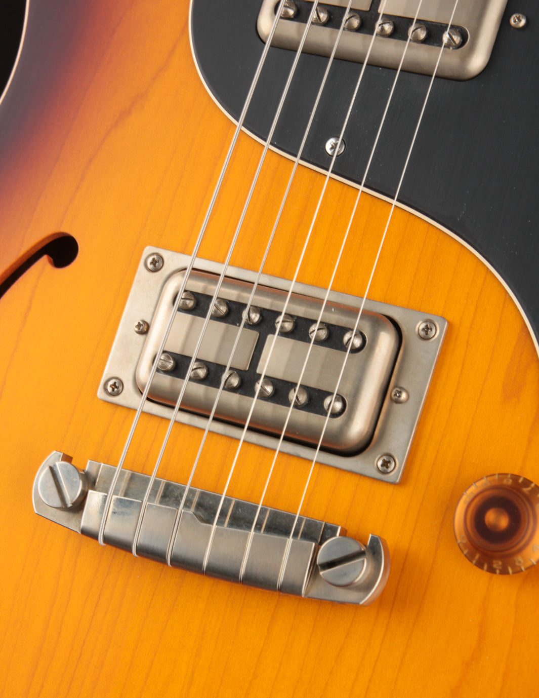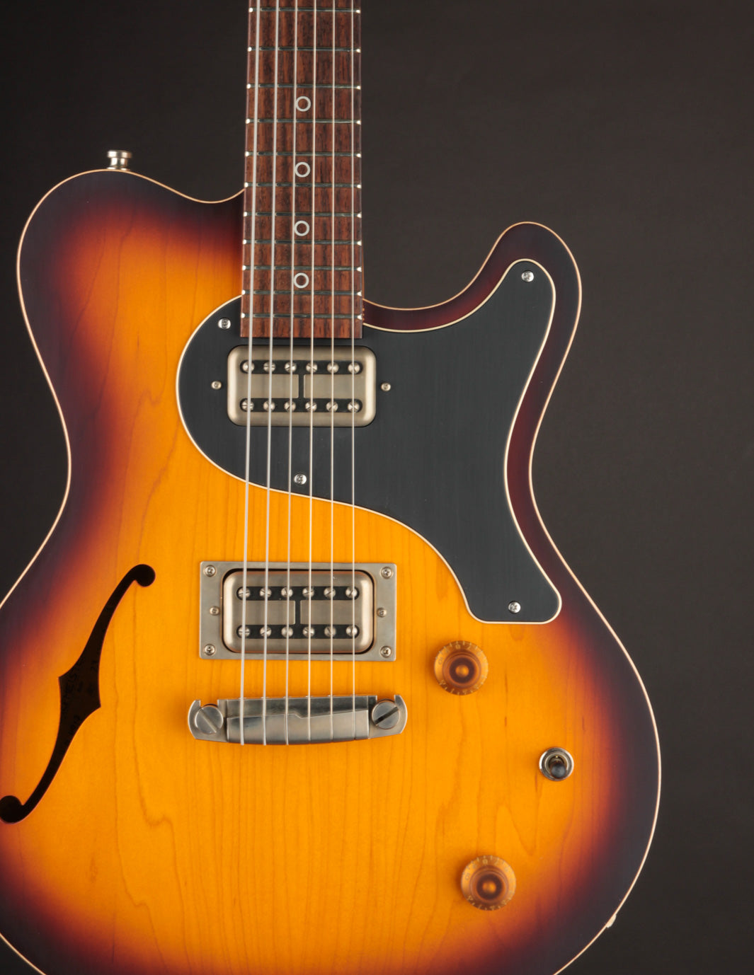 Acoustically, the Surfmeister is exceptionally resonant and loud, while the Haussel Tronebuckers deliver a perfect blend of punch, chime, and warmth. The tone is reminiscent of an ES-335 meets Gretsch, offering articulate upper mids and a versatile range of sounds. Add the push/pull tone control to split the pickups, and the tonal possibilities expand even further. Awesome stuff!