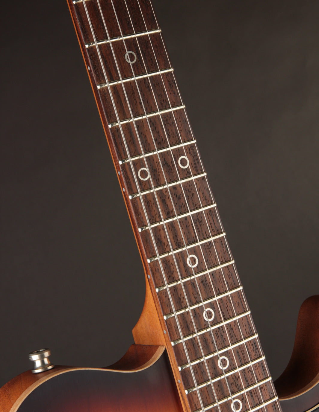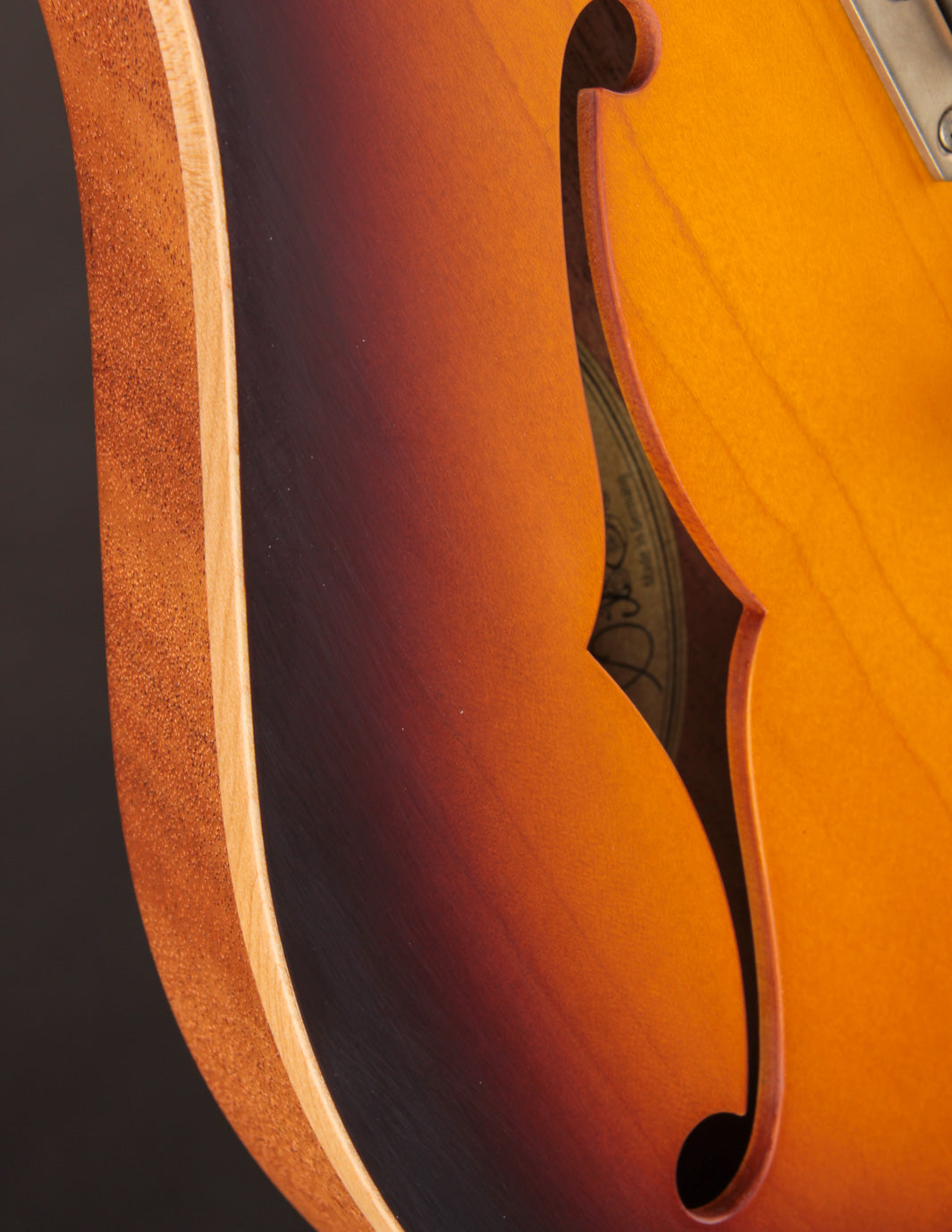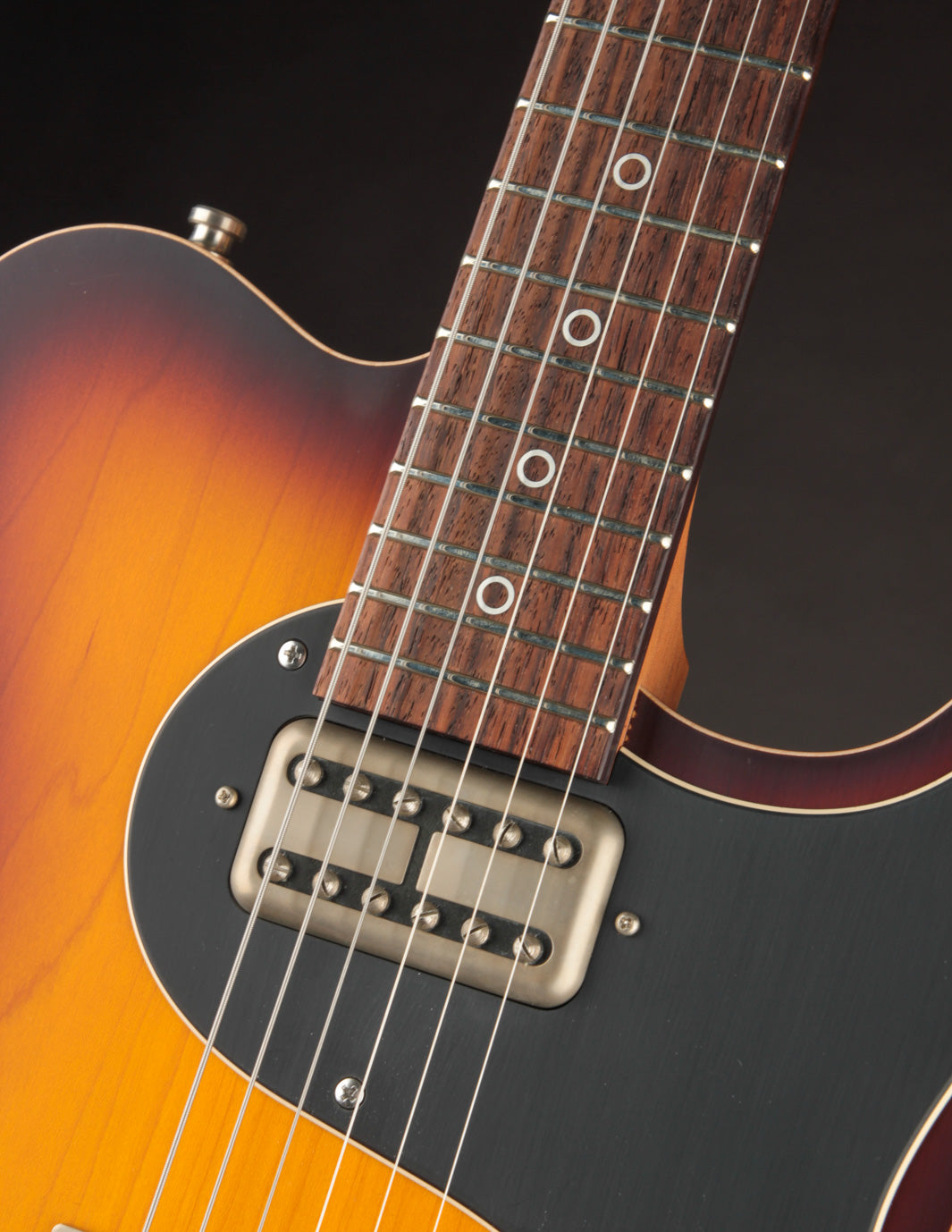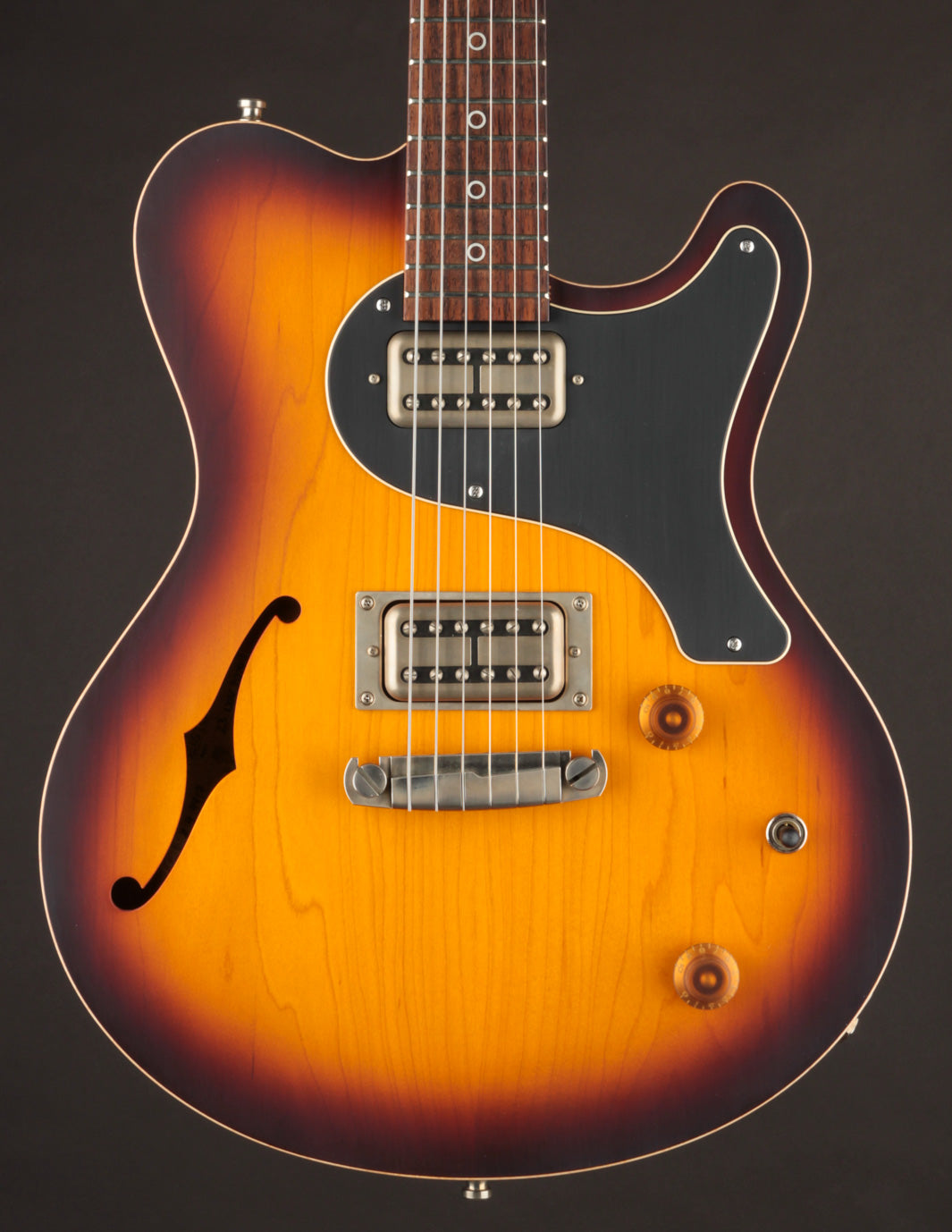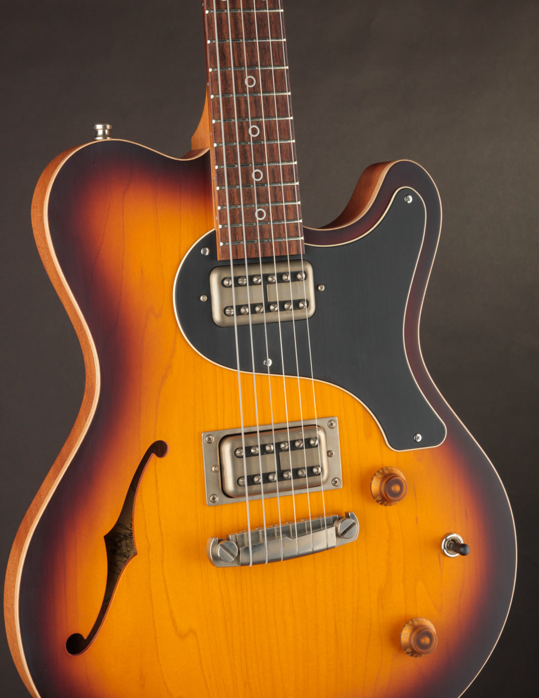 Acoustically, the Surfmeister is exceptionally resonant and loud, while the Haussel Tronebuckers deliver a perfect blend of punch, chime, and warmth. The tone is reminiscent of an ES-335 meets Gretsch, offering articulate upper mids and a versatile range of sounds. Add the push/pull tone control to split the pickups, and the tonal possibilities expand even further. Awesome stuff!