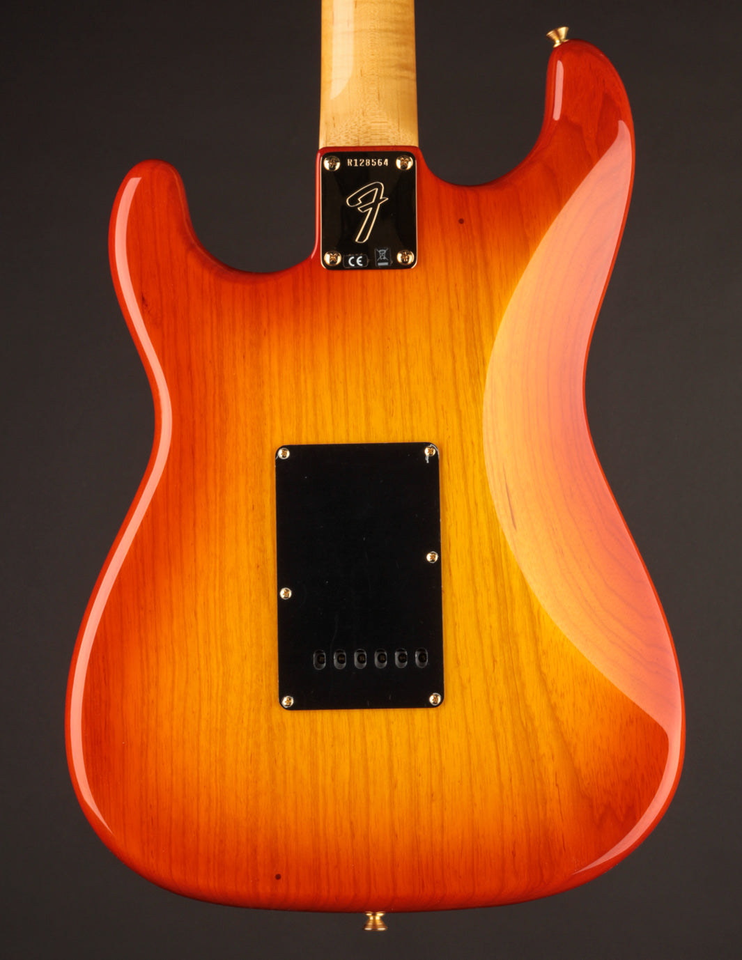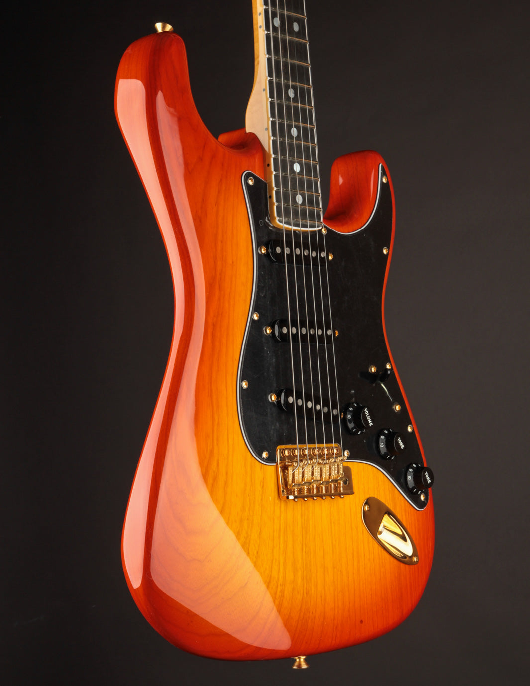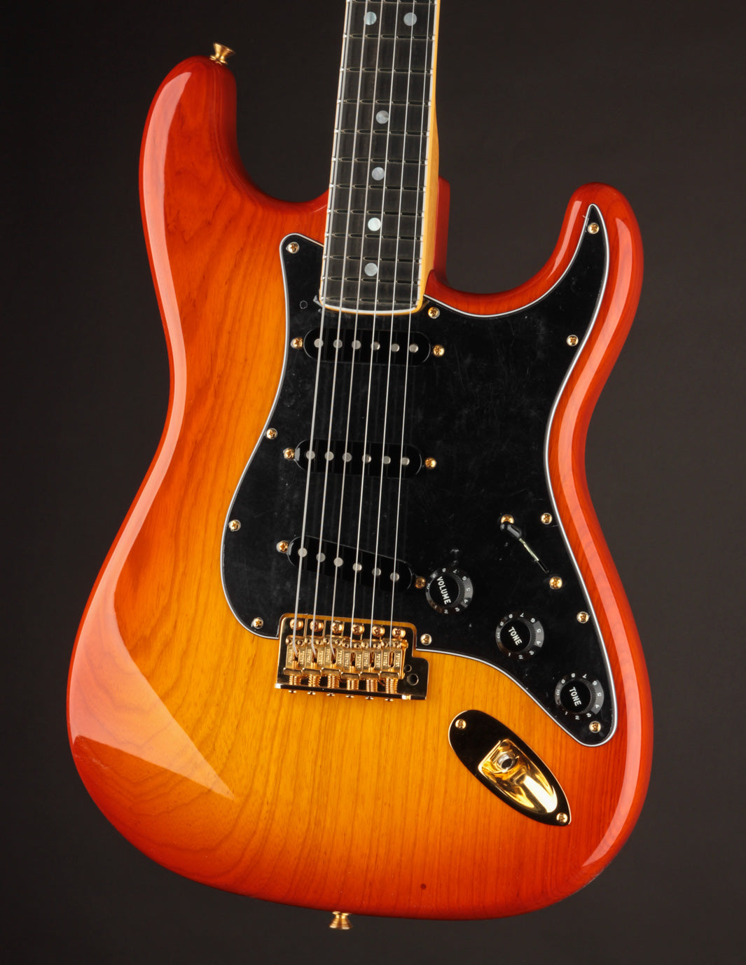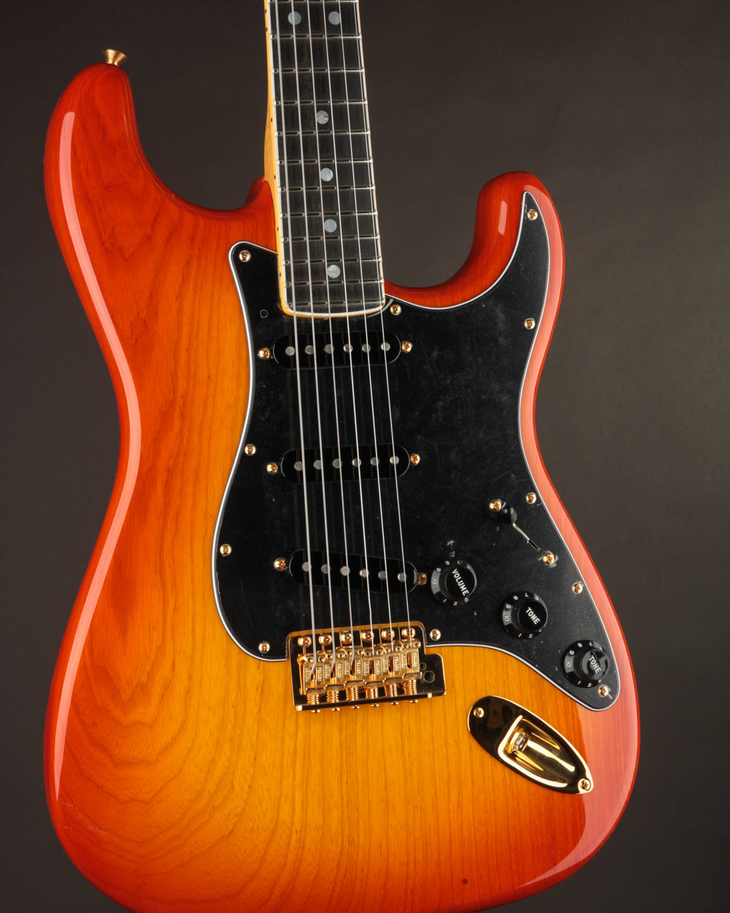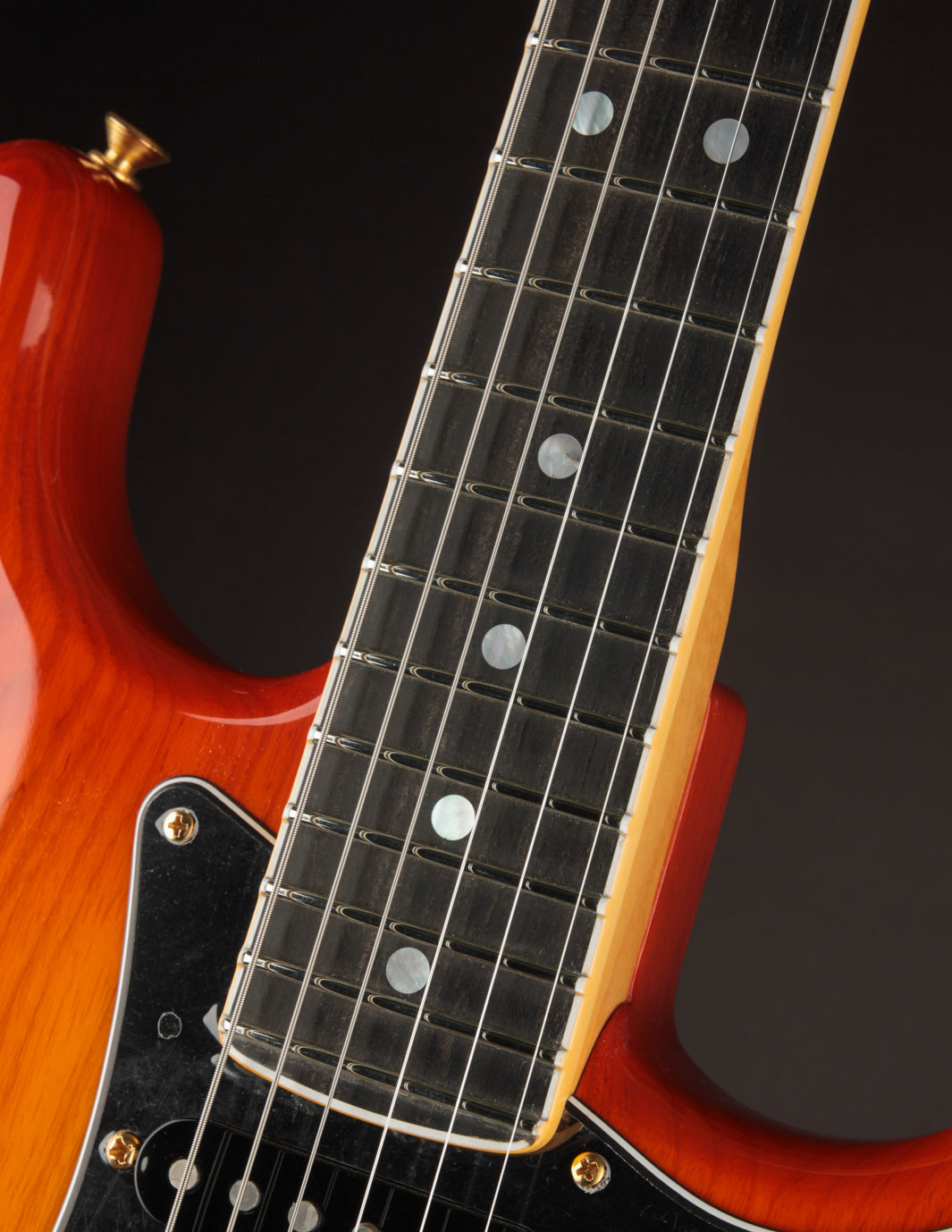 This is a Strat for players who appreciate contemporary refinement. A 12" radius, ebony fingerboard, and 22 medium jumbo frets make for a fast, effortless ride, while the guitar itself has a stout, solid feel that translates to snappy note attack and impressive sustain. The lightweight, resonant 2-piece ash body (with offset seam) and quartersawn 2A flame maple neck are both finished in nitro for a classic feel and tone you expect from the Custom Shop.