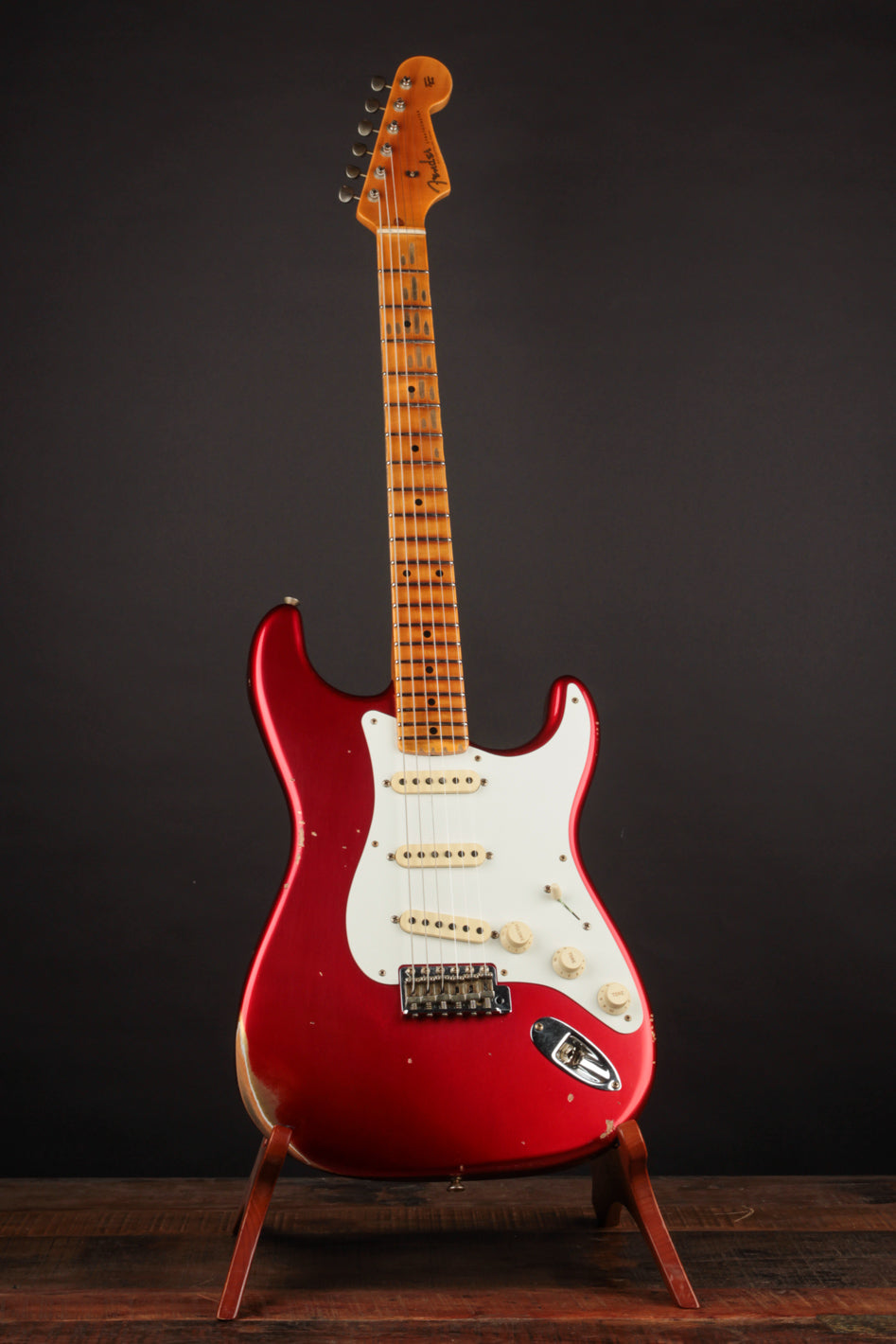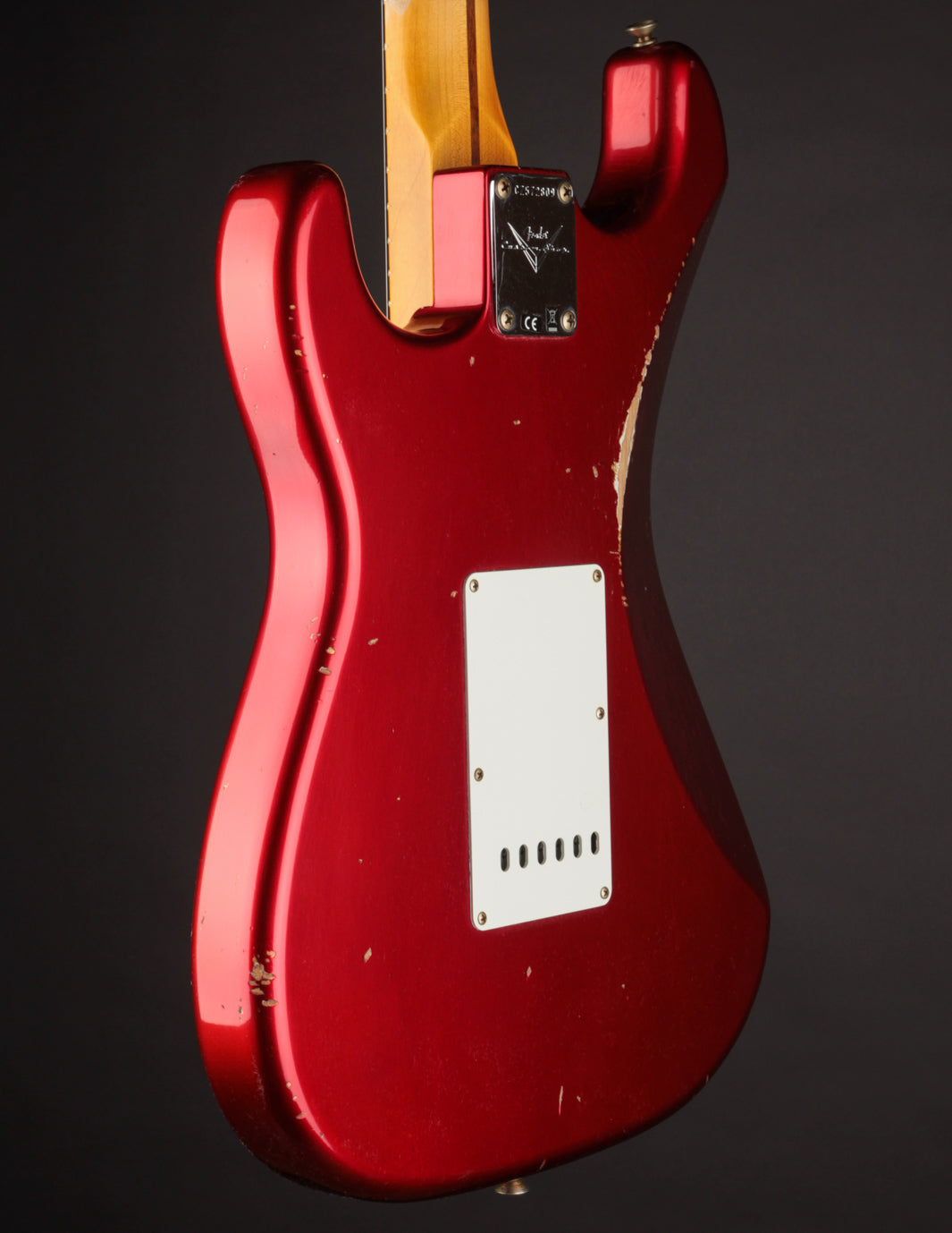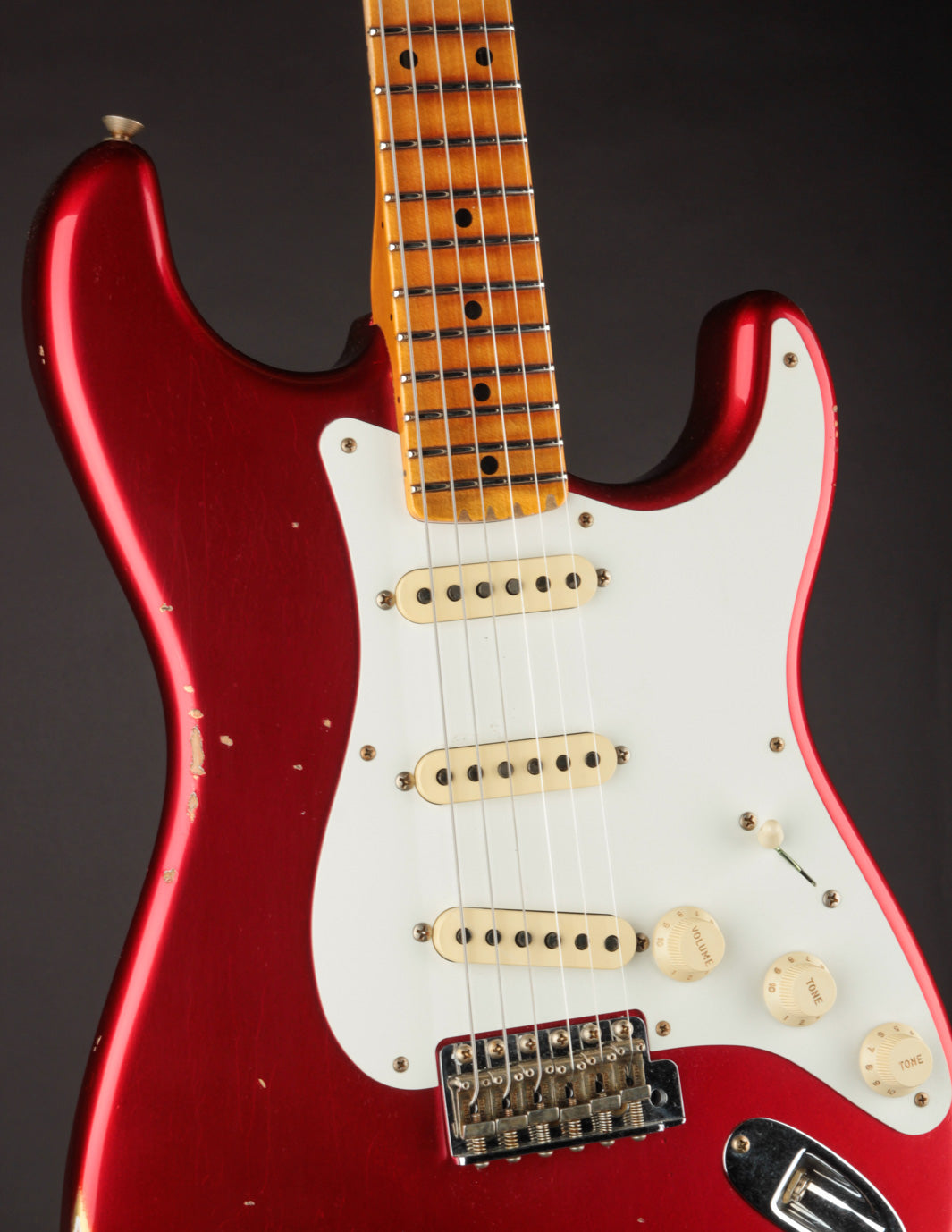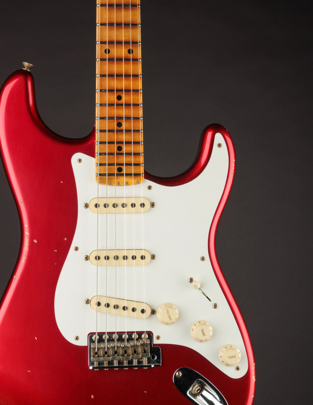 This ’58 Strat is a nod to that year in all its glory with a few modern-leaning tweaks: a two-piece select alder body features a relic'd Faded/Aged Candy Apple lacquer finish, while the resonant one-piece quartersawn maple neck has very comfortable '54 "Soft V" profile (.85-.98), 9 1/2" fingerboard radius, and twenty-one 6015 frets.
