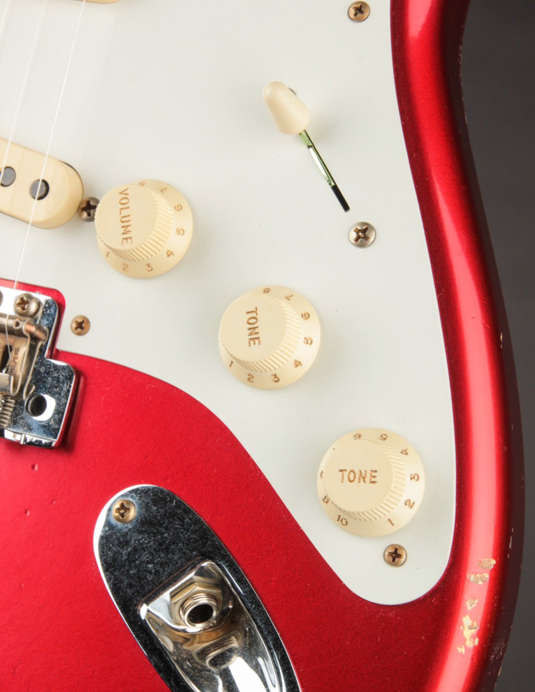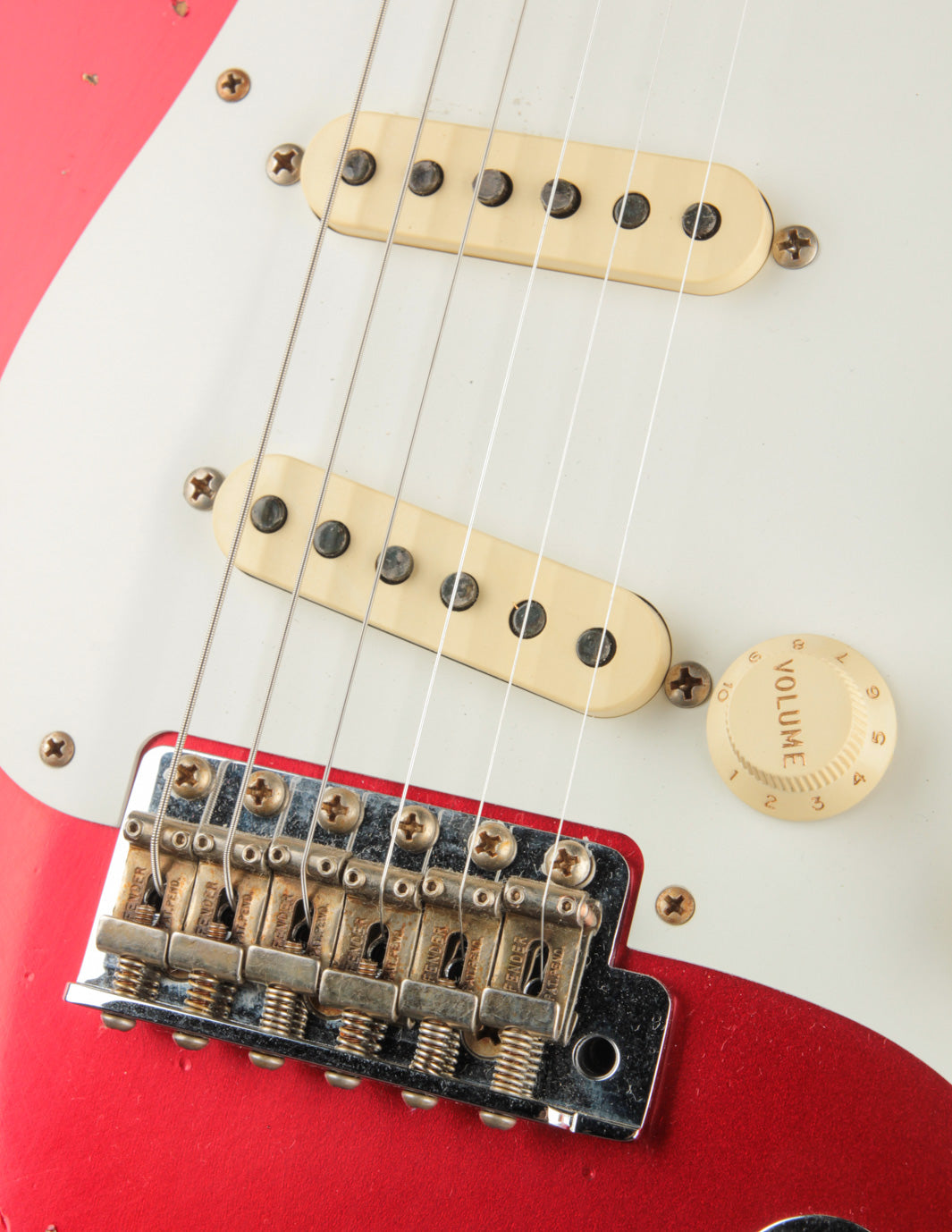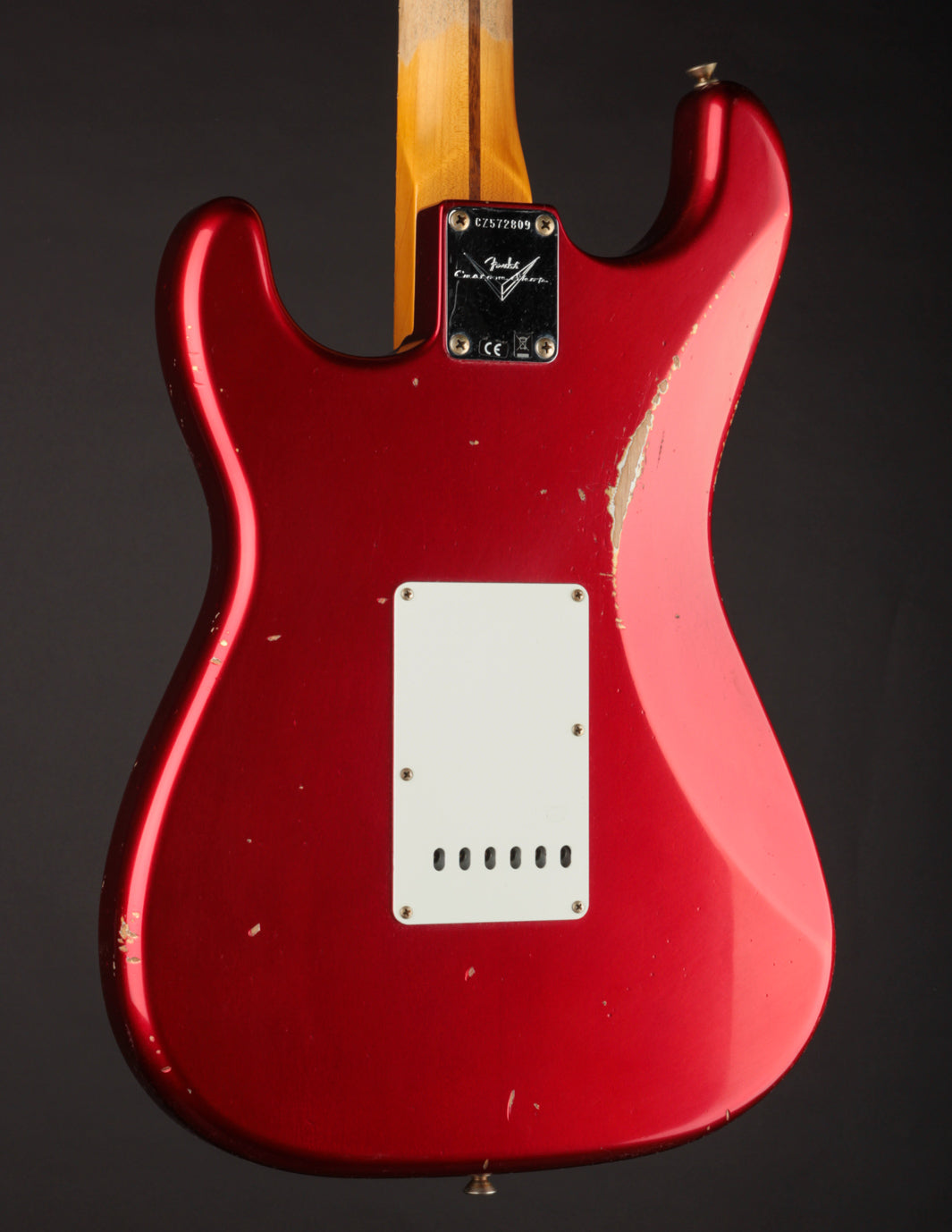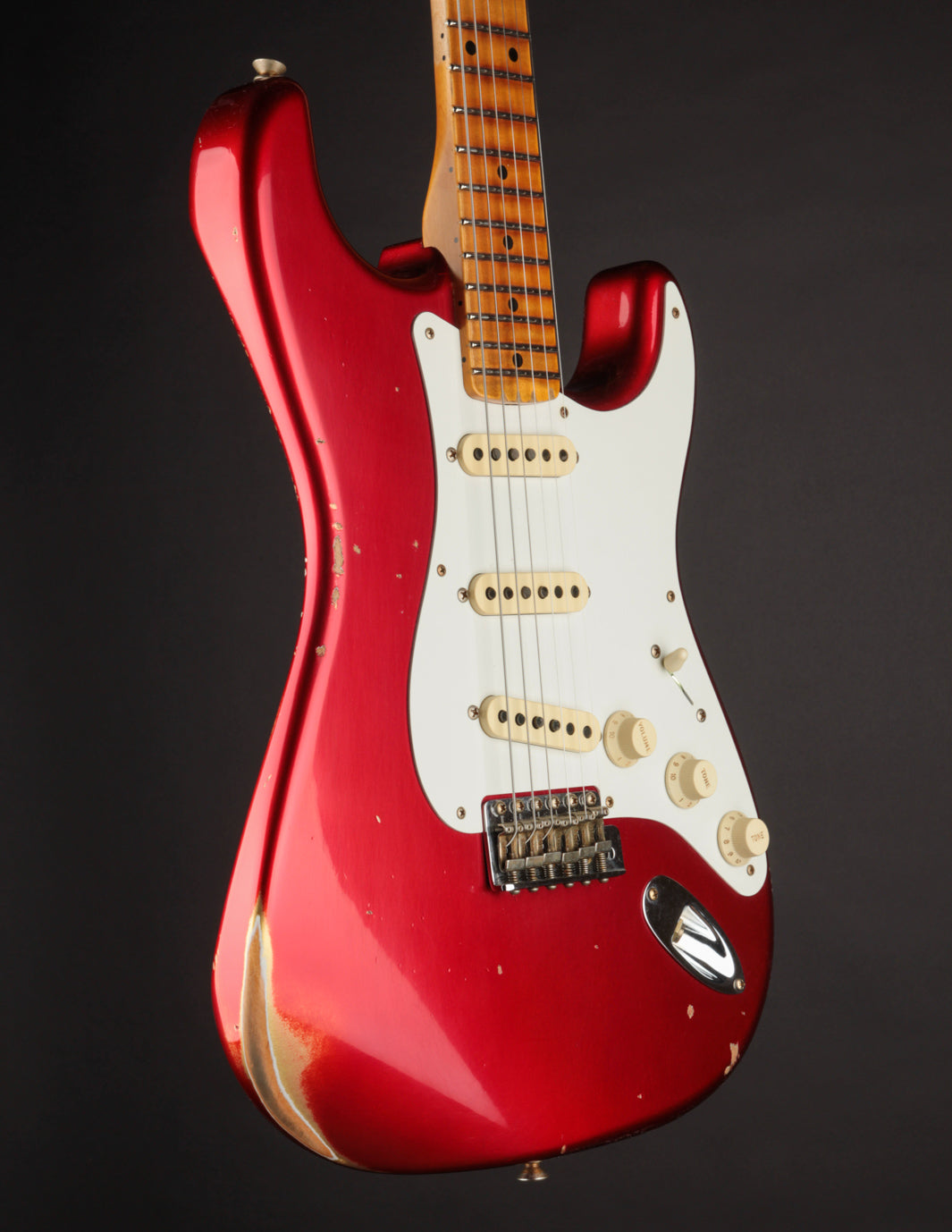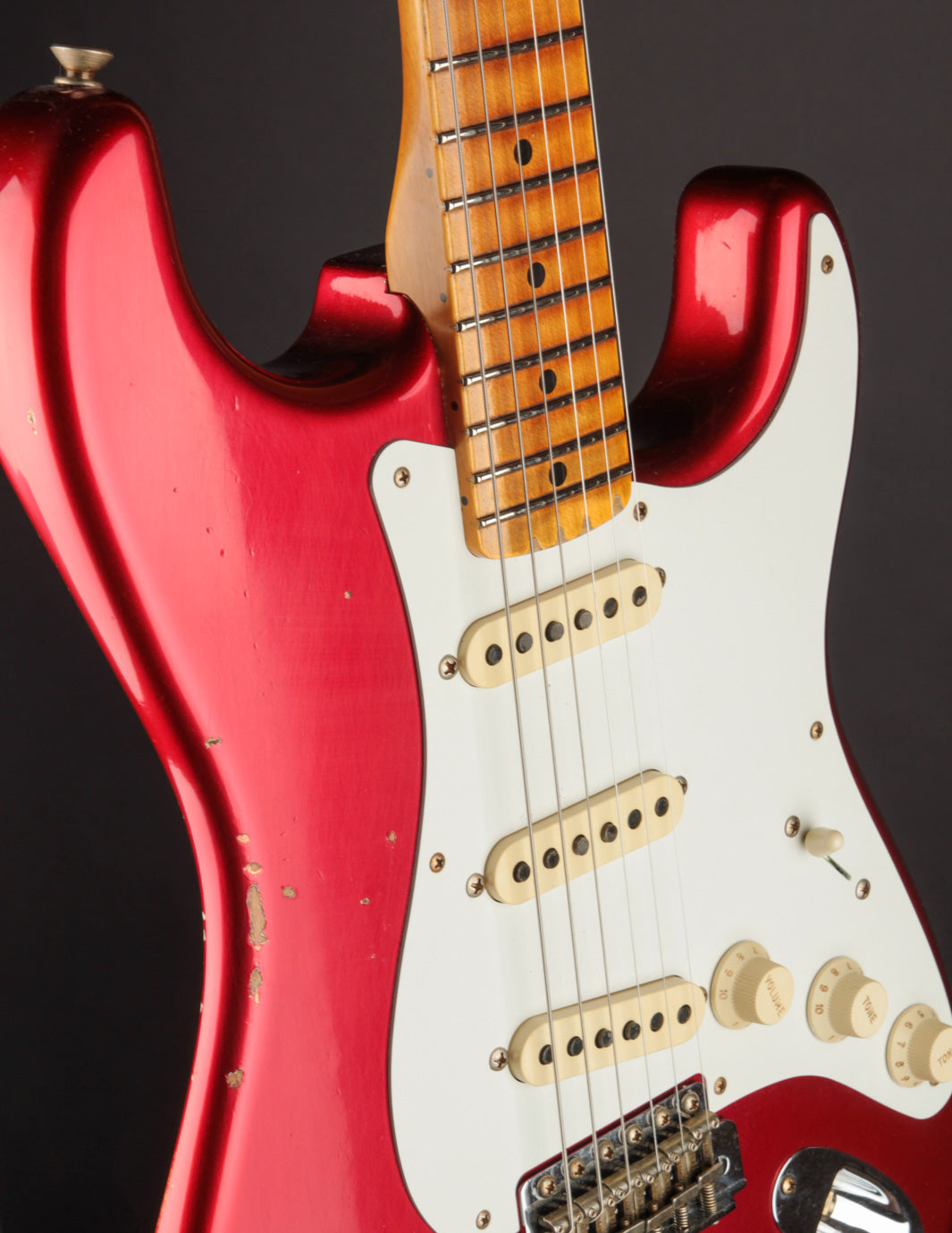 This ’58 Strat is a nod to that year in all its glory with a few modern-leaning tweaks: a two-piece select alder body features a relic'd Faded/Aged Candy Apple lacquer finish, while the resonant one-piece quartersawn maple neck has very comfortable '54 "Soft V" profile (.85-.98), 9 1/2" fingerboard radius, and twenty-one 6015 frets.