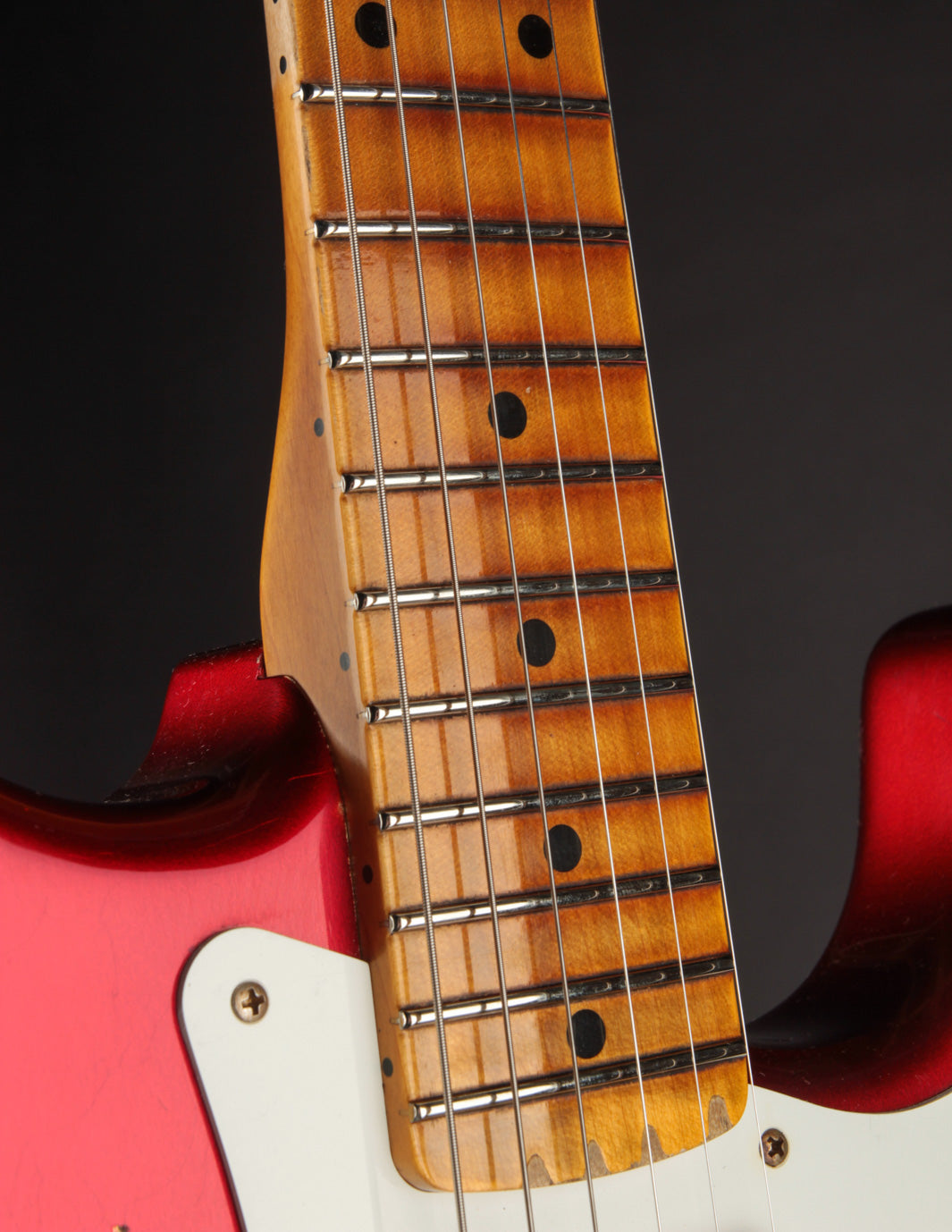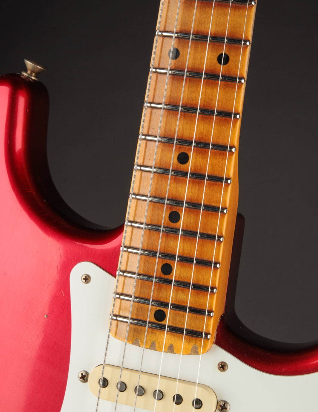 1958 was the final year of the original one-piece maple neck before Leo Fender switched to a glued-on “slab” rosewood fingerboard, which changed the look and tone of Fender instruments. Many players swear by the one-piece maple for its tone and stability, which is what makes 1958 such a sought-after year for the Strat.
