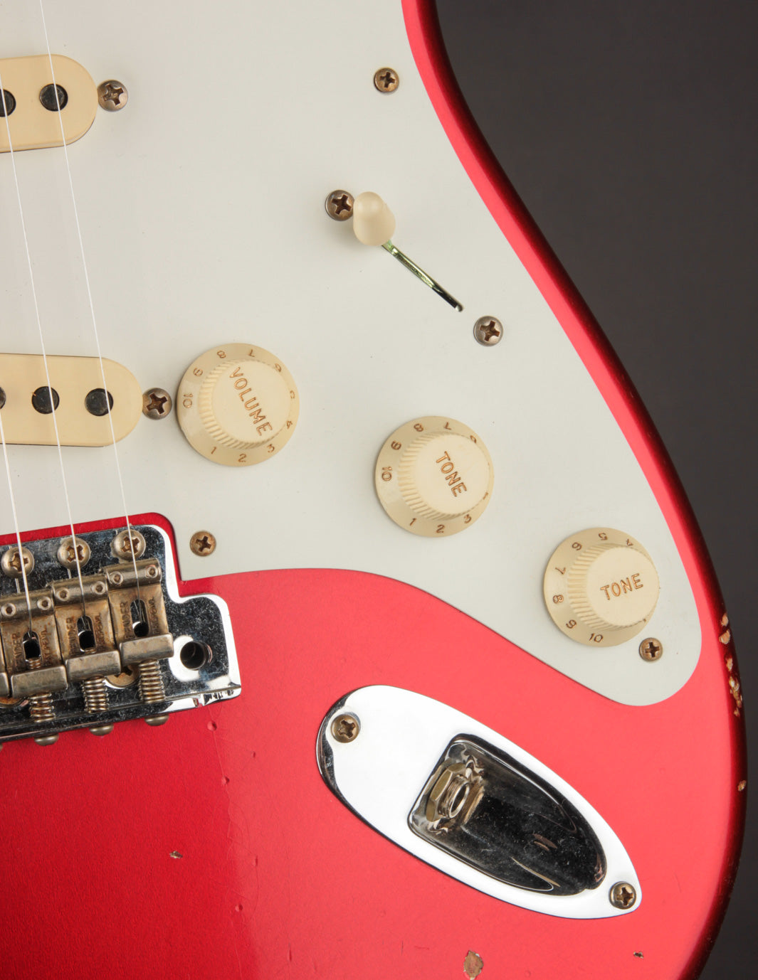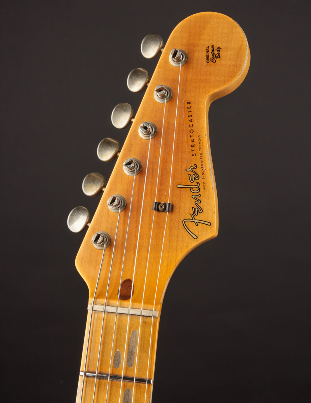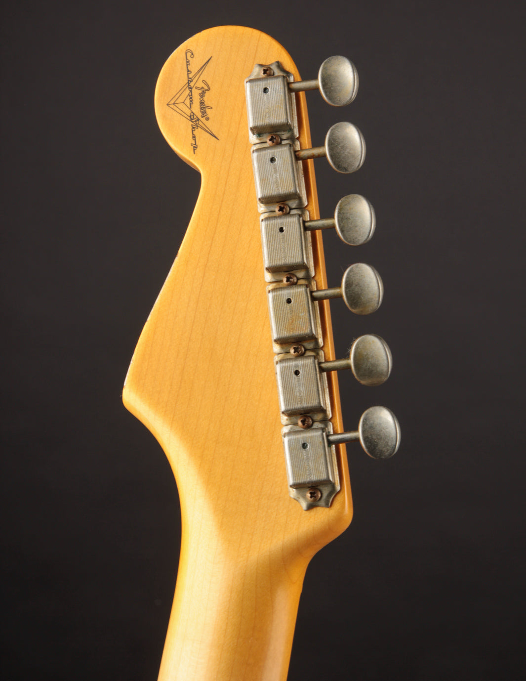 Custom Shop hand-wound "Fat ’50s" pickups are wired to a 5-way switch in a Volume, Tone (neck), and tone (bridge) configuration. Other features include a single-ply eggshell pickguard, Custom Shop vintage synchronized tremolo, vintage-style tuning machines, bone nut (1.65"), and wing string tree. Also includes deluxe hardshell case, strap and certificate of authenticity.