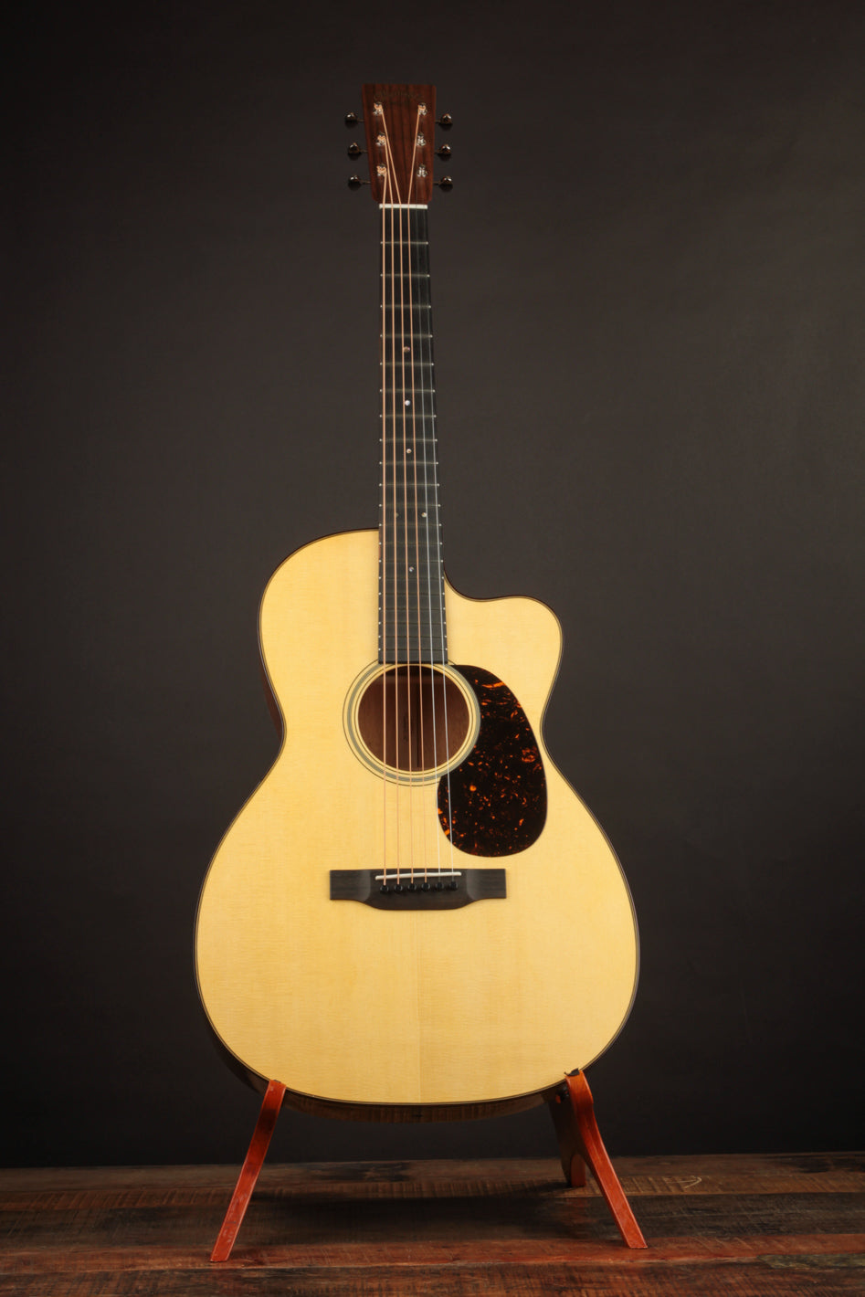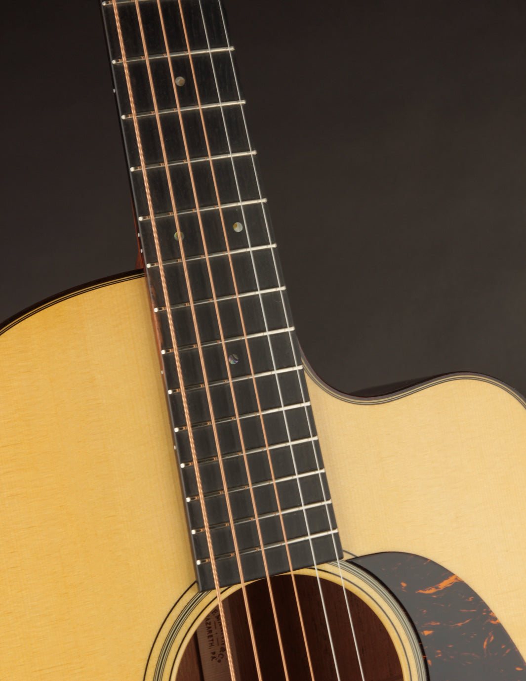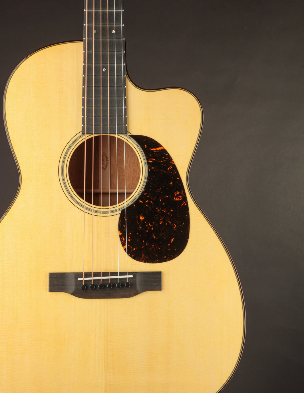 Our latest Martin Custom Shop design is this 12-fret 000, featuring a Venetian Cutaway on top of classic style-18 appointments. The top is our house-favorite Italian Spruce, which we love for its stiffness, clarity, and colorful tone. The 12-fret design affords generous warmth and "roundness" of sound relative to a 14-fret guitar: fingerstyle players who want the fretboard access of an OM alongside a fatter, bolder voice than they're used to will absolutely love this instrument! Other appointments include Rosewood body binding and an upgraded 5-ply hardshell case. If you've wanted to add a 12-fret guitar to your arsenal, but you don't want to sacrifice any fingerboard real estate, we think you'll love this guitar!