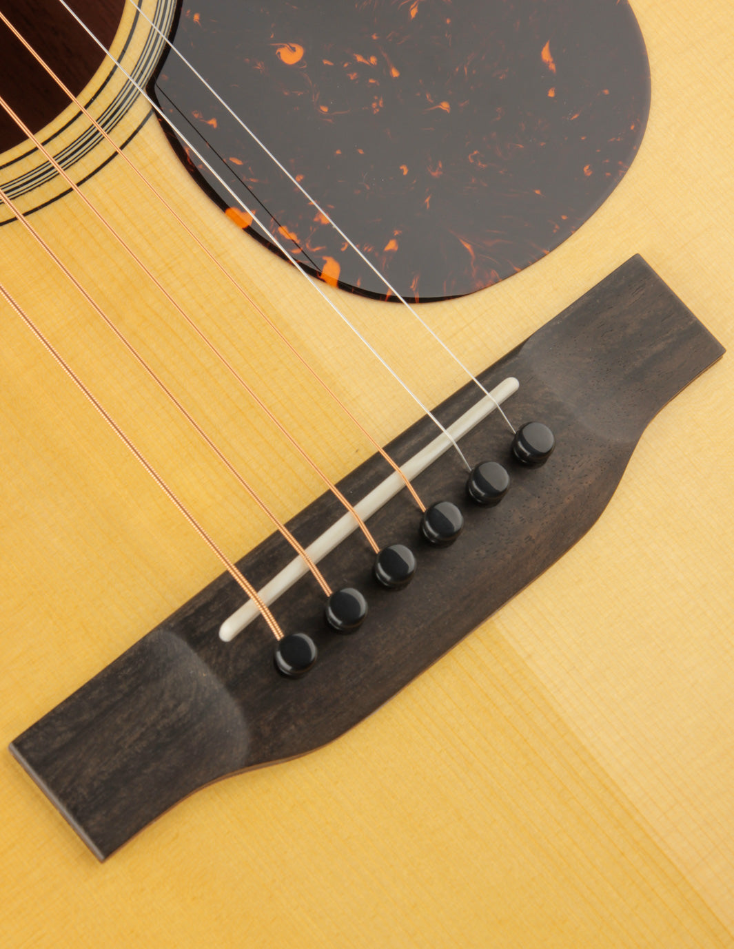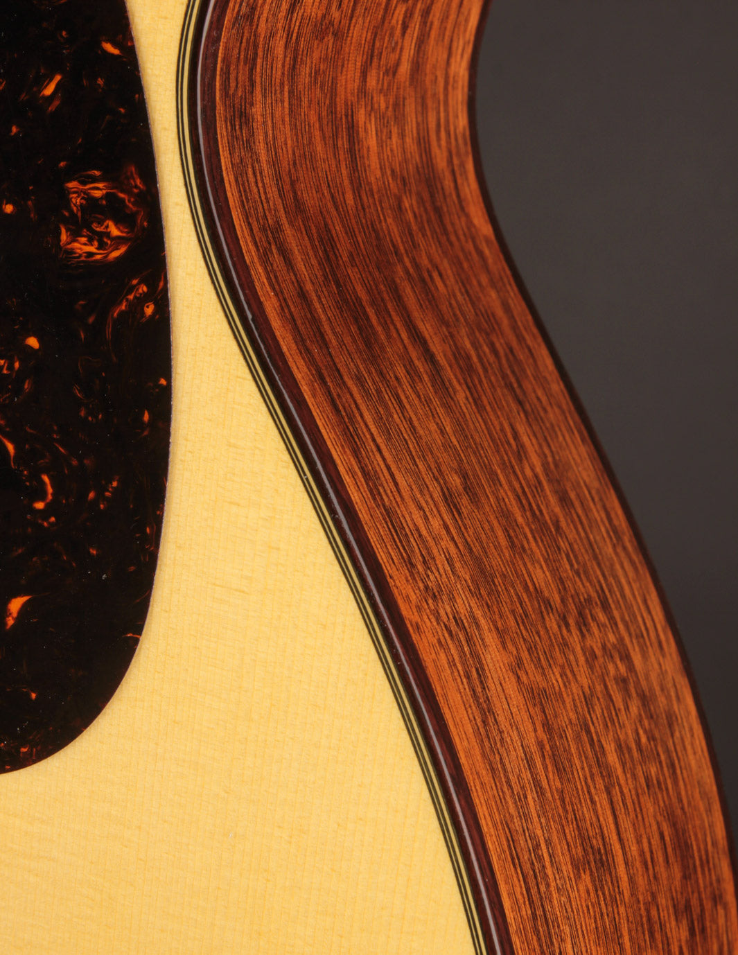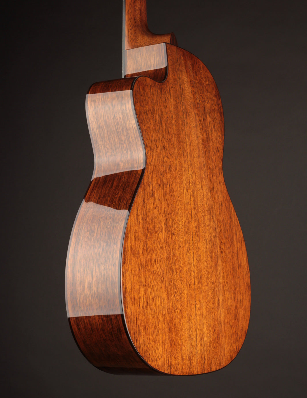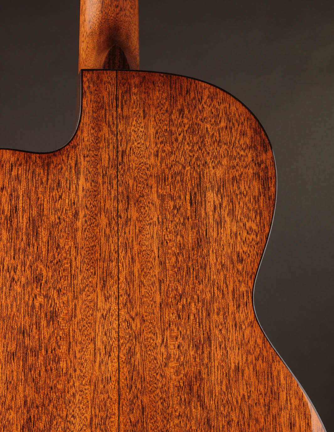 The 12-fret design affords generous warmth and "roundness" of sound relative to a 14-fret guitar.